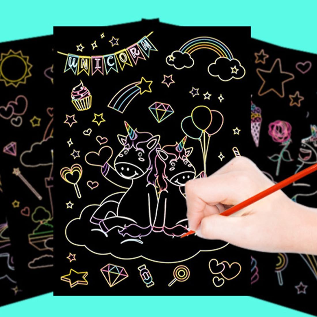 1,🎨【Per i giovani artisti】 I fogli da grattare VONJUMA, delle dimensioni di 140×190mm, sono l'ideale per i bambini a scuola e per feste divertenti con temi natalizi e unicorni, offrendo un'esperienza artistica coinvolgente. 2,🌈【Colori vivaci】 Lascia che i tuoi bambini esprimano la loro creatività con questi fogli da grattare VONJUMA. I colori arcobaleno, abbinati a motivi natalizi e unicorni, li terranno impegnati per ore, mentre tu godrai della loro meravigliosa arte. 3,🎁【Regalo unico】 Perfetti come regali per le festività natalizie o per compleanni, questi fogli da grattare VONJUMA sono ideali per studenti e amici. Rendi indimenticabile il momento del dono con arte e divertimento. 4,✂【Facili da usare】 Realizzati in materiali di alta qualità, questi fogli da grattare VONJUMA sono facili da grattare, consentendo ai bambini di creare con facilità e senza disordine, aggiungendo un tocco di magia alle loro opere d'arte. 5,🎉【Divertimento garantito】 Dai vita alle feste e alle attività creative con questi fogli da grattare VONJUMA. Perfetti per l'uso a scuola, in famiglia o durante feste natalizie, garantiscono momenti di pura gioia e divertimento per tutti i partecipanti.
