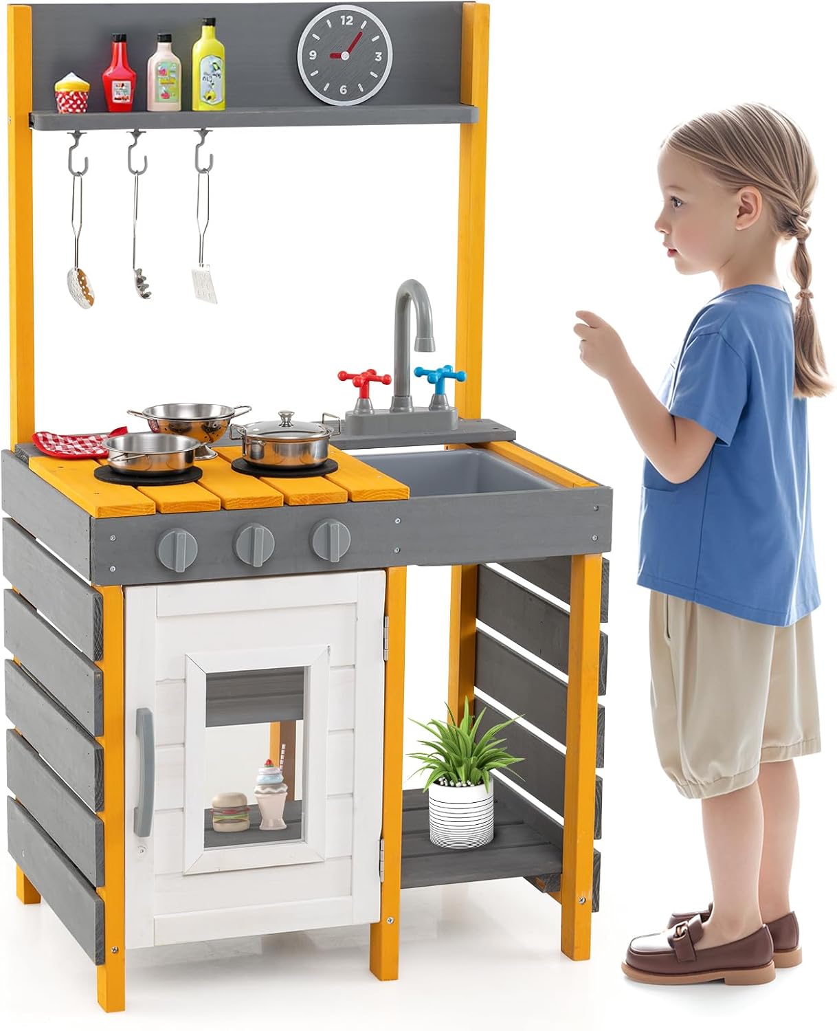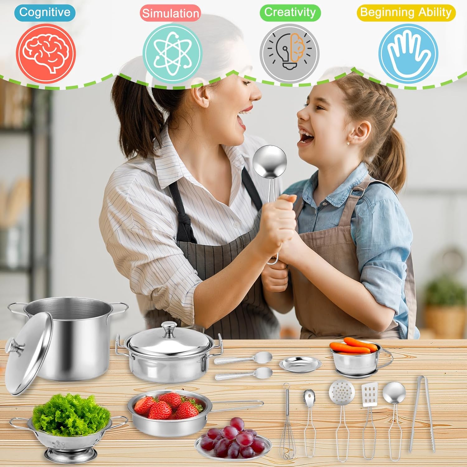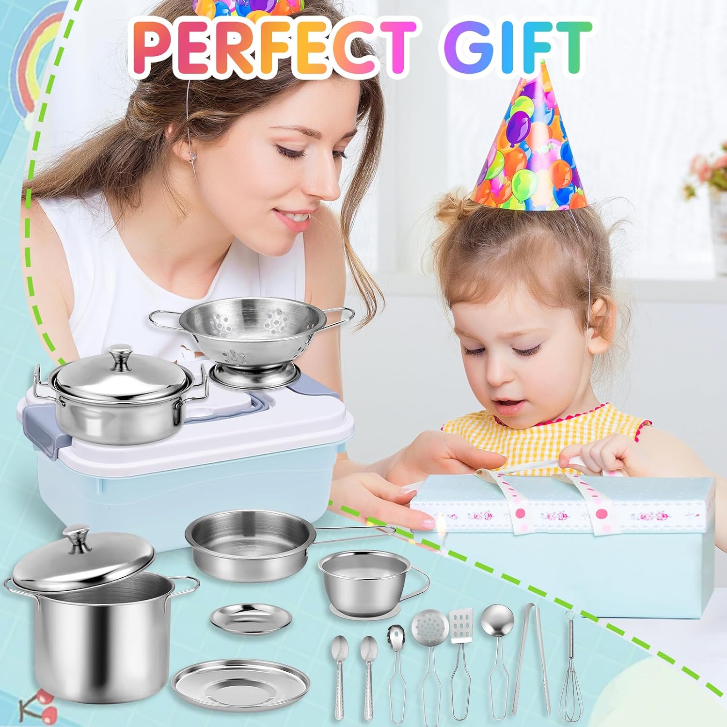 🎀【Confezione】Gli accessori da cucina Mud includono: 2 pentole per zuppa, 3 coperchi per pentole, 1 padella, 1 fruttiera, 1 tazza da caffè, 1 coperchio per caffè, 1 contenitore, 1 pinza per pane, 1 frusta, 1 spatola, 1 scolapasta, 1 cucchiaio da zuppa, 2 cucchiai rotondi e 1 spatola per friggere. I bambini possono cucinare in tutta tranquillità e divertirsi. 👍【Materiale】Questo accessorio da cucina per bambini è realizzato in acciaio inossidabile di alta qualità e plastica atossica, è facile da pulire, estremamente durevole e infrangibile. 👨🍳【Gioco di ruolo perfetto】Gli accessori da cucina per bambini ispirano i bambini ad assumere il ruolo di chef, soddisfacendo le esigenze di cucina e pasticceria dei bambini in età prescolare. Imparando i nomi dei diversi utensili da cucina, i bambini possono assumere il ruolo di chef e sviluppare abitudini culinarie e capacità di gioco fantasiose. 😍【Facile da riporre】Gli utensili da cucina per bambini non occupano spazio e possono essere riposti nell'apposito contenitore dopo l'uso, aiutando i bambini a sviluppare buone abitudini di conservazione fin dalla tenera età. 🎁【Scelta regalo ideale】Cucina da esterno in fango adatta ai bambini dai 3 anni in su per divertirsi insieme e diventare più attivi. Il regalo perfetto per compleanni, Pasqua, Ringraziamento, Natale e Capodanno!