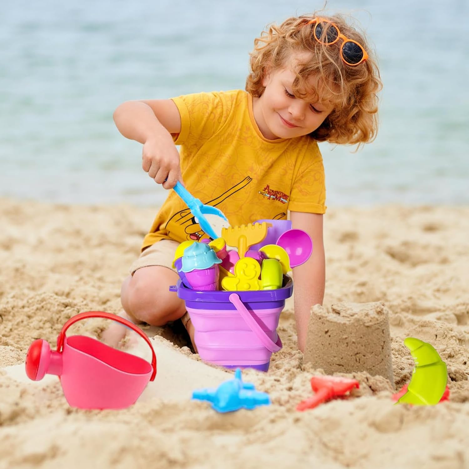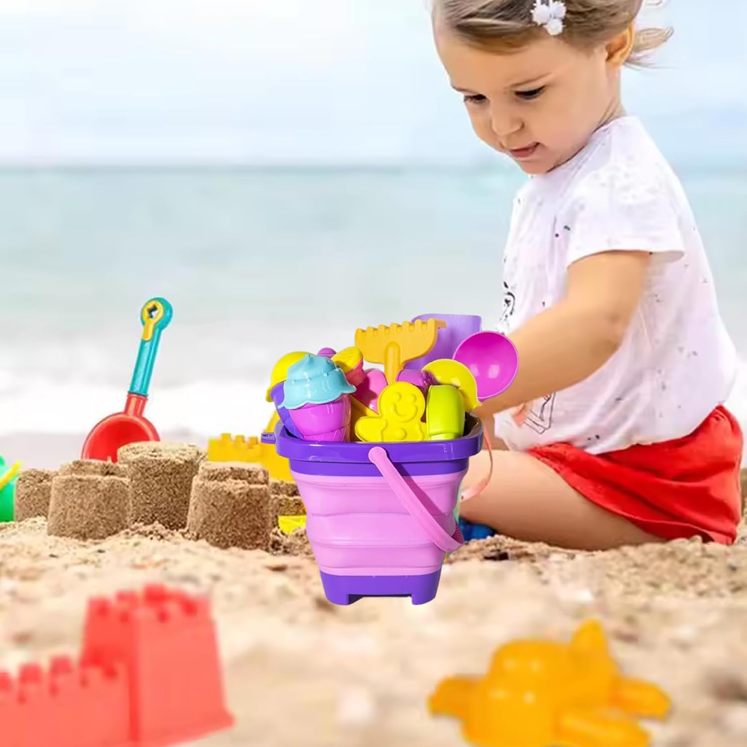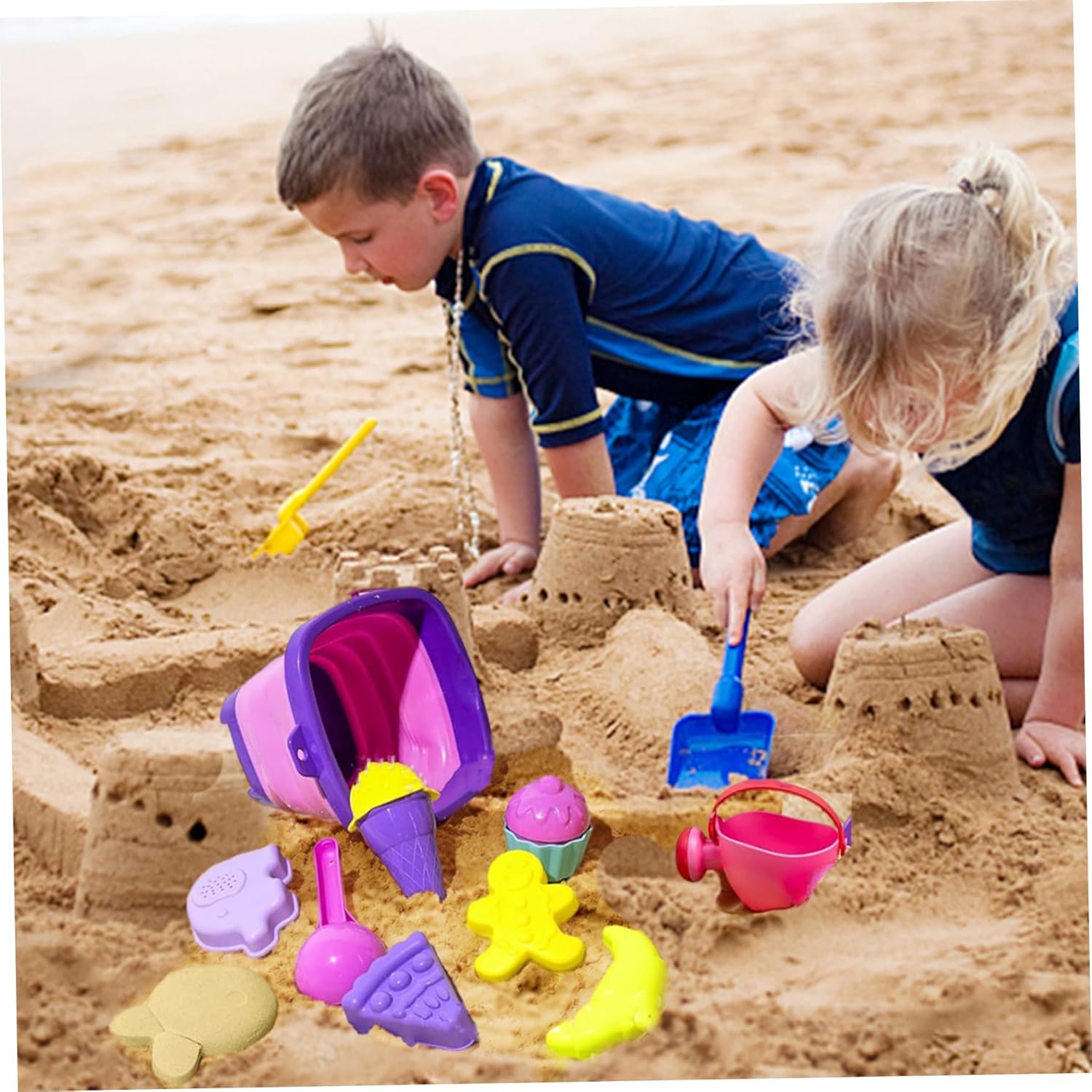 Ideale per lo sviluppo della prima infanzia: progettati specificatamente per neonati e bambini di età compresa tra 1 e 7 anni, questi giocattoli migliorano il gioco cooperativo, le capacità di risoluzione dei problemi e l'interazione sociale, promuovendo al tempo stesso l'amore per le attività all'aperto. Gioco divertente ed educativo: questi giocattoli da spiaggia con sabbia da 18 pezzi offrono ore di divertimento creativo incoraggiando allo stesso tempo lo sviluppo sensoriale, le capacità motorie e il gioco fantasioso, perfetti per i bambini dai 3 ai 7 anni per costruire, scavare e modellare forme. Portatile e adatto ai viaggi: il design leggero e i secchi pieghevoli rendono questo set facile da trasportare per le vacanze al mare, le giornate nella sabbia o le gite al parco, consentendo ai bambini di divertirsi e imparare ovunque. Materiali affidabili e sicuri: realizzati in plastica di alta qualità, atossica e priva di BPA, questi giocattoli da spiaggia sono costruiti per resistere all'uso esterno pur essendo completamente sicuri per i bambini piccoli, offrendo ai genitori tranquillità. Set completo per attività infinite: dotato di secchi pieghevoli, palette, pale, stampi e altro ancora, questo kit completo di strumenti versatili per esplorare il gioco sulla sabbia, assicurando che i bambini non rimangano mai a corto di modi per godersi la spiaggia o le avventure nella sandbox.