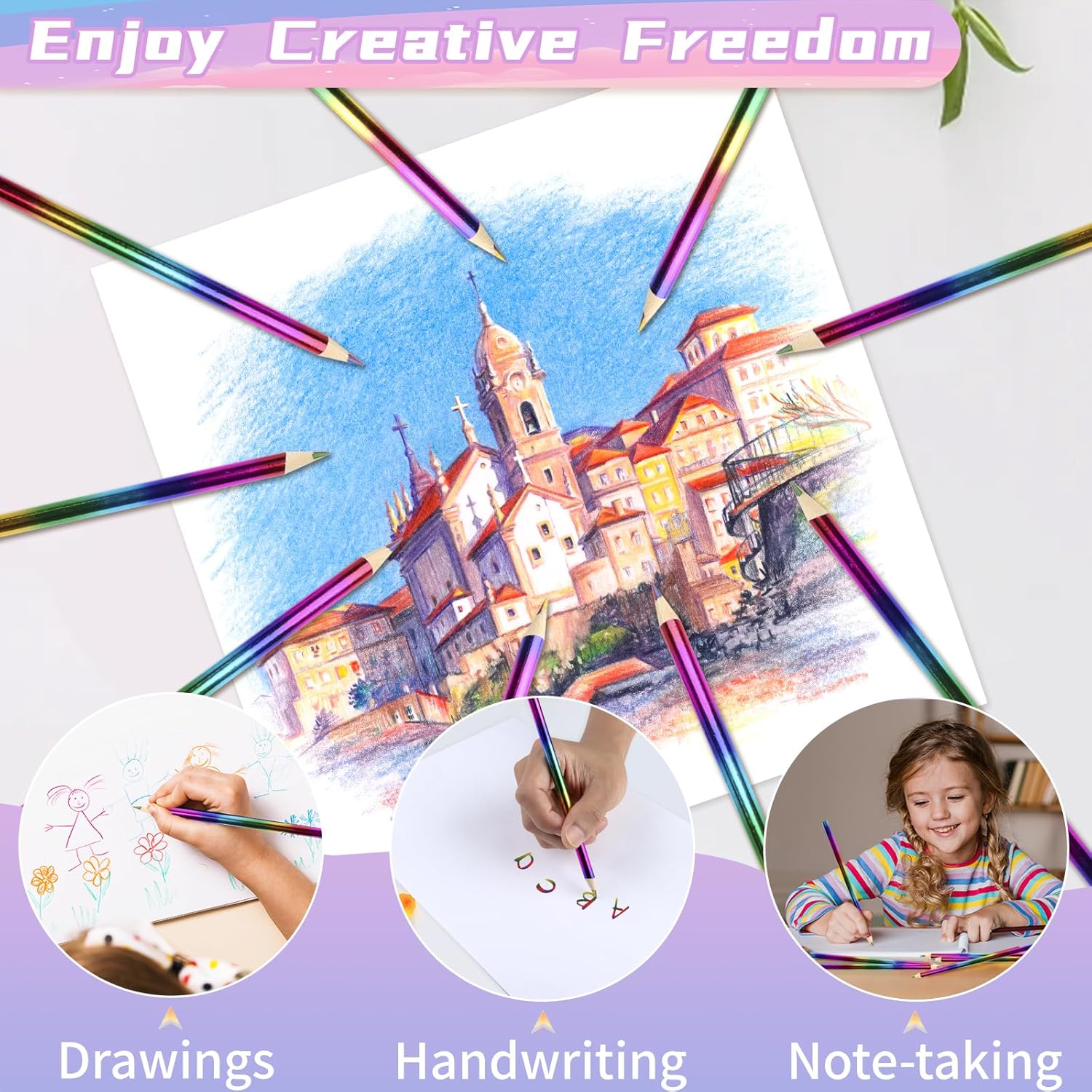 【Set di Matite Arcobaleno】Riceverai 18 matite arcobaleno e 6 gomme a strisce arcobaleno. Le matite sono lunghe circa 17,5 cm, e la lunghezza e la quantità sono sufficienti per l'uso quotidiano e la sostituzione, permettendoti di creare dipinti più perfetti. 【Legno di Alta Qualità e Gomma Termoplastica】Questa matita arcobaleno è realizzata in legno naturale, che conferisce a queste matite stabilità e resistenza alla rottura. La gomma adotta un design a strisce arcobaleno ed è fatta di materiale TPR di alta qualità, che ha una buona capacità di pulizia. 【Matita Arcobaleno 4 in 1】La nostra matita arcobaleno combina i colori rosso, giallo, verde e blu, permettendoti di passare tra diversi angoli di scrittura e colori senza trasportare più penne, rendendo il tuo disegno più comodo e interessante. 【Disegno Esagonale】Le nostre matite colorate arcobaleno presentano un design esagonale con sei superfici piane che forniscono un eccellente supporto e una migliore vestibilità alle dita, consentendo di utilizzarle per periodi prolungati senza sentirsi a disagio o affaticato. 【Matita Pre Affilata】Questa matita colorata è pre-affilata e puoi usarla subito dopo aver ricevuto il nostro prodotto. Tuttavia, è inevitabile che la punta della penna si rompa durante il trasporto, potete scegliere di affilarla di nuovo o contattarci.