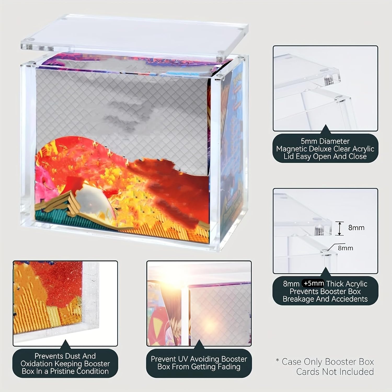 Coperchio magnetico per un facile accesso: la scatola dispone di un elegante coperchio magnetico che sigilla saldamente la custodia, assicurando che i tuoi oggetti rimangano al sicuro all'interno. Contenitore versatile per oggetti da collezione e cimeli: che tu stia mostrando action figure, cimeli sporindividuali, monete, controsoffitti o oggetti da collezione rari, questa custodia è la soluzione perfetta per mostrare i tuoi oggetti con stile mantenendoli al sicuro da eventuali danni. Facile da pulire e mantenere: la superficie liscia e non porosa dell'acrilico lo rende facile da pulire e mantenere, assicurando che il display sia sempre pulito e lucido.