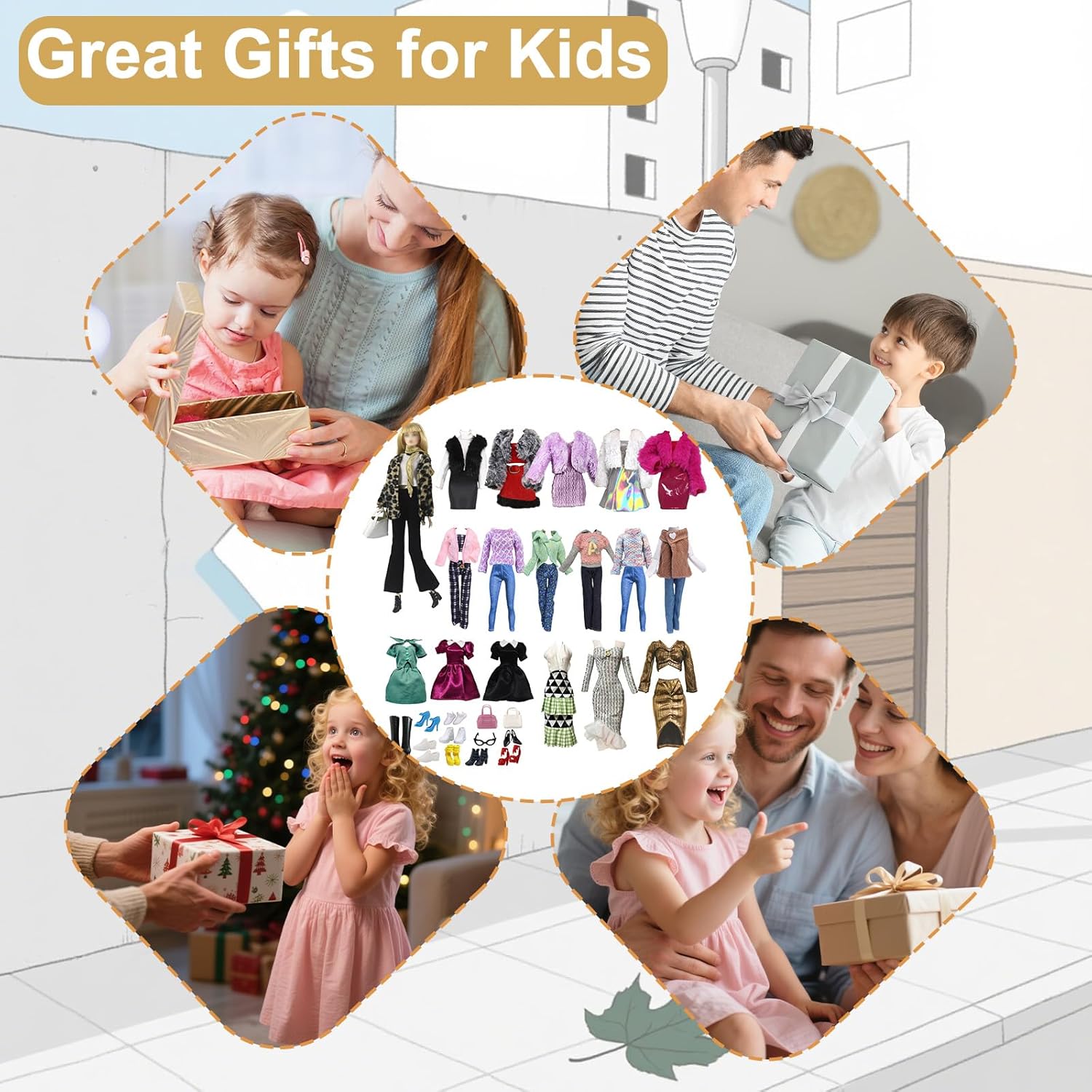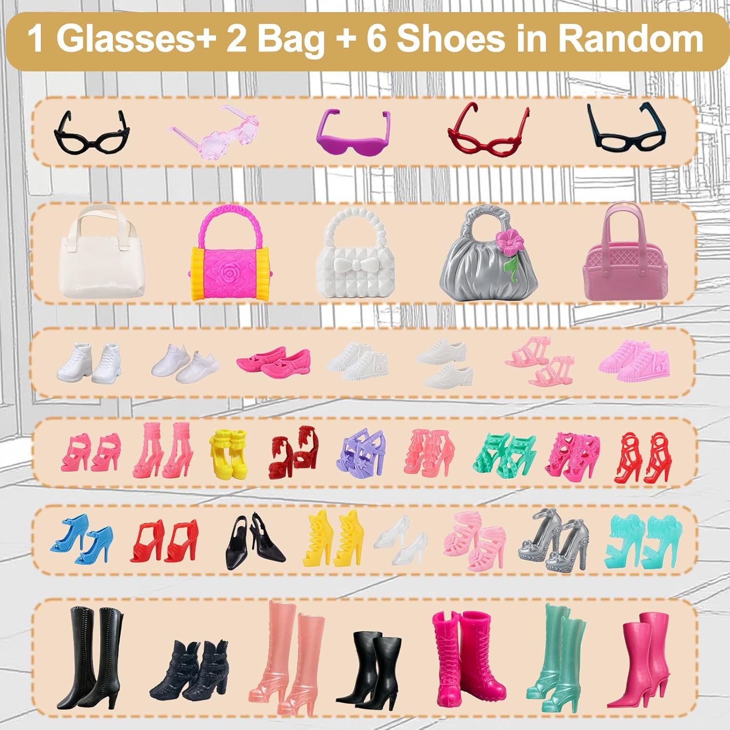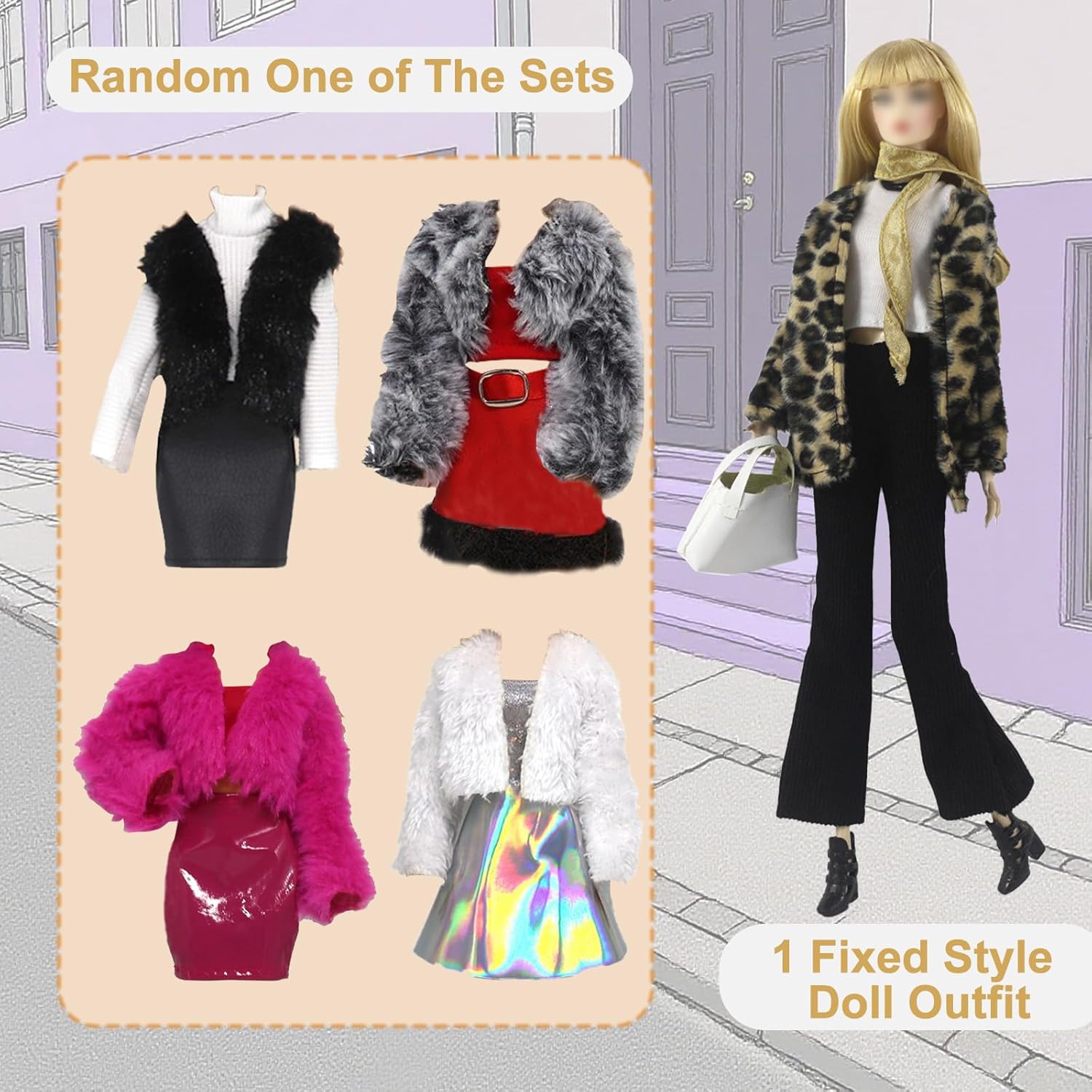 Contenuto della confezione: include un set da 4 pezzi con cappotto con stampa leopardata + gonna soffice da 2 pezzi + gonna lunga 1 pezzo + gonna corta 1 pezzo + pantaloni maglione 1 set + tacchi alti 5 paia + scarpe basse 2 paia + occhiali 1 paio + borsa 1 pezzo (escluse le bambole). Ogni abito è abbinato in modo casuale. Materiale sicuro e di qualità: i vestiti per bambole compatibili con le bambole sono tutti realizzati in cotone di qualità intrecciato a mano, dalla consistenza morbida e dai colori vivaci. Le scarpe per bambola sono realizzate in plastica sicura ed ecologica, inodore e delicata sulla pelle, non danneggeranno i bambini durante il gioco. (Escluse bambole) Design pratico: tutti gli abiti per bambole sono facili da indossare e da togliere grazie al design autoadesivo sul retro, che può rendere le tue ragazze più facilmente cambiare i vestiti della bambola e mostrare meglio il fascino della bambola. (Escluse bambole) Arricchisci la mente dei bambini: i vestiti sono progettati con uno stile diverso in base alle reali scene abbinate nella vita quotidiana. I bambini possono abbinare la bambola con i vestiti per diverse scene in base alle proprie idee, stimolerà le loro capacità pratiche e capacità di pensiero. (Escluse bambole) Regalo di compleanno perfetto per le tue ragazze: se sei ancora confuso sull'acquisto di quale tipo di regalo di compleanno o di festa per la tua adorabile bambina, i nostri vestiti per bambole possono soddisfare l'immaginazione della principessa nel cuore delle ragazze. Dai questi vestiti per bambole giocattolo per la festa dei bambini, compleanni, vacanze e divertenti bomboniere a bambine e adolescenti. (Escluse bambole)