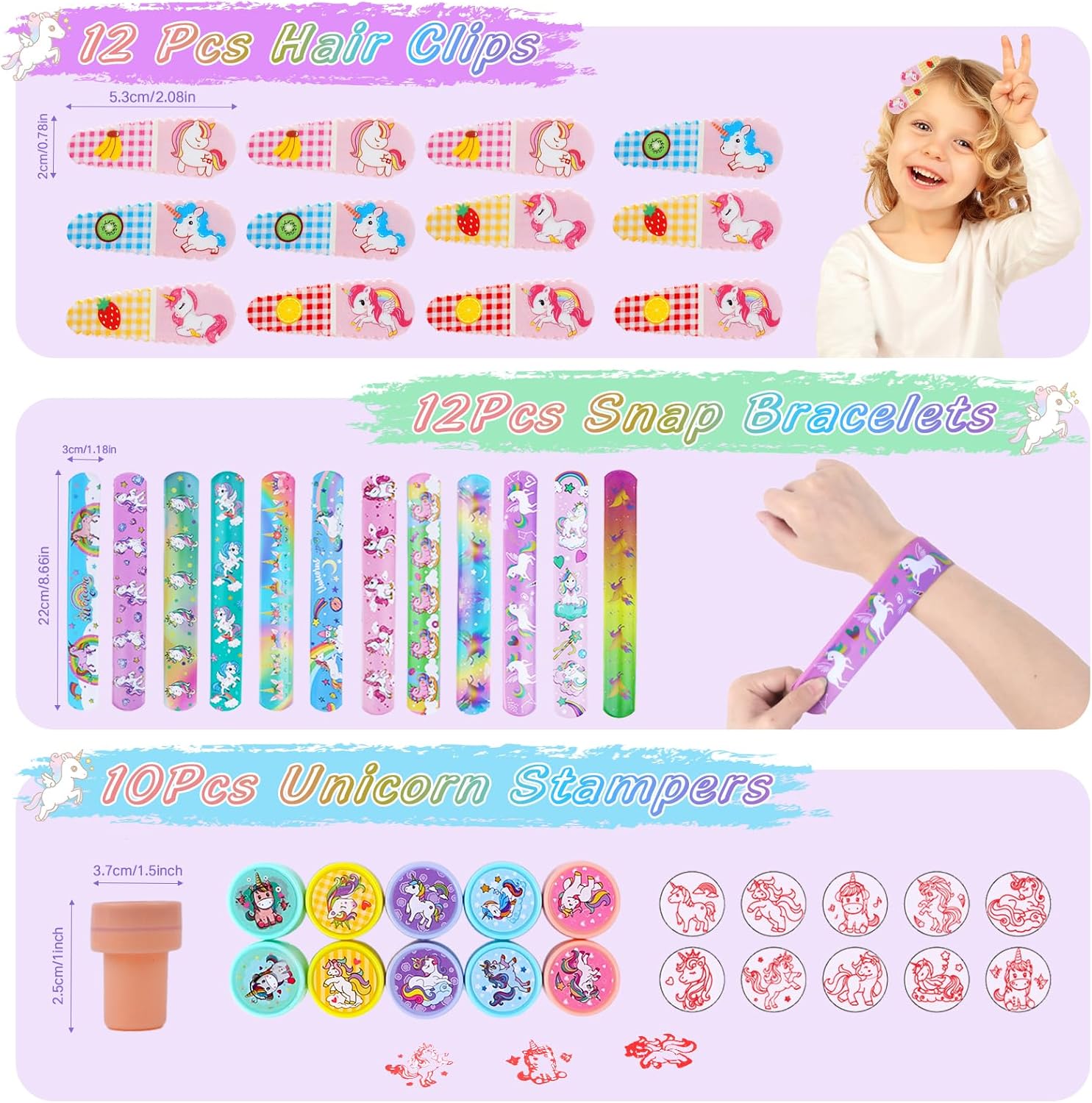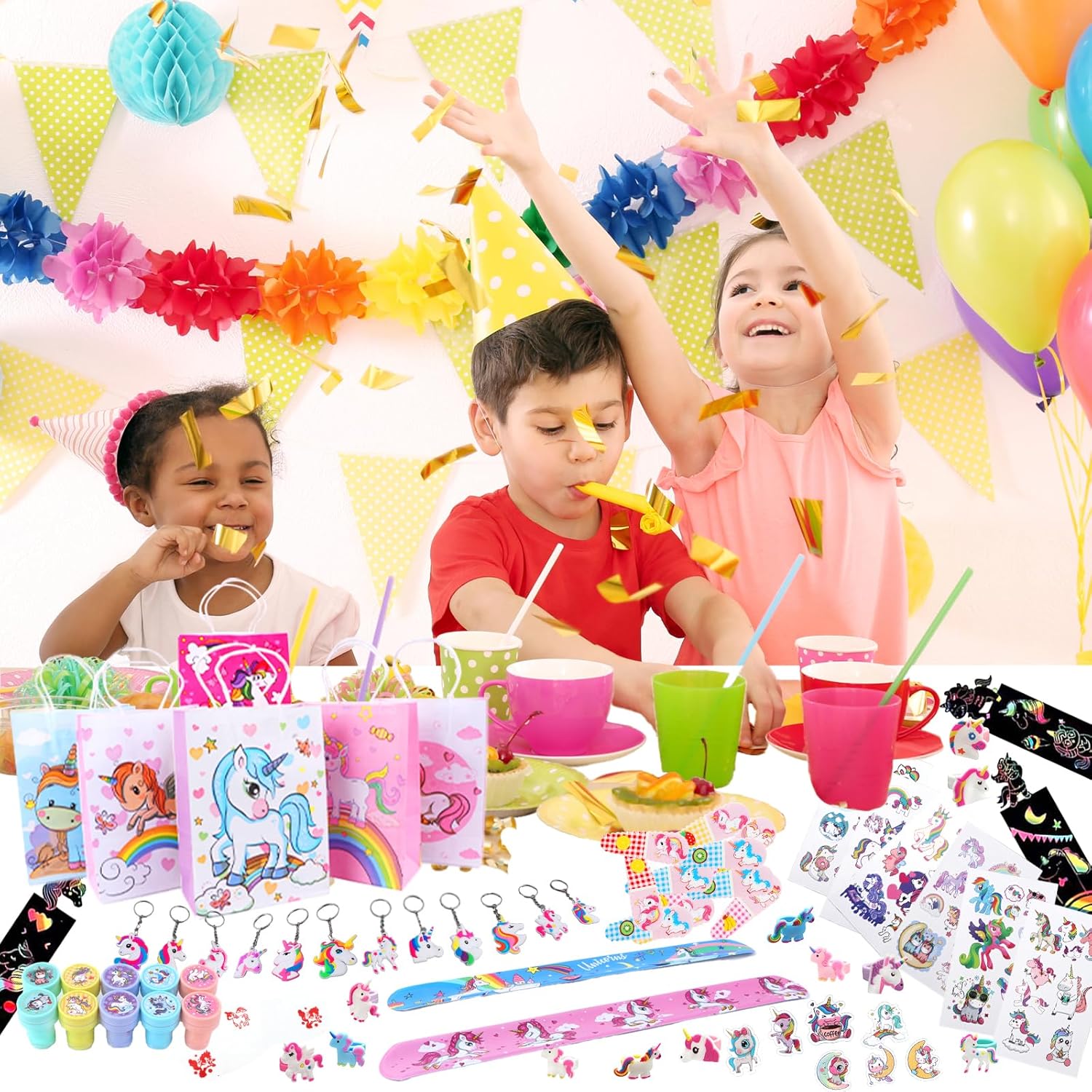 🦄【192 PEZZI BOMBONIERE DI COMPLEANNO PER BAMBINI UNICORNO】: Riceverai 12 fermagli per capelli (4 colori), 12 sacchetti di carta, 12 braccialetti schiaffo, 12 segnalibri da grattare, 12 portachiavi, 12 anelli, 10 timbri, 10 tatuaggi temporanei e 100 adesivi. Questo set di souvenir per il compleanno dei bambini è pieno di elementi di unicorno e colori vivaci, soddisfa facilmente le esigenze delle feste dei bambini e consente loro di vivere una felice esperienza di festa con amici e compagni di classe! ✨【PROMUOVE LA CREATIVITÀ E L'INTERAZIONE】: La bomboniera per la festa di compleanno dei bambini con unicorno sarà sicuramente un successo alle feste per ragazze, così ogni piccolo ospite tornerà a casa con un sorriso. Segnalibri, timbri e adesivi da grattare incoraggiano i bambini a creare oggetti creativi, mentre fermagli per capelli, anelli, braccialetti a schiaffo e tatuaggi temporanei aggiungono ulteriore divertimento ai giochi di società! 🎁【BORSE REGALO UNICORNO COMPLEANNO BAMBINI】: Ci sono 12 adorabili e bellissime borse tote con motivi di unicorno, ciascuna misura 22 x 16 x 8 cm. Puoi riempirli con dolci, biscotti, snack, giocattoli, premi, giocattoli di unicorno o altri piccoli regali e distribuirli come omaggi di compleanno per bambini agli ospiti delle feste di compleanno dei bambini! ✅ 【SICURO E PRATICO】: tutte le bomboniere per feste di compleanno di unicorno sono realizzate con materiali ecocompatibili, non tossici, innocui e sicuri da usare. Tutti gli articoli del set sono classificati e confezionati separatamente, rendendoli eleganti e pratici per uso personale o come regali di compleanno! Se gli articoli mancano dalla confezione o sono danneggiati, offriremo un rimborso o una nuova spedizione. 🎉【UTILIZZO VERSATILE】: Adatto per bomboniere con unicorno, decorazioni per feste di compleanno per bambini con unicorno, regali di compleanno per ragazze, imbottiture per sacchetti da festa per ragazze, premi di classe, premi di giochi, premi di carnevale, set artigianale di unicorno pignatta, scambio di regali, ripieni per sacchetti di festa, calze di Natale e molto altro. I bambini, in particolare i fan degli unicorni, adoreranno questi regalini per le feste!