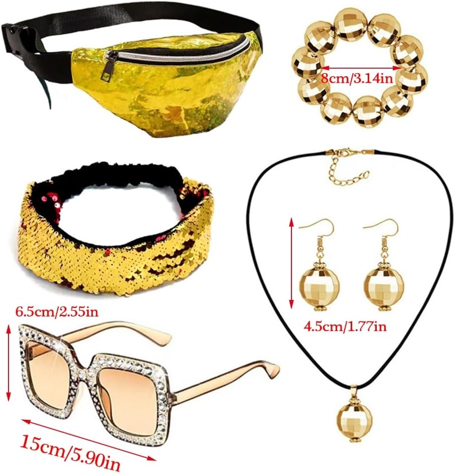 Set di 6 costumi hippie da discoteca, include 1 borsa, 1 paio di orecchini, 1 paio di occhiali da sole, 1 fascia con paillettes, 1 collana ideale per feste e accessori in costume Un popolare set di accessori per costumi anni '50, '60, '70, '80, ottima scelta per il tuo amico e la persona amata in tutti i tipi di feste interessanti e occasioni speciali Per adulti e adolescenti, donne e ragazze Materiali, gli accessori da discoteca anni '70 sono realizzati in tessuto di stoffa, molto elegante e pieno di durata Applicazioni: il set di costumi da discoteca è per feste a tema anni '50/1960/'70/'80, carnevale, Halloween, feste di Natale, feste in costume, look retrò, spettacoli cosplay, feste in costume, feste in maschera, uso quotidiano o semplicemente per divertimento