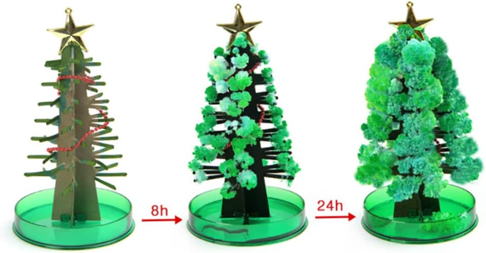 PACCHETTO CONVENIENZA: il pacchetto include un albero, un supporto con serbatoio d'acqua e un pacchetto di acqua magica. BRILLANTE REGALO PER LE VACANZE: decorazione natalizia perfetta per la casa o l'ufficio..ideale per i tuoi bambini a Natale ATTENZIONE: quando inizia a crescere e dopo essere cresciuto, non toccarlo, non spostarlo. COME USARE: riempi il supporto dell'albero con l'acqua magica inclusa nella confezione e guardalo crescere in sole 24 ore. ETÀ CONSIGLIATA: adatto a bambini dai 5 anni in su.