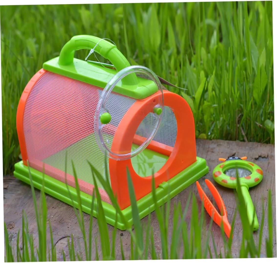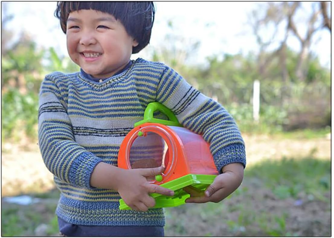 BUONA QUALITÀ - Realizzato in robusta plastica con rete in tessuto, base piatta. FINESTRA TRASPARENTE: ti consente di osservare da vicino gli insetti. APERTURA FACILE: la porta a cerniera facilita l'inserimento di insetti, foglie, acqua e cibo. CARATTERISTICA: la custodia è costruita con un robusto telaio in plastica che consente l'osservazione sicura degli insetti all'interno. PINZETTE e amp;.MAGNIFICATORE - Quindi non devi toccare quei brutti insetti.
