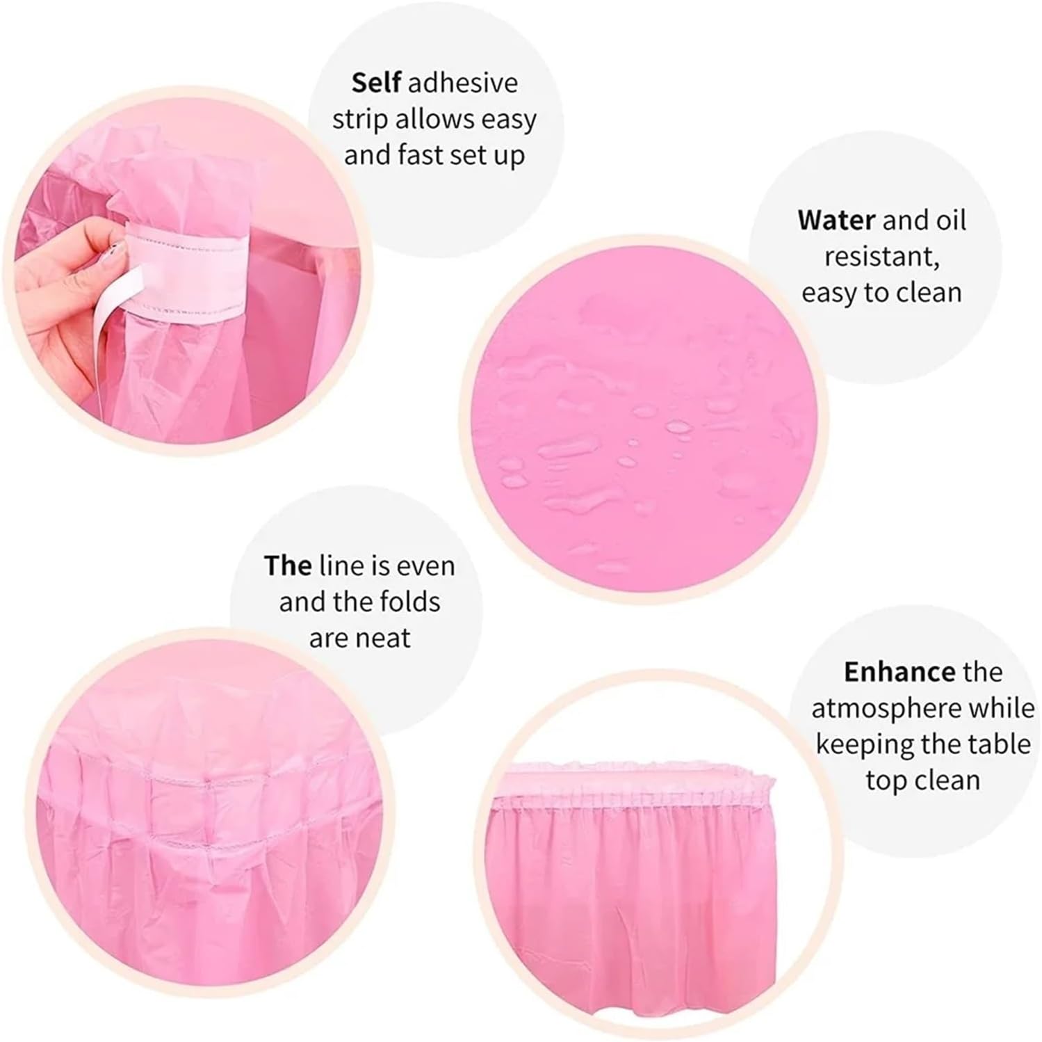 Gonne da tavolo offrono un modo semplice per decorare i tuoi eventi, trasformando tavoli ordinari in elementi di stile che catturano l'attenzione dei tuoi ospiti e valorizzano l'atmosfera del tuo evento Una gonna da tavolo per matrimonio è un accessorio indispensabile per il giorno del tuo sì. Aggiunge un tocco di raffinatezza e contribuisce a creare un ambiente romantico e festoso per celebrare l’amore Una gonna da tavolo con volant è ideale per rendere i tuoi tavoli più accattivanti senza sforzo. La facile installazione ti permette di concentrarti sui dettagli della tua festa mentre i tavoli rimangono impeccabili La gonna da tavolo resistente alle rughe garantisce che la tua decorazione mantenga sempre un aspetto fresco e curato, anche dopo un uso prolungato, permettendoti di riutilizzarla per diverse occasioni Questi accessori sono perfetti per una varietà di eventi, dalle feste private ai banchetti aziendali. Le gonne da tavolo si adattano a qualsiasi tema, rendendole un elemento essenziale per ogni pianificazione di eventi