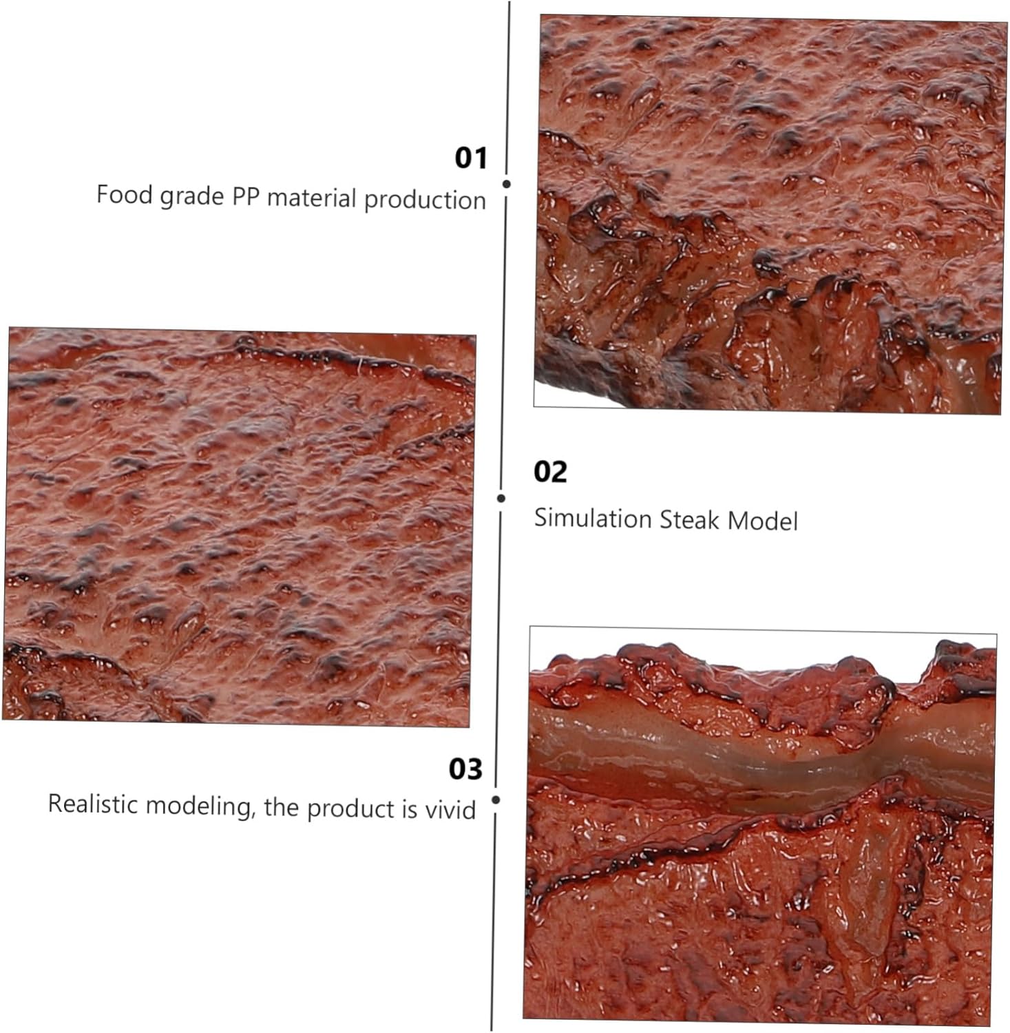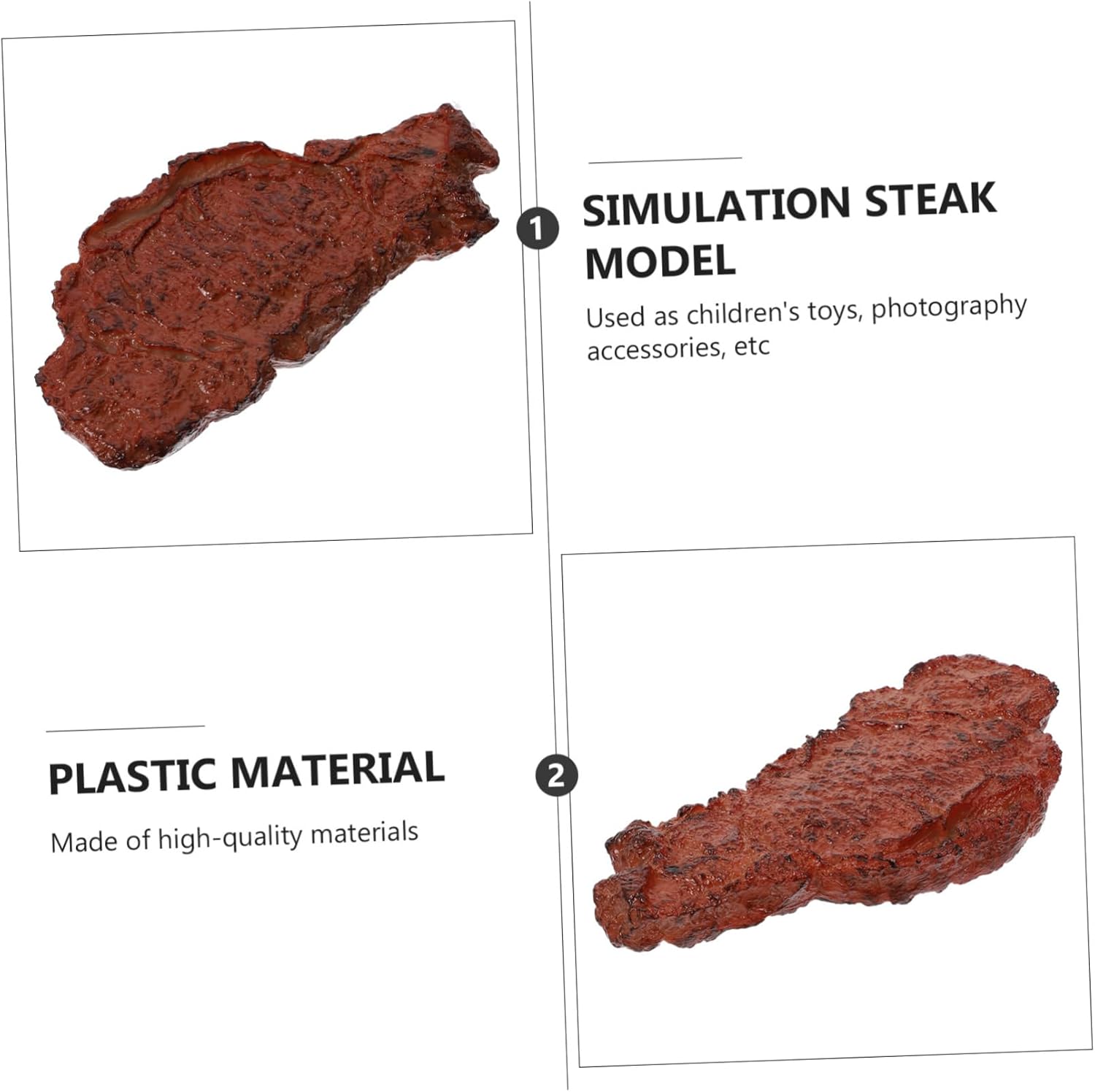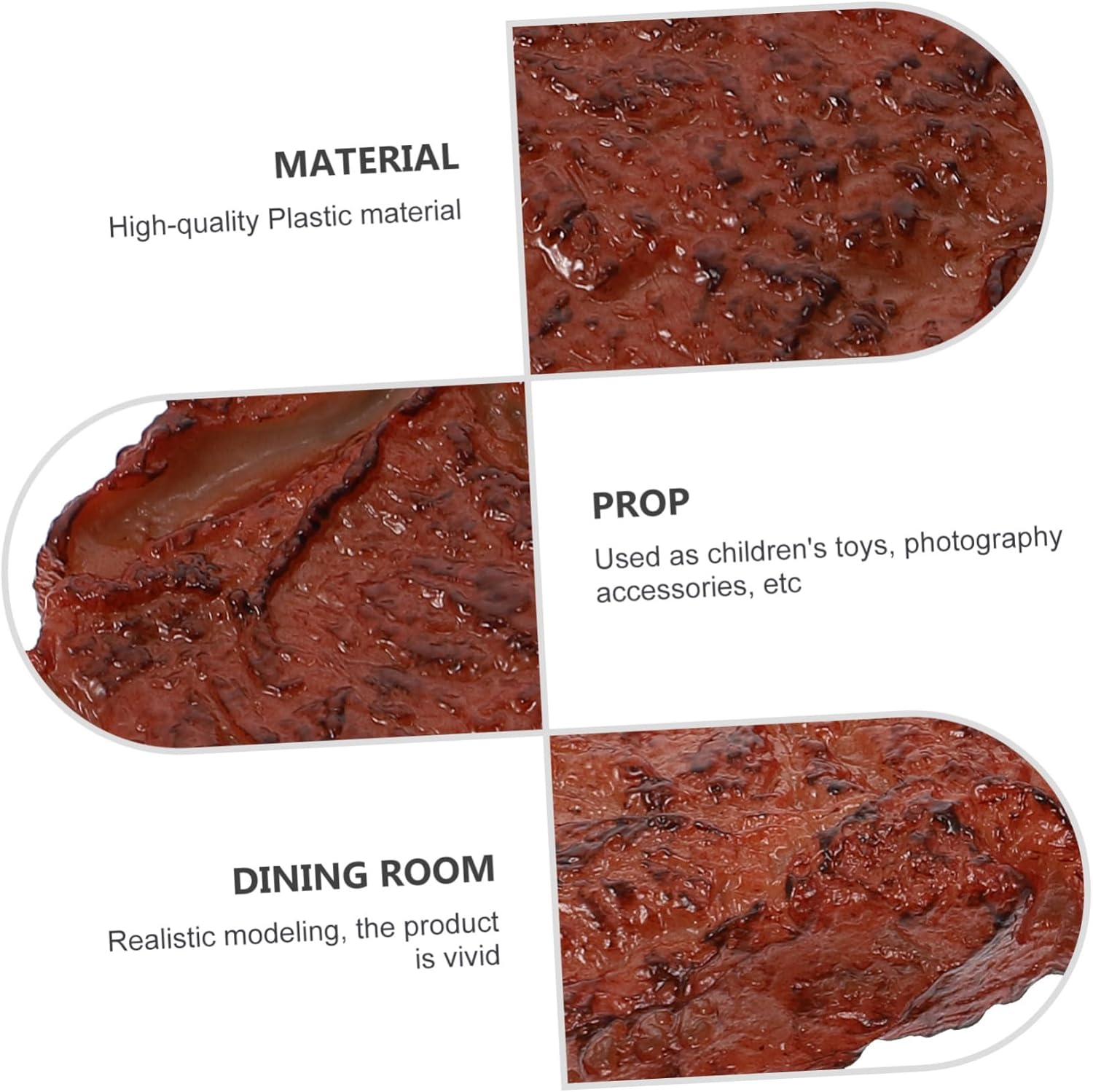 di bistecca: realizzato con materiali plastici ecocompatibili, ha una buona sensazione al tatto ed è un di bistecca finto. Decorazione a forma di bistecca finta, adatta per decorazioni domestiche, decorazioni per ristoranti, oggetti di scena per la fotografia e altro ancora, carne di manzo finta Bistecca artificiale: il prodotto è leggero e pratico, realizzato in materiale plastico, simulazione di bistecca prop Modelli di bistecche - realizzati in materiale plastico di alta qualità, forma simulata e sensazione al tatto, finti accessori di bistecche artificiali Oggetti di scena realistici per il cibo: adorabili piccoli giocattoli che non occupano spazio e portano divertimento ai bambini, possono aumentare l'immaginazione del tuo bambino, bistecca realistica