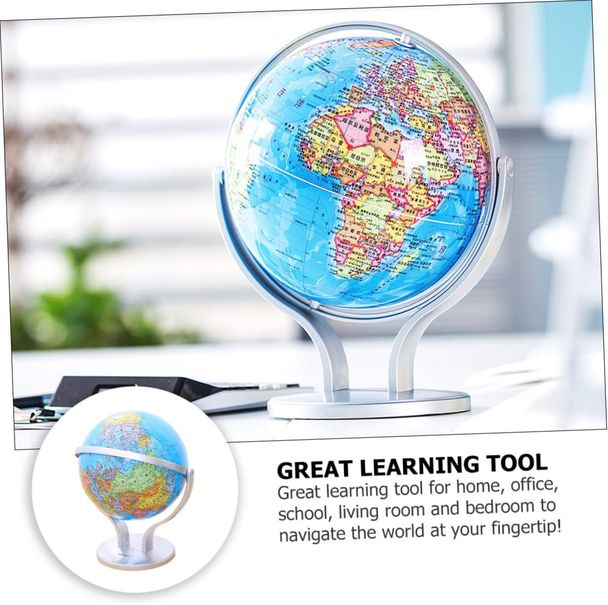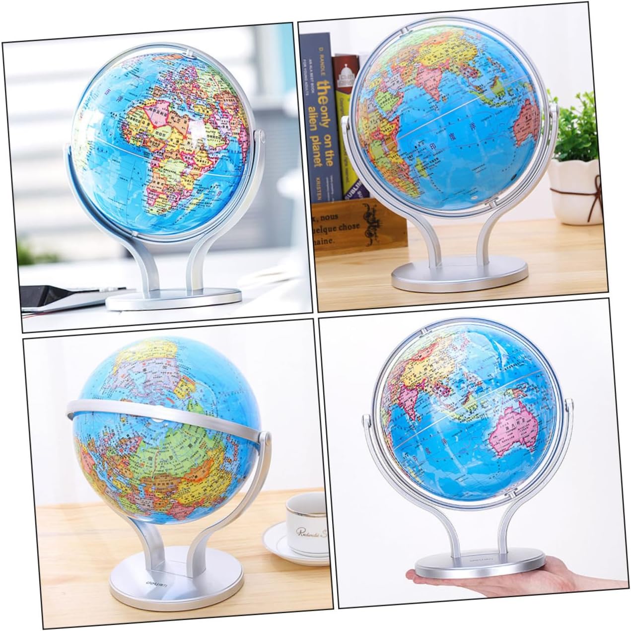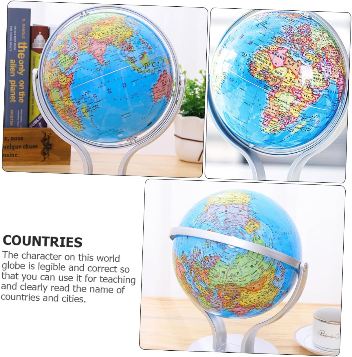 Mappamondo per bambini: le tavole di ogni paese sono colorate e ben definite. nel frattempo, questo globo contiene anche informazioni geografiche su , oceani, mari, deserti e importanti fiumi e laghi. Mappamondo per bambini: mostra la colorazione naturale della per illustrare montagne, deserti, foreste e praterie. Giocattolo per l'apprendimento della geografia dei bambini: il mappamondo politico con oceani è perfetto per la casa o la classe. Globi geografici educativi: caratteristiche degli oceani mostrano caratteristiche fisiche sottomarine e rilievi in rilievo. Globi geografici da tavolo: la superficie della base è in materiale abs, vernice satinata, struttura stabile, non graffierà il piano del tavolo.