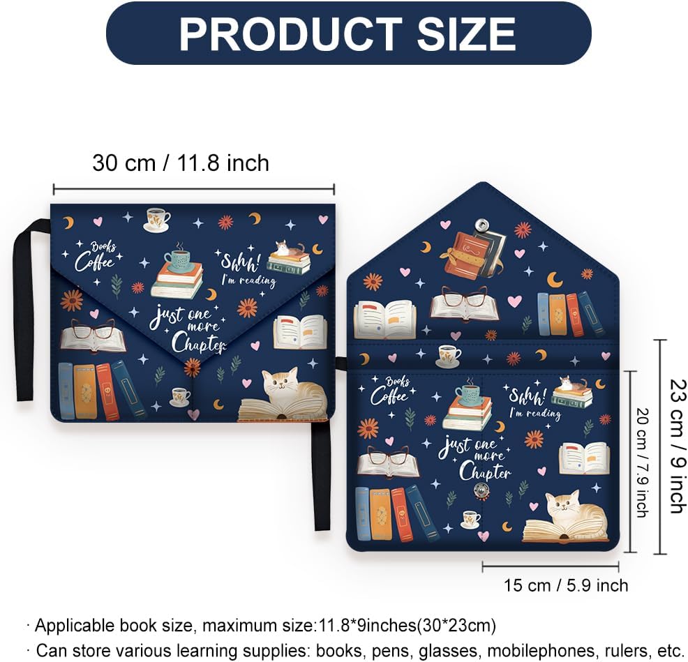 Proteggi i tuoi libri:le nostre borse protettive per libri possono fornire una protezione completa per i tuoi libri, assicurandoti che i tuoi libri non cadano facilmente durante il trasporto. Gli angoli Dia borsa sono rinforzati per evitare che gli angoli dei tuoi libri vengano danneggiati a causa di urti Pratica chiusura a scatto:questo comodo design con chiusura a scatto rende facile mettere e togliere i libri, garantendo al contempo la sicurezza dei libri durante il trasporto. Non c'è bisogno di operazioni complicate, basta un clic per aprire e chiudere Impermeabile e durevole:l'esterno è realizzato in materiale poliestere di alta qualità che resiste anche allo sfregamento e ai graffi derivanti dall'uso quotidiano.. La fodera interna è realizzata in morbido tessuto per evitare di danneggiare il tuo libro Informazioni sulle dimensioni:questa custodia per libri è misurata circa 11.8x9 pollice/30x23cm , si adatta alla maggior parte dei libri autopubblicati, tascabili standard, tascabili di massa, e copertine rigide regolari Multifunzionalità - Oltre alla protezione di base dei libri, la nostra custodia protettiva per libri è progettata con tasche extra sulla parte anteriore per riporre i , penne, e altri piccoli oggetti per rendere lo studio più comodo