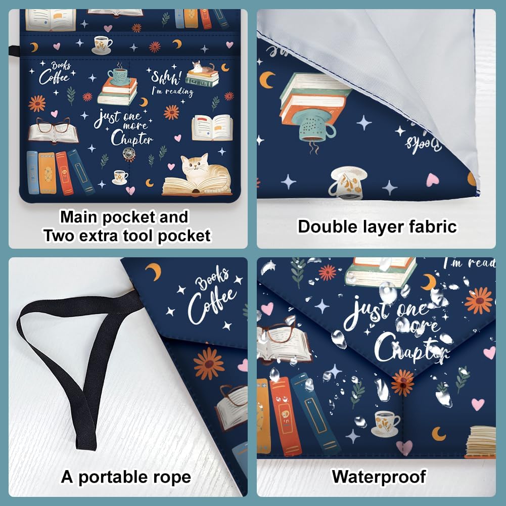 1pz Custodia Impermeabile per Libri per Amanti Di Libri, Custodia Protettiva per Libri Stampati con Gatto Libro In Tessuto Lavabile con Tasca Frontale e Bottone per Libri Tascabili, 30x23cm
