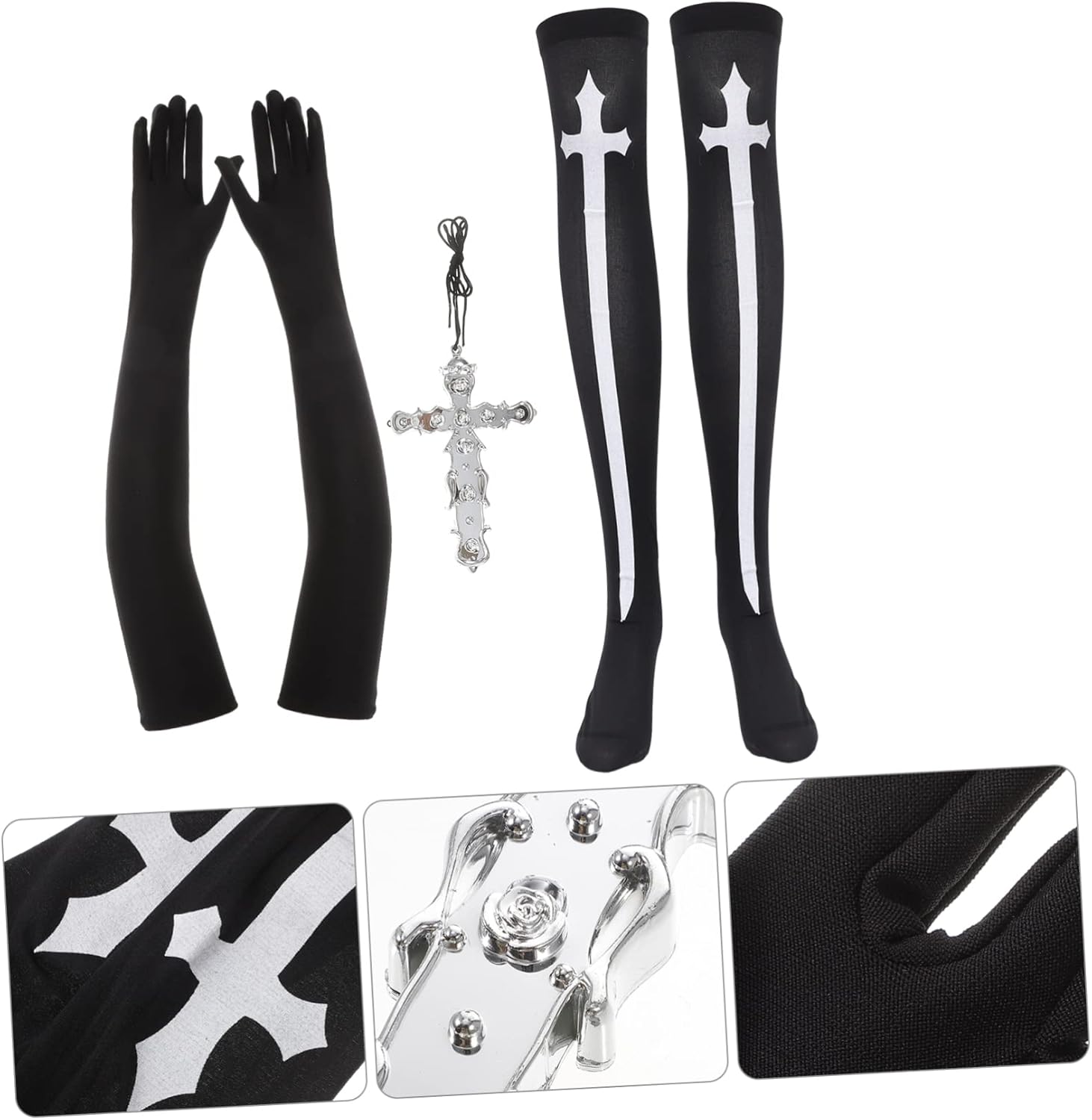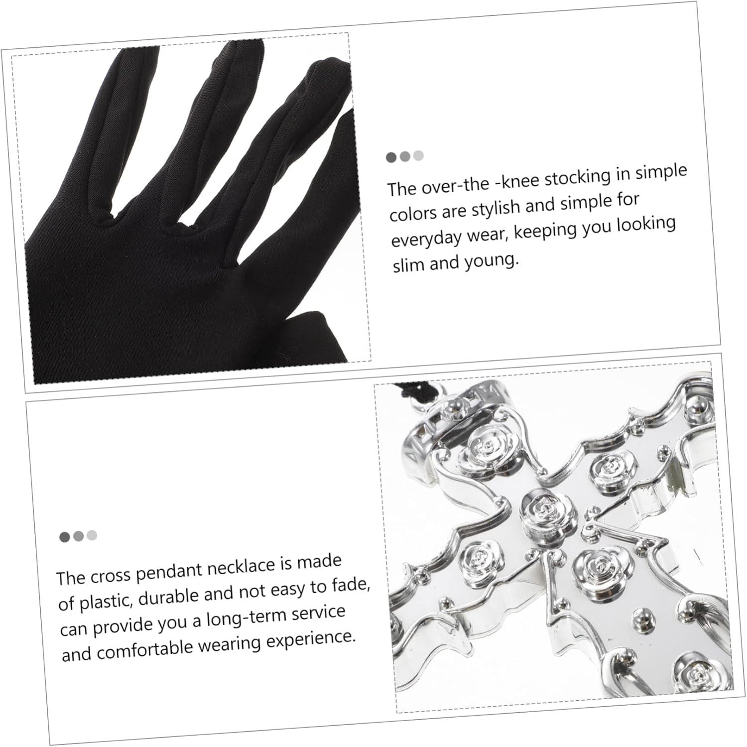 pacchetto include 1 x coppia di guanti 1 x coppia di calze 1 x collana Caratteristiche -ze: 16.00x10.50x1.70 cm/6.29x4.13x0.67in Warmers a gamba alta -COLOR: assortito colorato Calzini della coscia -Materiale: panno, forniture di cosplay di plastica -La collana a pendente a croce è realizzata in plastica, resistente e non facile da sbiadire, può offrirti un servizio a lungo termine e una collana di usura comoda per il cosplay. - Questi accessori in costume possono essere facilmente con uniformi scolastiche, gonne, stivali, scarpe da ginnastica, costumi di carnevale. Nun collana -Lo stoccaggio over -the -knee in semplici è elegante e semplice per l'abbigliamento quotidiano, tenendoti calze a suore sottili e giovani per le donne. - Allungamento, adatto alla maggior delle ragazze, il tessuto è comodo e adatto alla pelle. Il tuo stile attirerà l'attenzione degli altri calze decorative per suore. - Questi calzini lunghi decorativi sono. Questo set di calze e guanti da suora ti renderà più accattivanti accessori per le suore. Descrizione di merci Nun Outfit decorativo e creativo, evidenzia facilmente l'atmosfera del festival. Calzini più lunghi progettati con modelli incrociati di calze e altro ancora, calze e guanti sono flessibili. Fock a tacere questi accessori per il costume da suore sono Realizzato, addensato e comodo