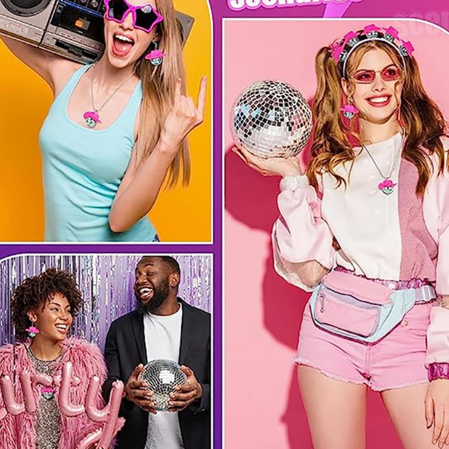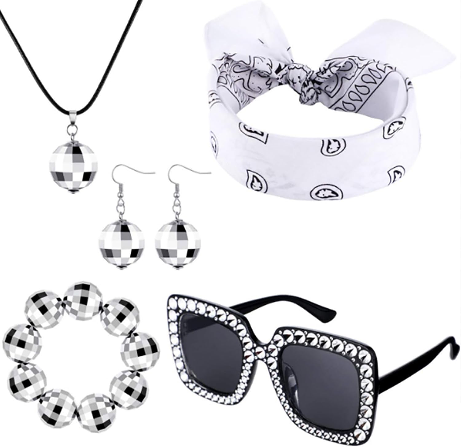 1 set di orecchini da donna con sfera da discoteca, collana, braccialetto e occhiali da sole, per Halloween, cosplay, feste di fine anno Caratteristiche: Questo set di palline da discoteca è adatto per ogni occasione ed è perfetto per i tuoi cari. Questo set è adatto per donne di tutte le età e può essere utilizzato per festival, matrimoni e molte altre occasioni. La montatura degli occhiali da sole con strass è squisita e fresc Questo set di accessori è progettato magnificamente negli anni '60 e '70 ed è adatto per discoteche, feste in discoteca, feste di Halloween, feste di compleanno e persino uso quotidiano. Che tu stia partecipando a un matrimonio, un ballo di fine anno o altre occasioni speciali, questi accessori versatili sono sicuri di stupire. Specifiche tecniche: Circonferenza della testa consigliata: 55-60 cm. La confezione include: 1 set di accessori per feste in Nota: 1. Si prega di considerare un margine di errore di 1-2 cm dovuto alla misurazione manuale. 2: A causa delle differenze tra i diversi monitor, l'immagine potrebbe non riflettere esattamente il colore dell'articolo.