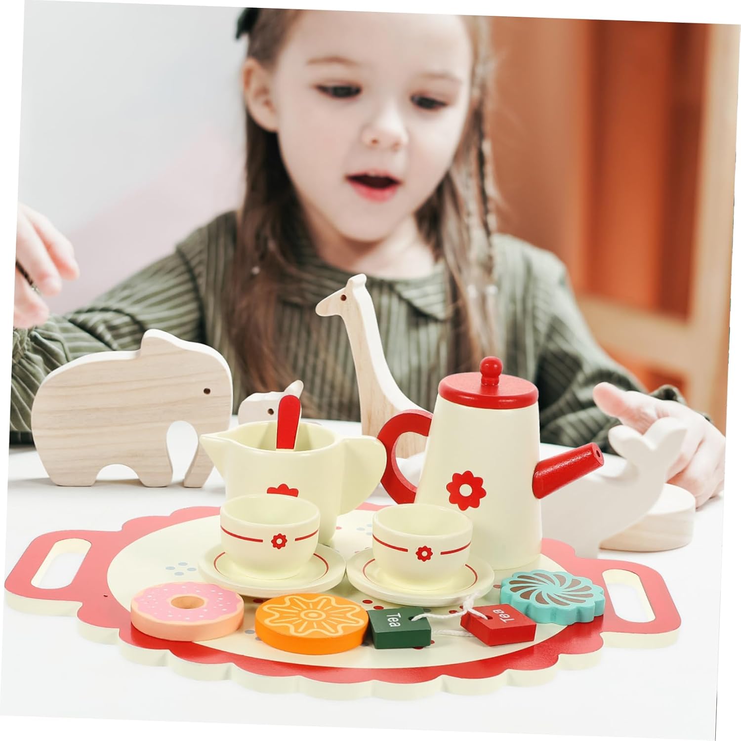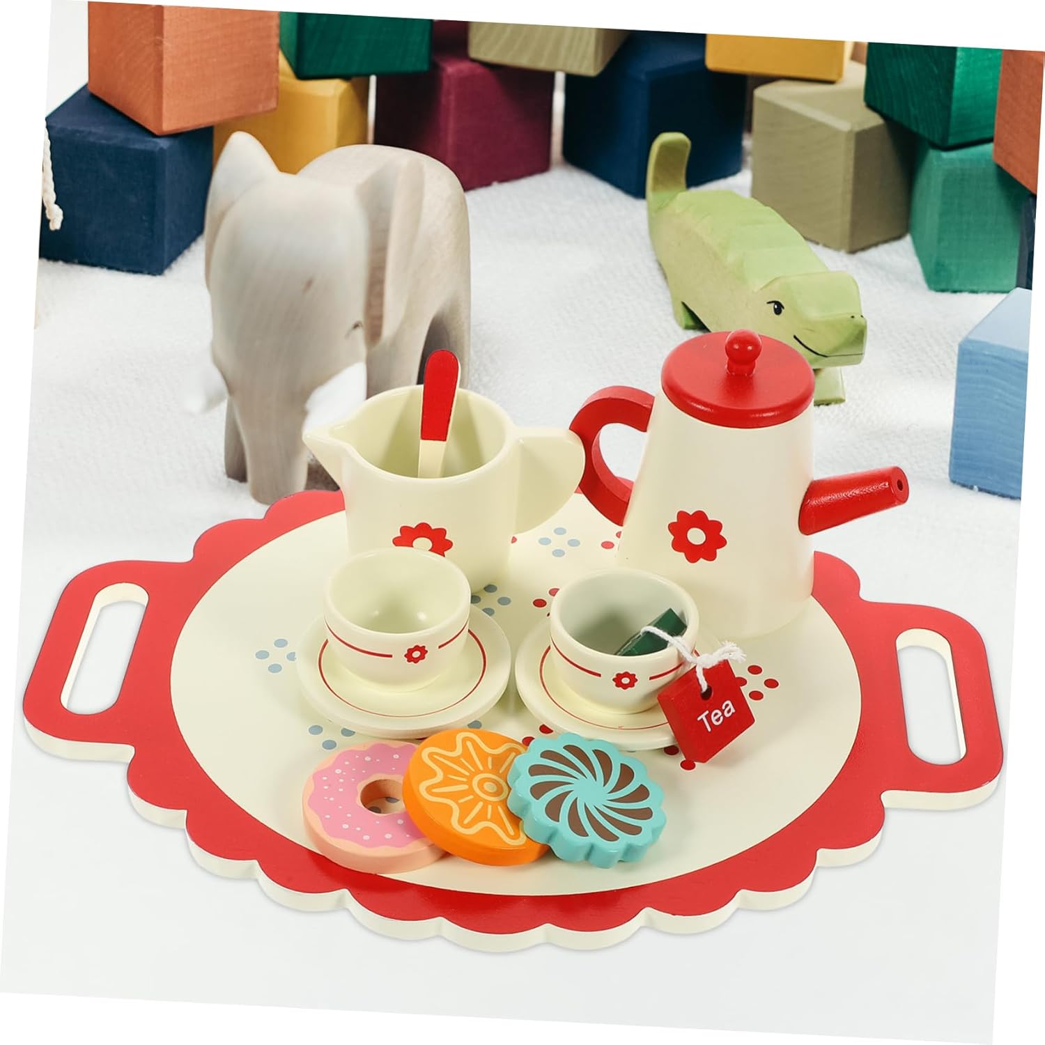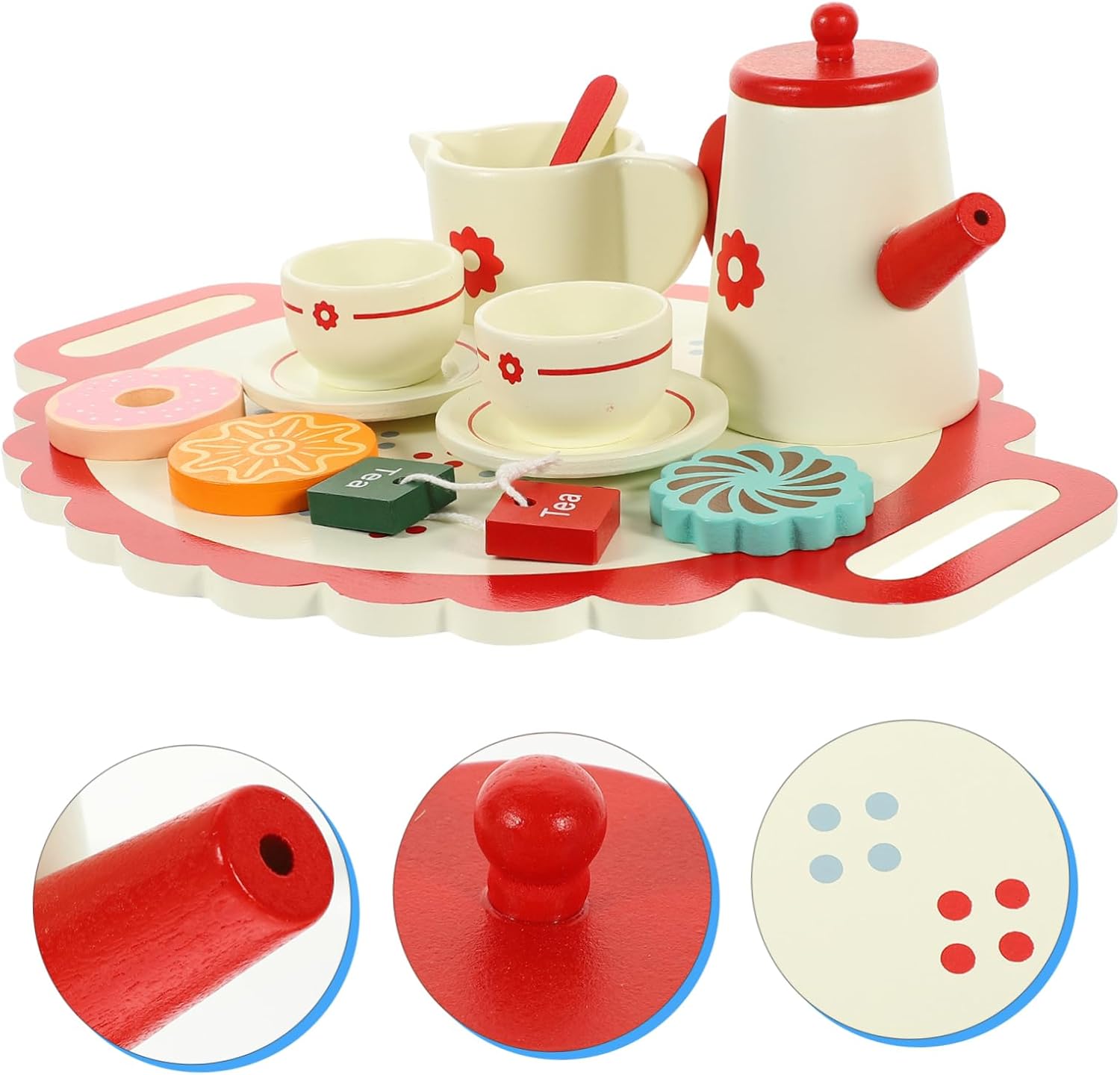 Giocattolo da teiera: migliora efficacemente la capacità di vedere, sentire e coordinare e occhi, lascia che i bambini sperimentino il divertimento di preparare il tè, giocattolo da tè Giocattoli per il tè pomeridiano: materiale in legno, da usare, i bambini possono farlo da soli o divertirsi con i loro amici, giocattolo teiera Set da gioco per il tè pomeridiano: design adorabile e vivaci possono invogliare i bambini a creare e con gli amici, giocattolo teiera Giocattolo da tè: la piccola decorazione può essere utilizzata come per parenti, amici, compagni di gioco e per te stesso, giocattolo da teiera Questo set da tè è stato appositamente progettato per i giochi di finzione. adatto anche per i giochi di cosplay.