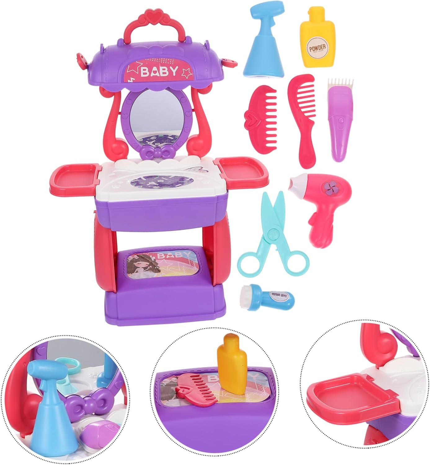 Set da gioco per salone di bellezza per : aiuta a sviluppare la , la creatività e la capacità di pensiero dei e ad allenare la coordinazione occhio-mano, nonché la flessibilità delle da soli, giocattolo da gioco di ruolo da salone Giocattoli di simulazione per parrucchieri: per l'interazione genitore-figlio, utili per migliorare il rapporto tra genitori e figli, giocattoli divertenti per parrucchieri per Giocattolo da parrucchiere e salone di bellezza: con aspetto realistico, può attrarre i tuoi a giocare, sviluppare abilità pratiche, giocattoli di bellezza per Giocattoli educativi: con la maggior degli strumenti e degli accessori di cui le bambine hanno bisogno per giocare a casa, la tua principessa può realizzare le sue acconciature preferite con accessori per lo styling e strumenti di simulazione, giocattoli cognitivi Giocattolo cognitivo: le bambine possono giocare a giochi di finzione, giochi di acconciatura, saloni di bellezza e travestimenti, stimolare l'immaginazione e la creatività dei , giocattolo di finzione