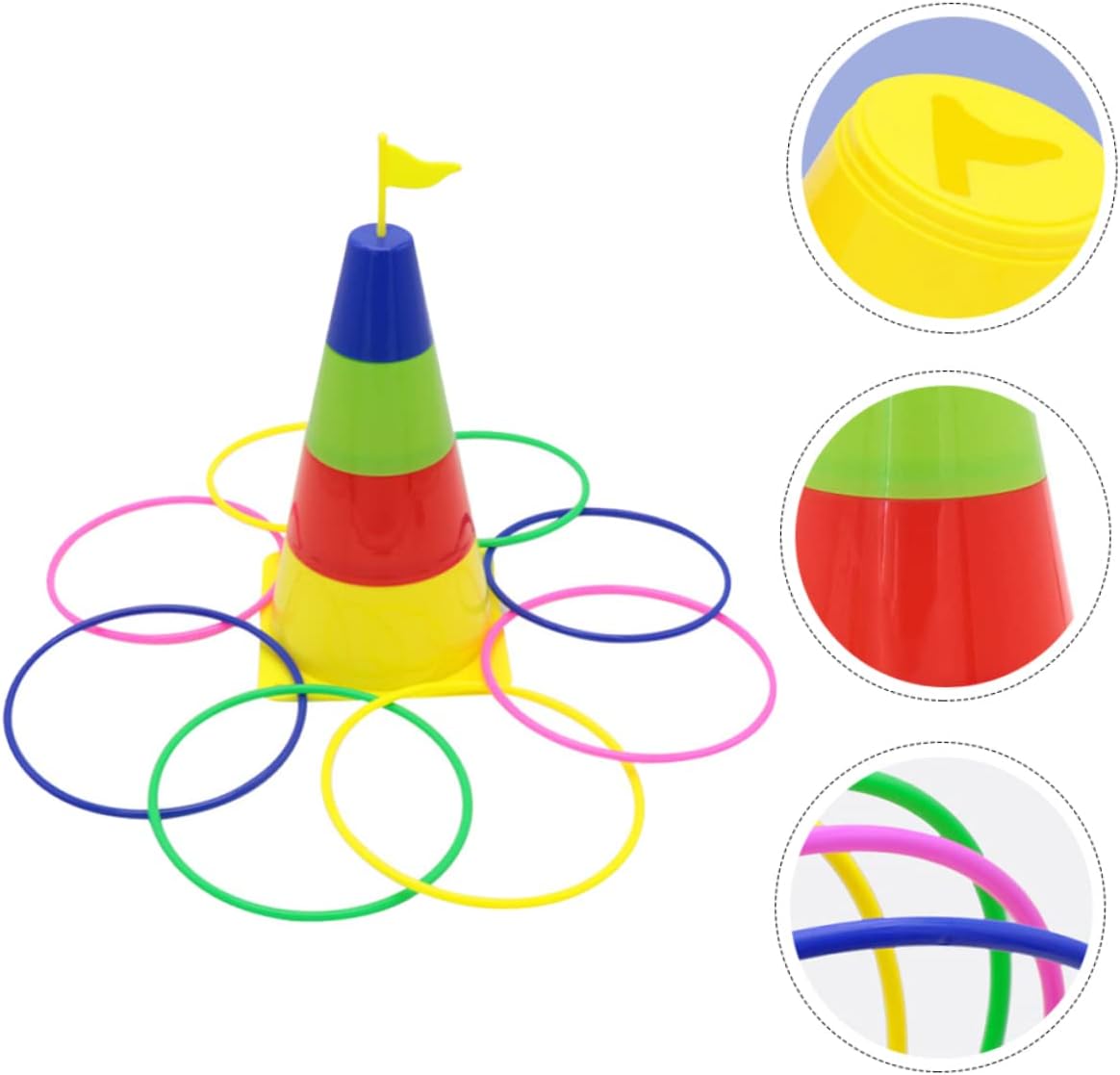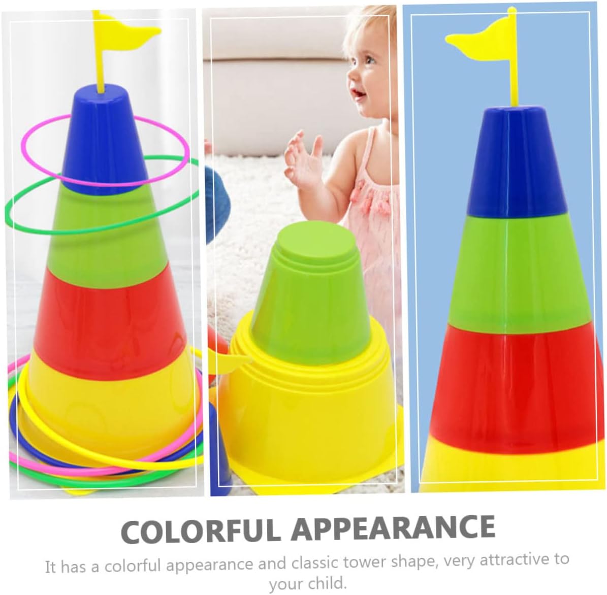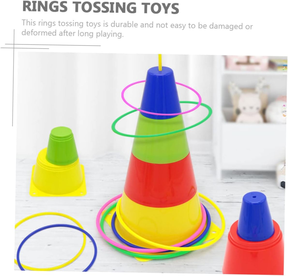 Giocattolo educativo: è il momento di giocare a questo gioco con i tuoi bambini per creare un rapporto genitore-figlio più stretto, giocattolo ad anello colorato Giocattolo interattivo: è adatto per sviluppare la coordinazione occhio-mano dei bambini, la concentrazione e l'abilità pratica, gioco del lancio 'anello Giocattolo per la famiglia: ha un aspetto colorato e una forma a torre, molto attraente per il tuo bambino, giocattolo per l'allenamento 'agilità Attrezzi per giochi di lancio: il design è molto bello, con una piccola torre, adatti ai bambini che giocano all'interno o all'esterno, circle plaything Giocattolo di lancio 'anello: genitori e figli possono giocare insieme e l'interazione genitore-figlio sarà migliorata, giocattolo di lancio 'anello