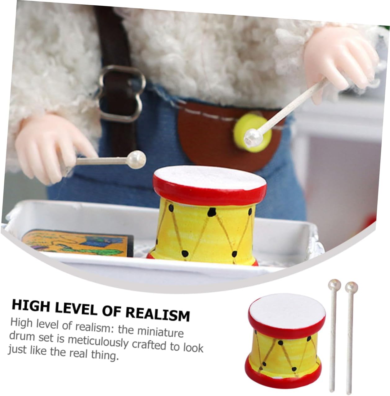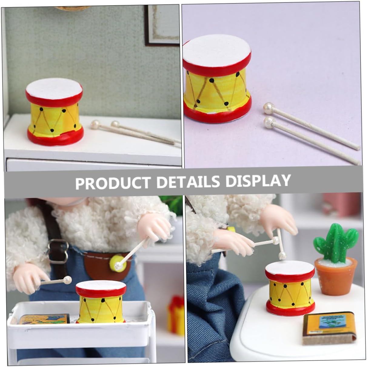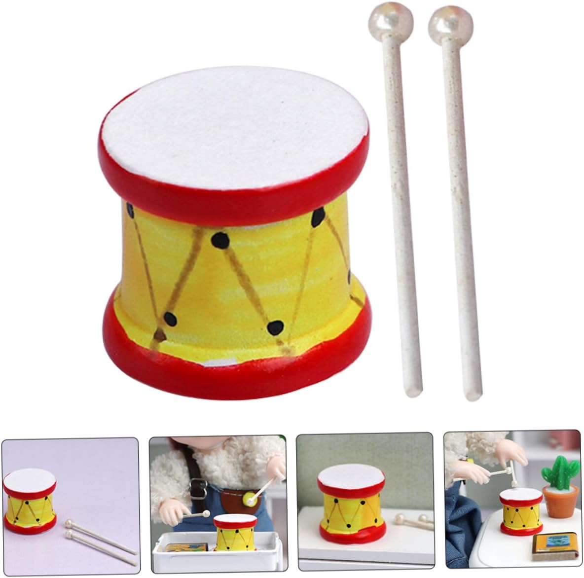 Artigianato superiore: realizzato con materiali sicuri e meticolosamente realizzato, ha bacchette realistiche e minuscole, ornamenti per mini strumenti Mini ornamento per tamburo: realizzati in legno, questi strumenti musicali in miniatura non sono facili da rompere, possono essere applicati per lungo tempo e molte volte, ornamento per tamburo Artigianato squisito: realizzato con materiali sicuri e finemente dettagliato, ha una consistenza e una sensazione eccezionali, decorazioni per tamburi per case delle bambole, strumenti musicali per case delle bambole Accessorio versatile: può essere utilizzato come pezzo decorativo nelle case delle bambole, elevando l'attrattiva visiva di qualsiasi stanza, chitarra in miniatura, modello di tamburo realistico Buon materiale: realizzato in materiale di legno, questo tamburo e sono e da usare, modello di tamburo piccolo, ornamento di mini figurine