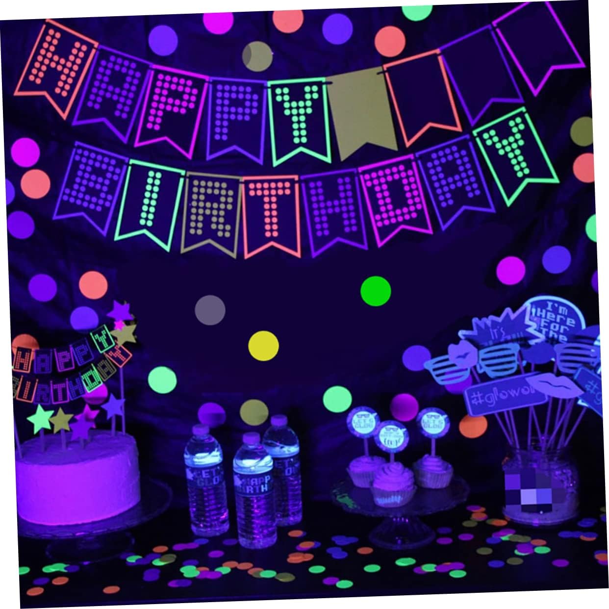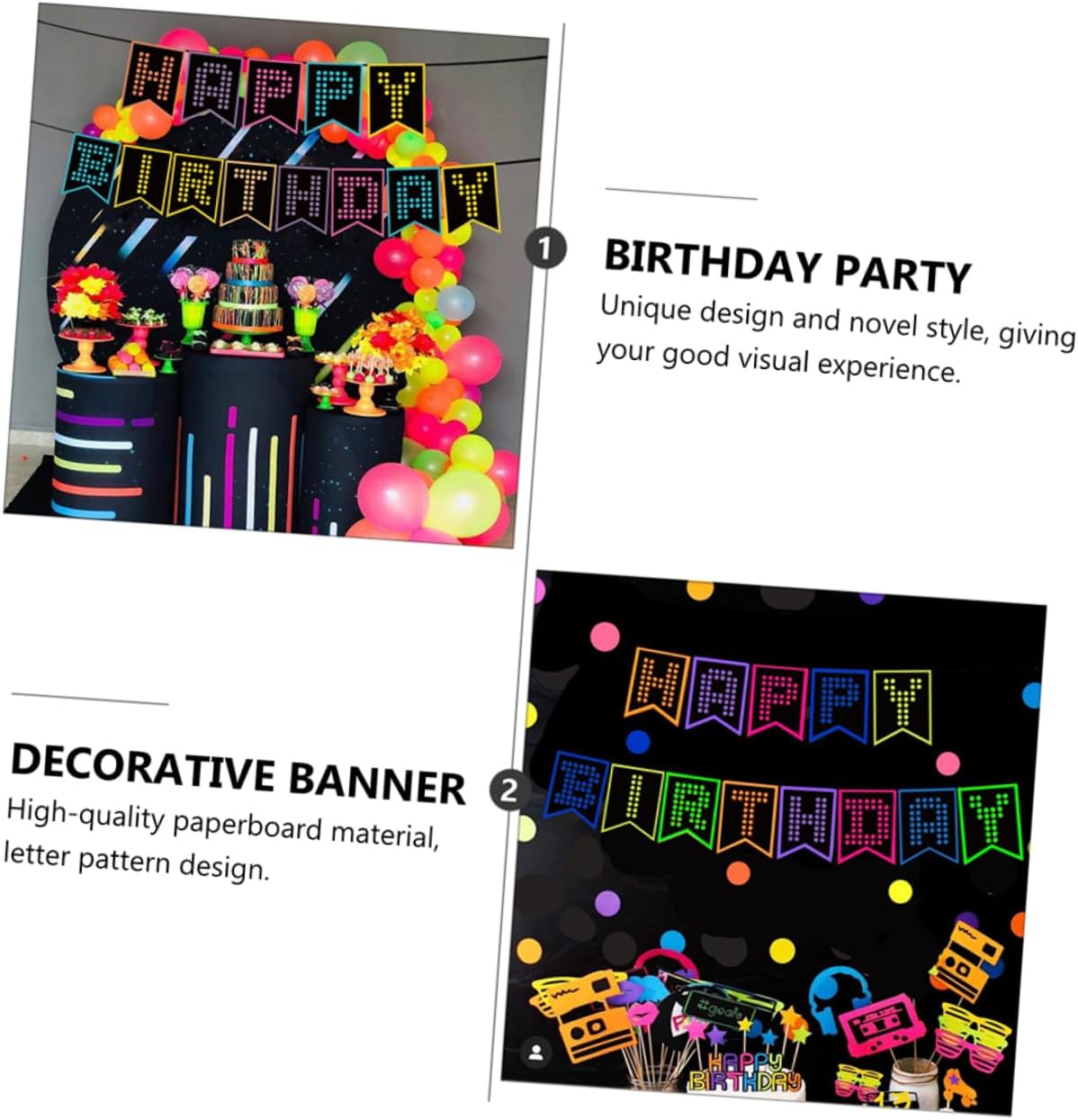 Striscioni di buon compleanno: adatti per la decorazione di tutti i tipi di scene di feste di compleanno, striscioni luminosi di compleanno. Banner di compleanno: tema distintivo, evidenzia l'atmosfera del compleanno, decorazione della festa di compleanno. Bomboniera luminosa per la festa di compleanno: ottima decorazione per creare ricordi indimenticabili per i tuoi ospiti, ghirlanda per feste di compleanno. Banner di compleanno luminoso: design unico e stile innovativo, per una buona esperienza visiva, banner fornito per il compleanno. Banner da appendere per compleanno: facile da montare, creatività illimitata, può rendere la tua festa piena di vitalità, banner di compleanno per adulti.