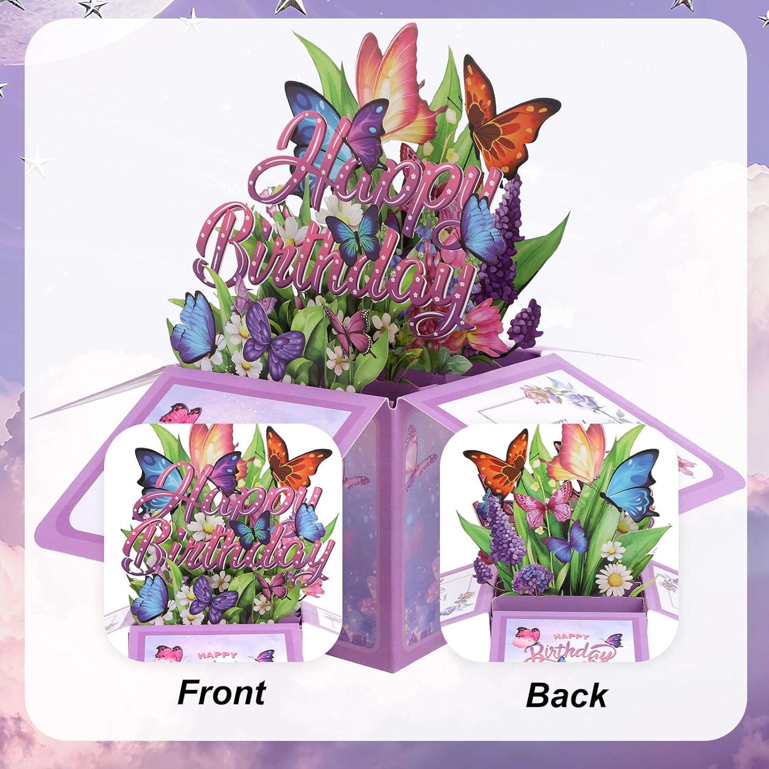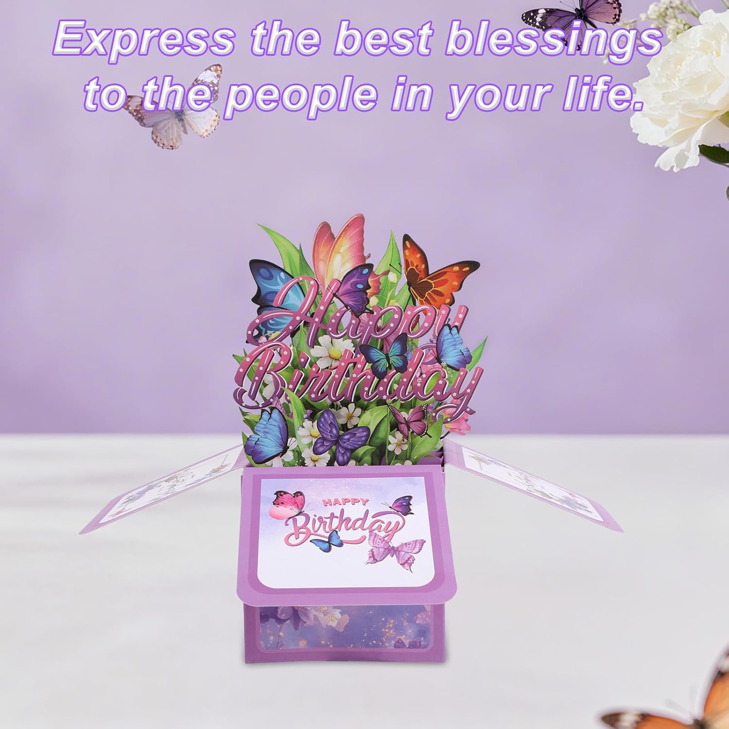 Contenuto del prodotto: riceverai 2 set di biglietti pop-up di buon compleanno in 2 diversi stili di fiori di farfalla, con 2 buste e 2 biglietti di auguri. Una cartolina 3D interattiva piena di fiori e farfalle colorati, che aggiunge un tocco da sogno alle tue celebrazioni di compleanno. Farfalla e fiore colorati: si distingue dalle carte comuni. L'effetto 3D appare con farfalle e fiori colorati, crea un'impressione sognante e duratura, con elementi pop-up creativi: colori vivaci e motivi dolci e rende i compleanni più speciali e gioiosi! Dimensioni: il nostro biglietto di auguri 3D Happy Birthday misura circa 18x17,5 cm e la busta misura circa 21x20 cm. Il biglietto di auguri di compleanno misura circa 8x8 cm. Materiale premium: realizzato in carta spessa e resistente. Garantisce che la struttura pop-up rimanga intatta, con pieghe lisce per una facile apertura e chiusura. Regalo memorabile: perfetto per moglie, mamma, figlia, sorella, nipote o amici. Busta vuota all'interno per parole calde e personali, che mescolano sentimento e piacere visivo.