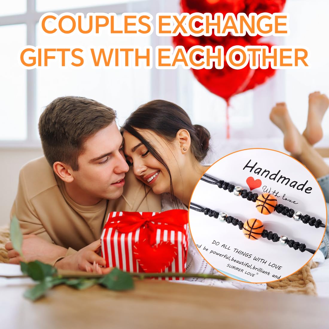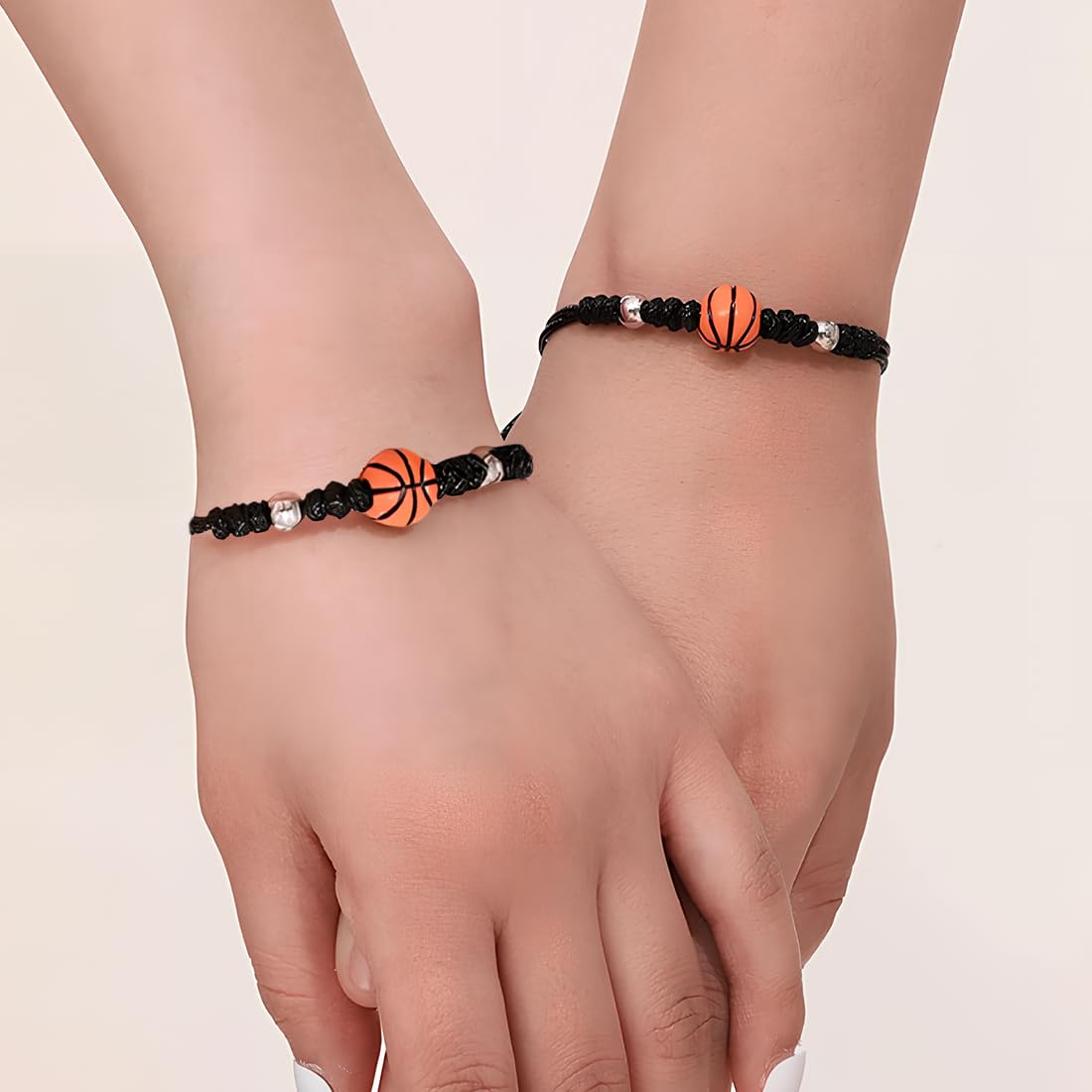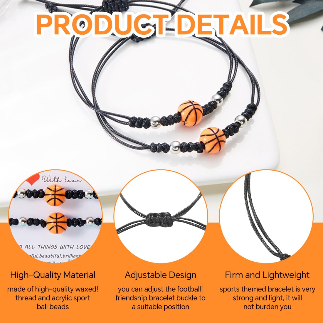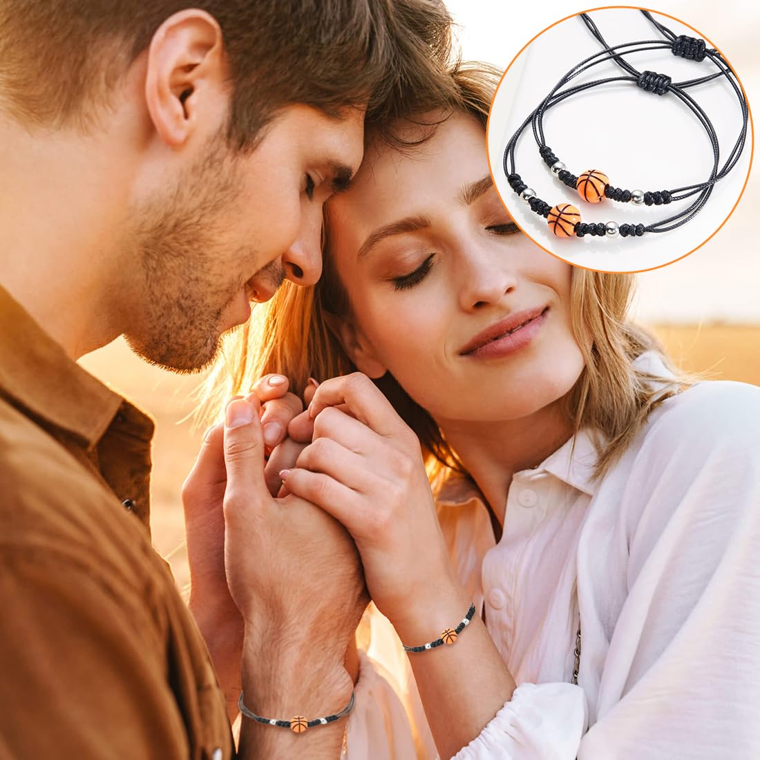 2 pezzi in un set, braccialetti per coppie di basket, stile sportivo romantico. Corda di alta qualità + perline ecologiche, delicate sulla pelle senza irritazioni, comode da indossare. Nodi regolabili, si adattano a polsi diversi, flessibili da indossare. Design di coppia, elementi di basket corrispondono, simbolo di accompagnamento armonioso. Idrorepellente e resistente al sudore, lavabile delicatamente, bello a lungo
