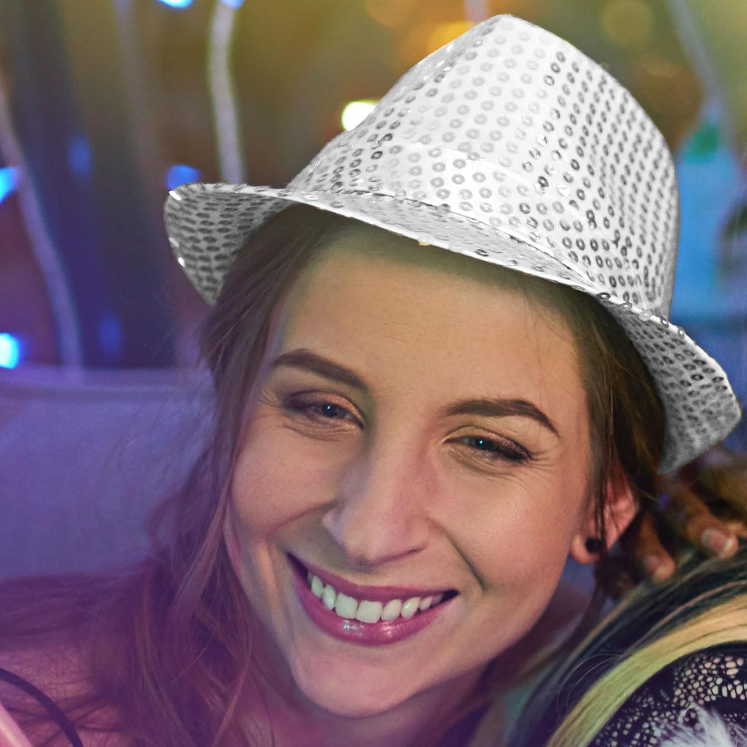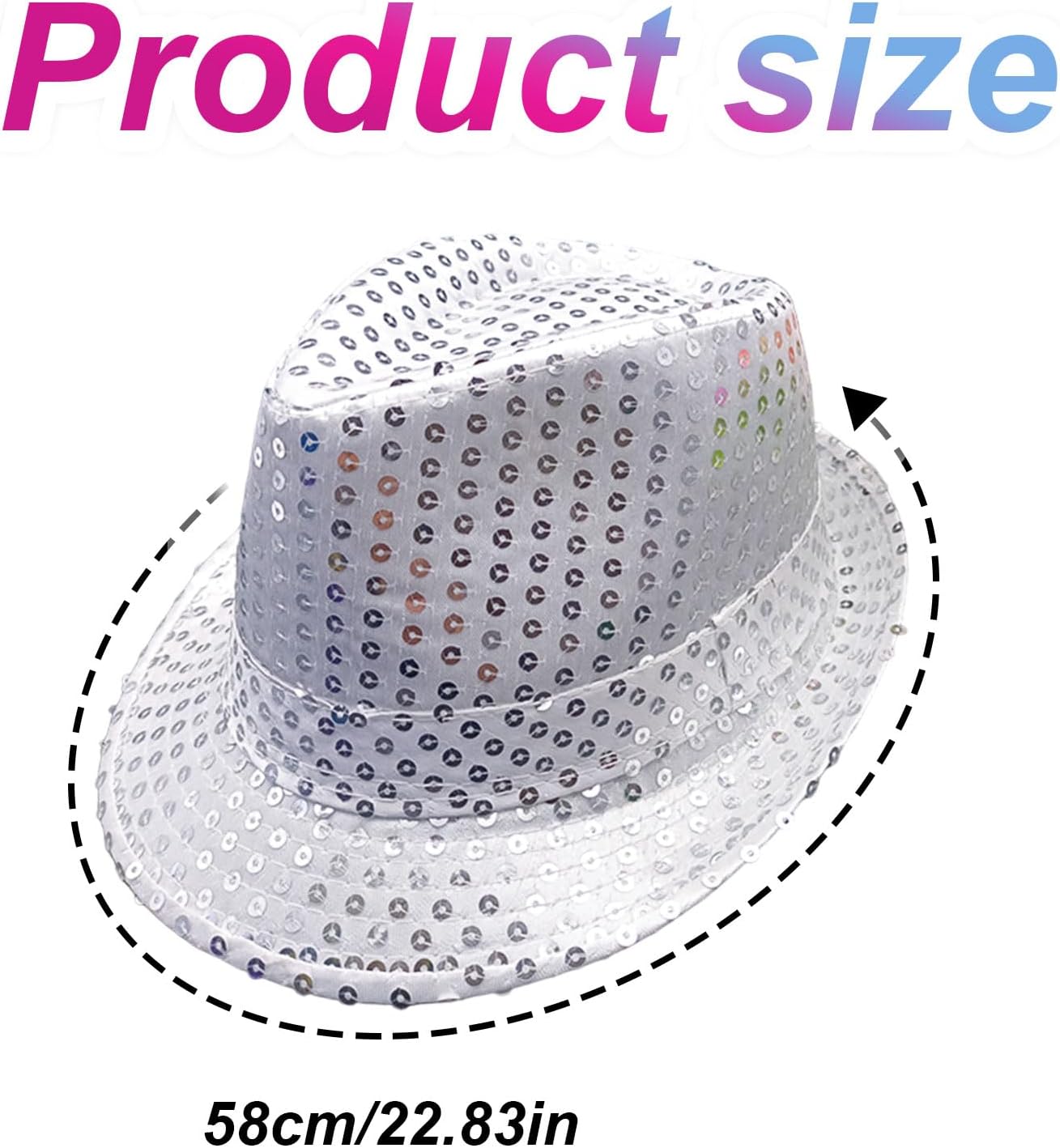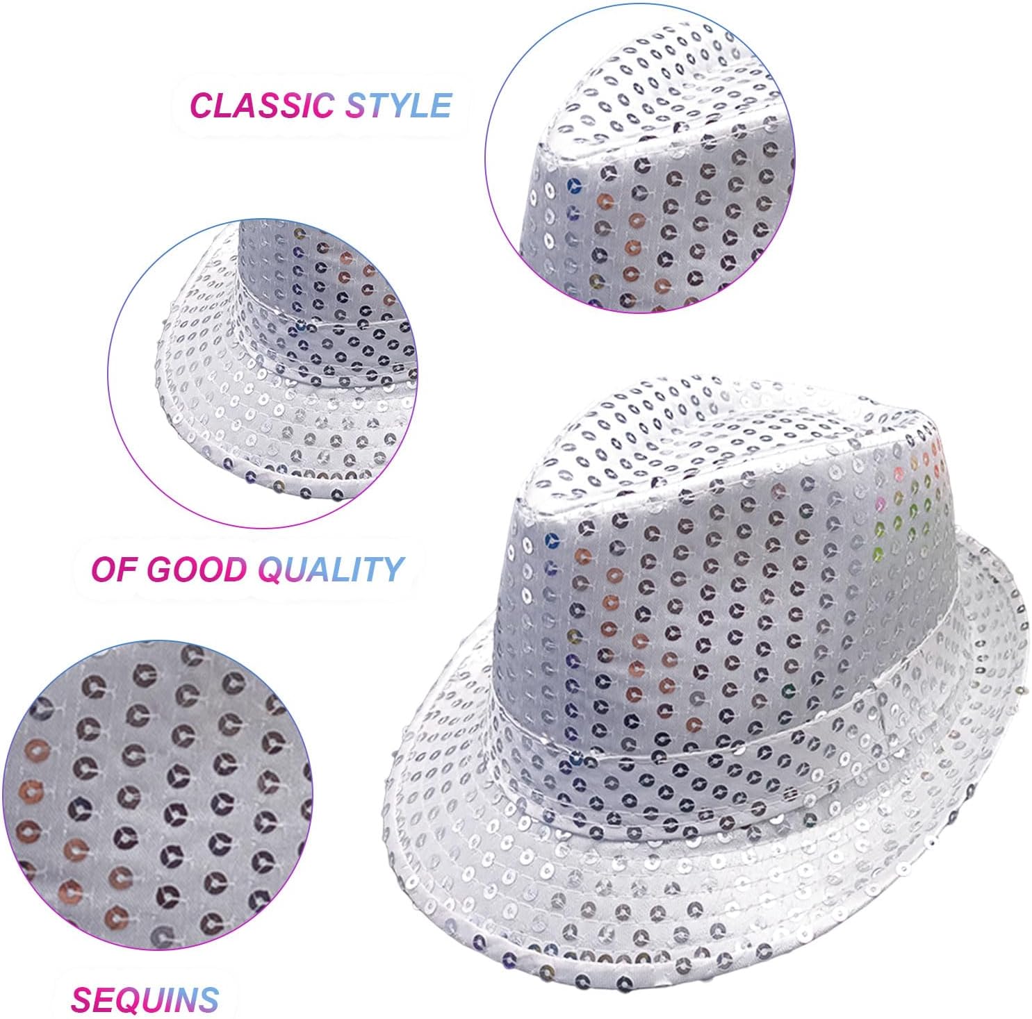 Descrizione prodotto Materiale: poliestere. Colore: argento. Contenuto della confezione: 2 cappelli con paillettes. Avviso di sicurezza No