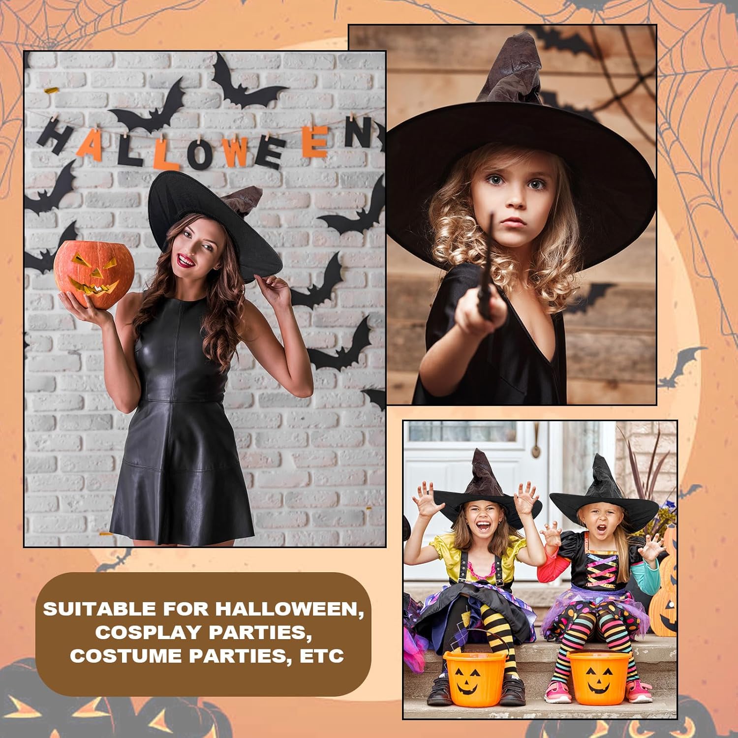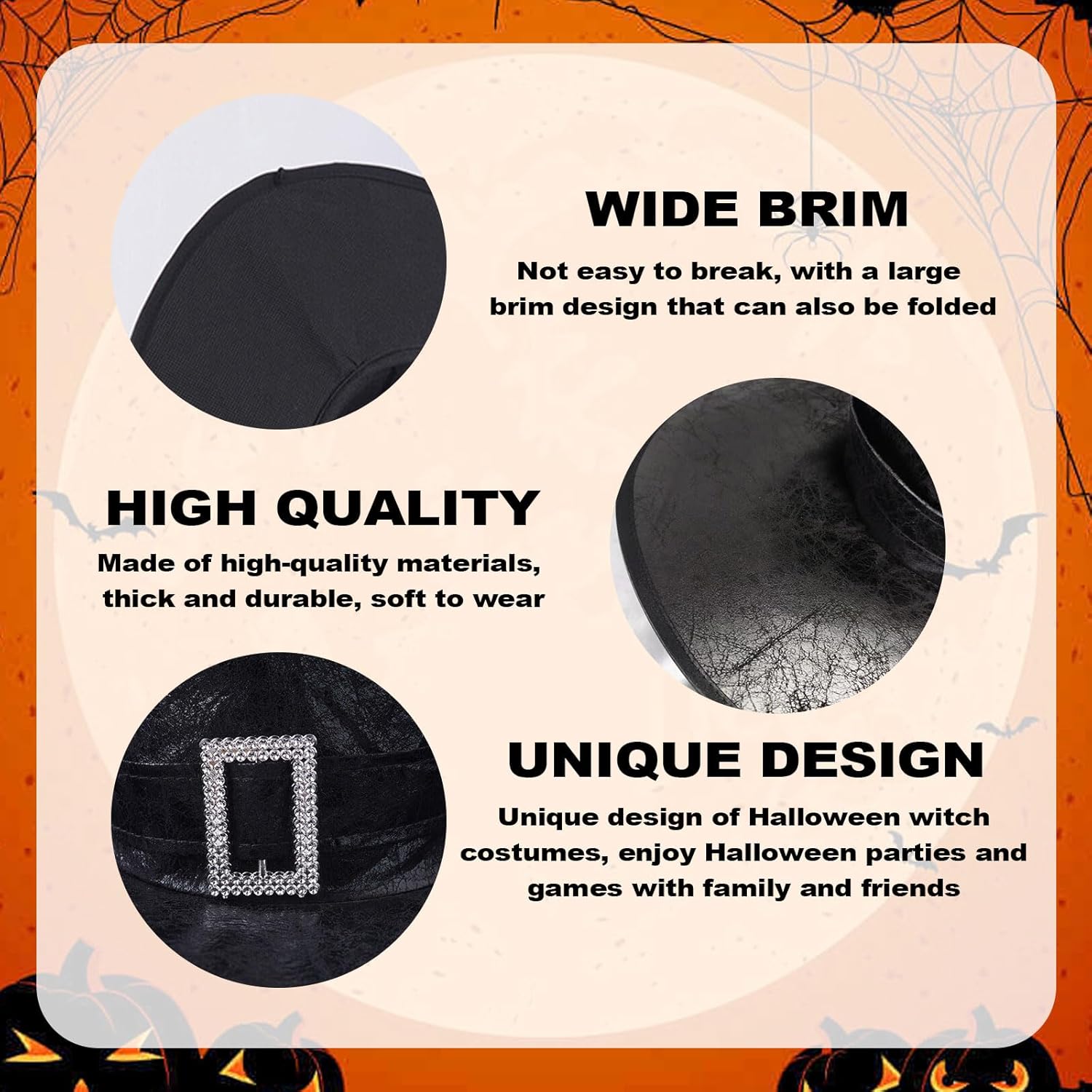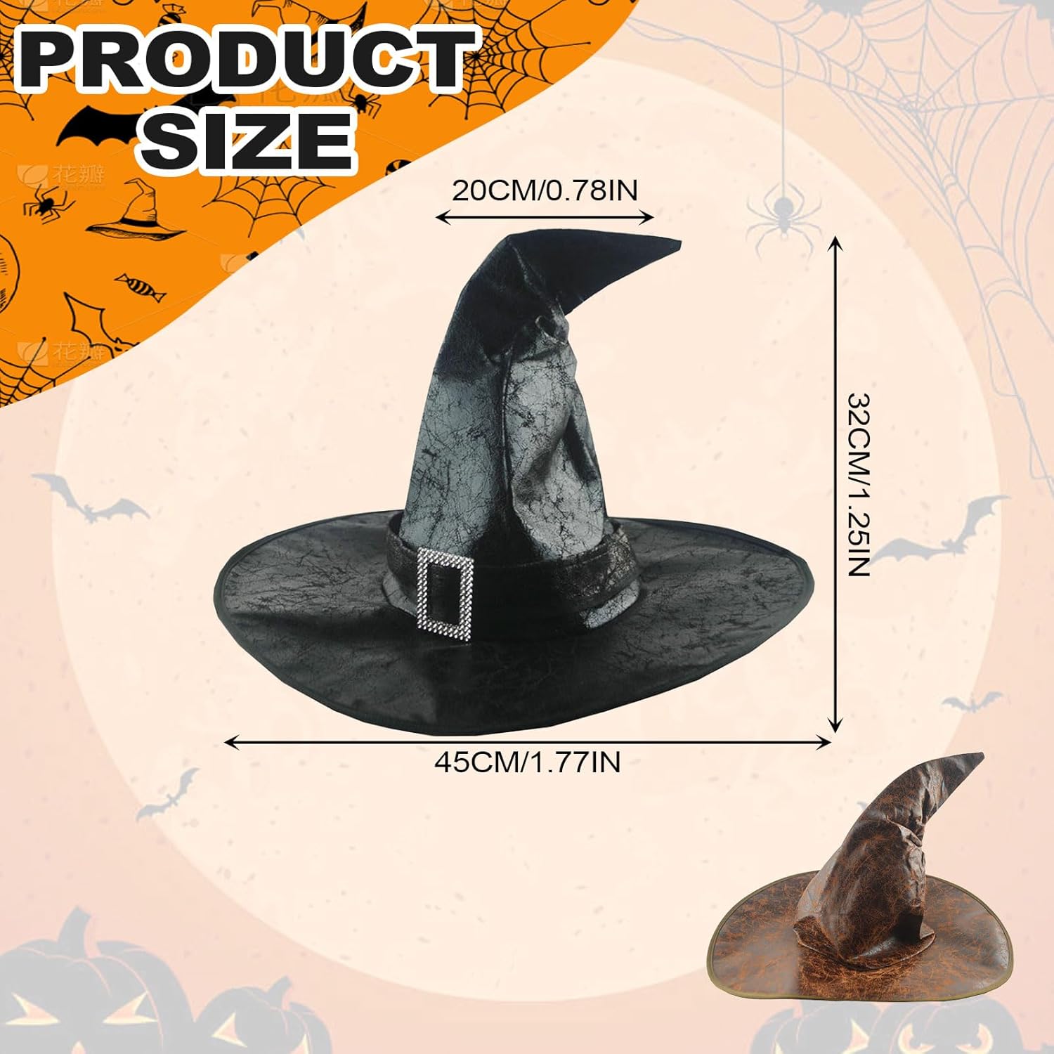 Descrizione prodotto Materiale: similpelle. Colore: Nero, Marrone Contenuto della confezione: 2 cappelli da mago di Halloween. Avviso di sicurezza No