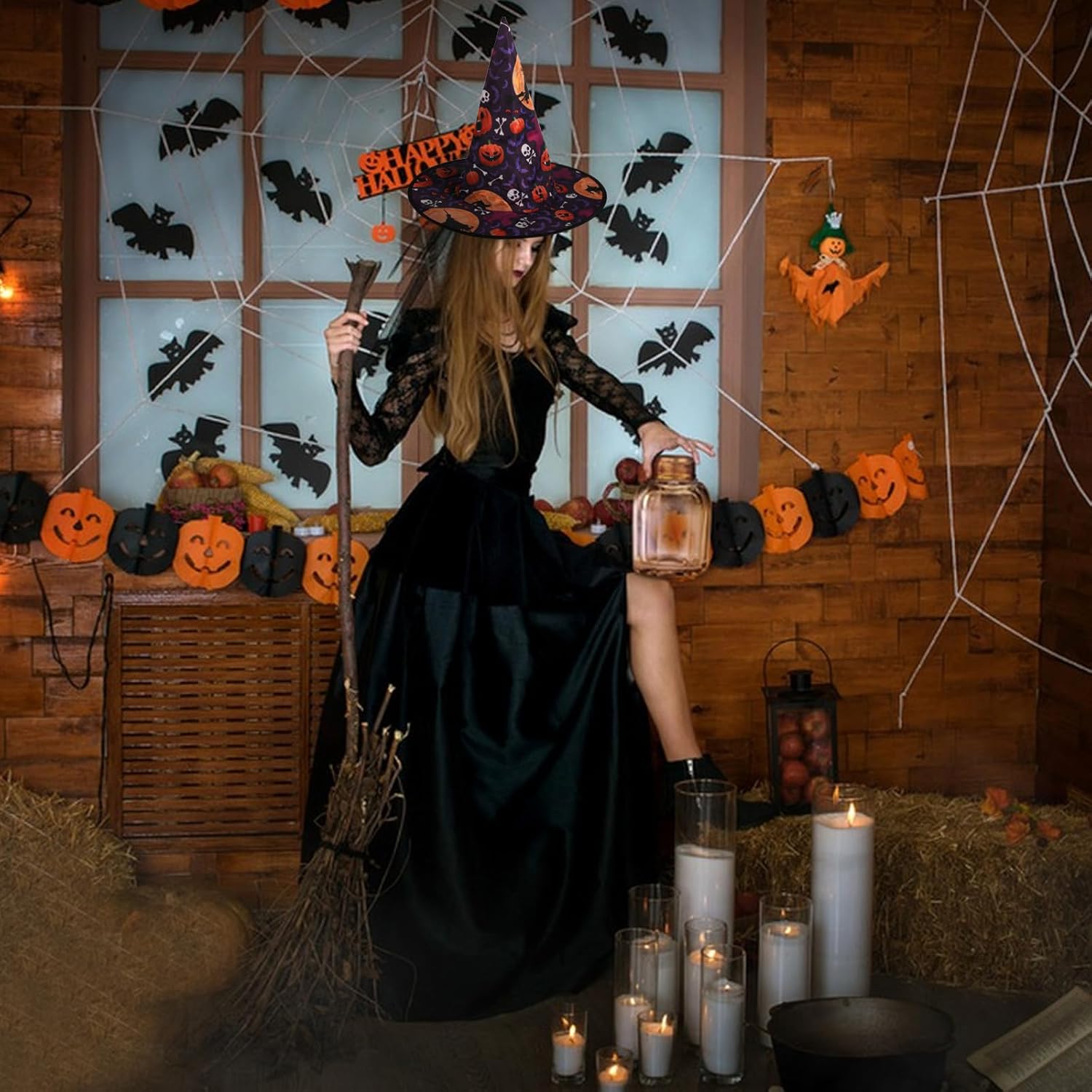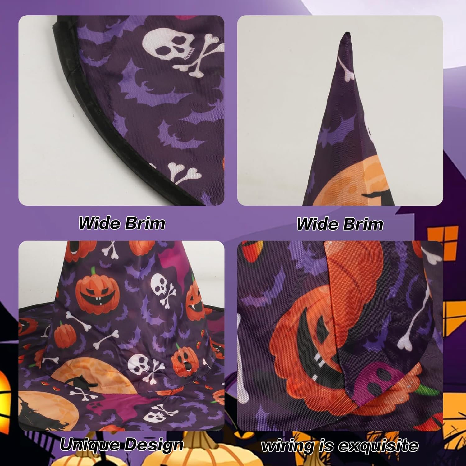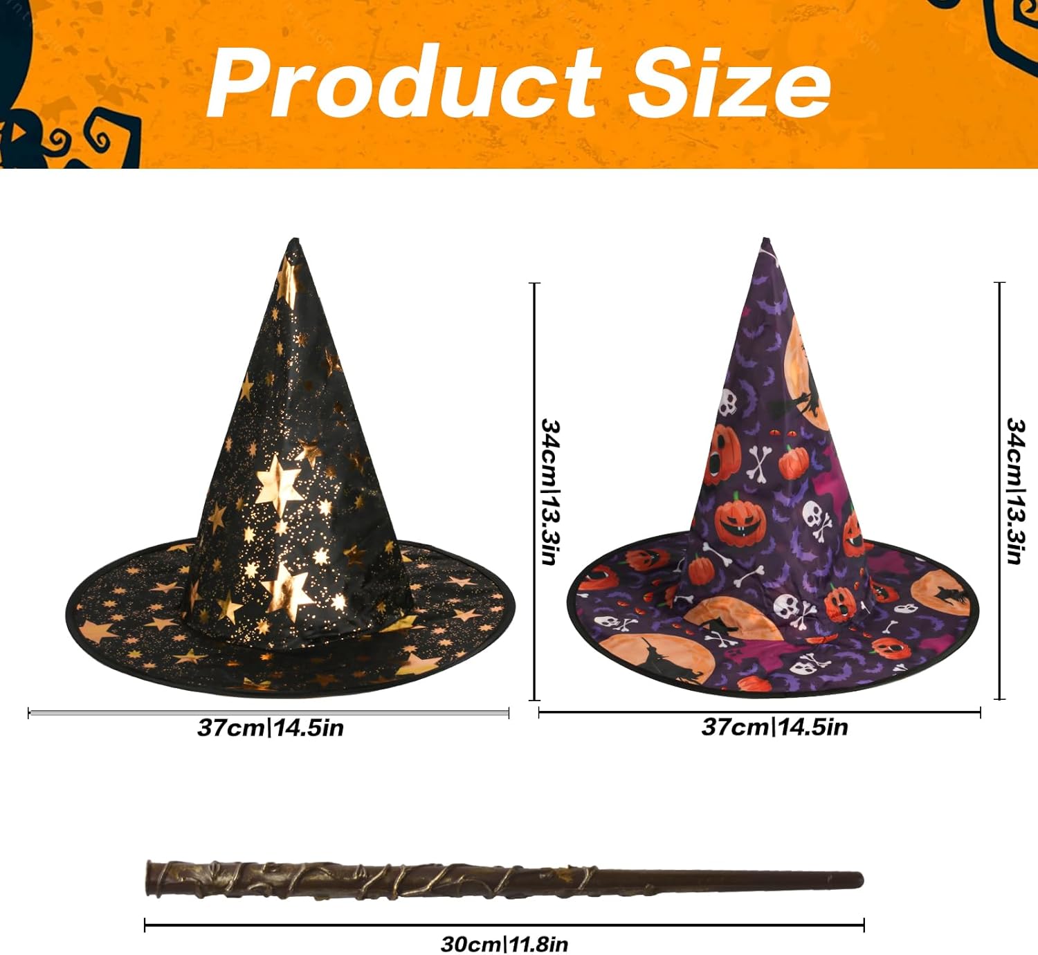 Quali sono i vantaggi del nostro cappello di Halloween? 1. Materiale di alta qualità: il cappello da strega per adulti è realizzato in robusto tessuto Oxford, leggero e confortevole e può mantenere la sua forma anche dopo un uso ripetuto. 2. Aspetto affascinante: il motivo accattivante sul cappello crea un'atmosfera festiva, mentre la bacchetta abbinata aggiunge dettagli extra divertenti, ispirando la tua immaginazione e divertimento quando ti vesti alle feste o a casa. 3. Occasioni applicabili: questo set di costumi da strega di Halloween è adatto per feste di Halloween, giornate di vestimento a tema, spettacoli teatrali, gare in costume, sfilate e persino oggetti di scena fotografici per le vacanze. 4. Set completo: contiene due cappelli da strega decorati con teschio e stelle e una bacchetta magica, fornendo un set completo di attrezzature per il tuo costume di Halloween. Goditi il divertimento di vestirti, condividere risate e catturare momenti indimenticabili con questo set di costumi vivido e premuroso. Caratteristiche: Materiale: tessuto Oxford. Colore: multicolore. Dimensioni: come da immagine. La confezione include: 1 x cappello da strega colorato 1 cappello da strega a forma di stella. 1 bacchetta magica. Garanzia post-vendita: Se avete domande, vi preghiamo di contattarci in tempo e risponderemo il prima possibile. Consigli: La dimensione è misurata manualmente, si prega di consentire lievi errori. A causa delle diverse impostazioni del colore dei monitor, il colore reale potrebbe essere leggermente diverso dall'immagine online, si prega di fare riferimento al prodotto reale. Grazie per la comprensione.