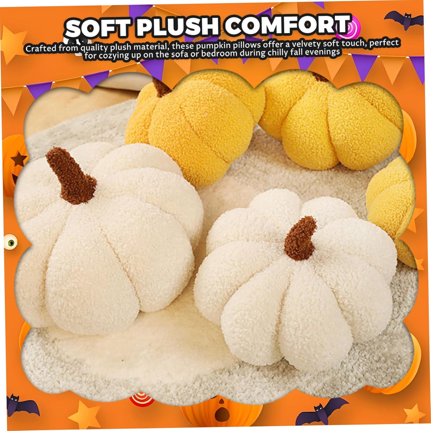 Morbido peluche confortevole: realizzati in materiale felpato di qualità, questi cuscini a forma di zucca portano un tocco morbido e vellutato, perfetti per rilassarsi sul divano o sulla camera da letto durante le fredde serate autunnali Design realistico 3D: con dettagliate forme di zucca simulate 3D, questi cuscini decorativi portano autentiche vibrazioni autunnali e fascino festivo al tuo arredamento del Ringraziamento e di Halloween Stabili e facili da mantenere: costruiti per un uso duraturo, questi cuscini in peluche mantengono la loro forma e colore dopo una pulizia delicata, rendendoli pratici e attraenti cuscini autunnali per la decorazione stagionale annuale Selezione di dimensioni perfette: disponibili nelle dimensioni da 20 e 28 cm, questi cuscini a forma di zucca si adattano perfettamente a vari spazi, fornendo accenti decorativi senza sopraffare il layout di arredamento esistente Decorazione autunnale versatile: ideale per divani, camere da letto o angoli di lettura, questi cuscini autunnali completano gli interni stagionali, migliorando il calore e lo stile in qualsiasi spazio abitativo