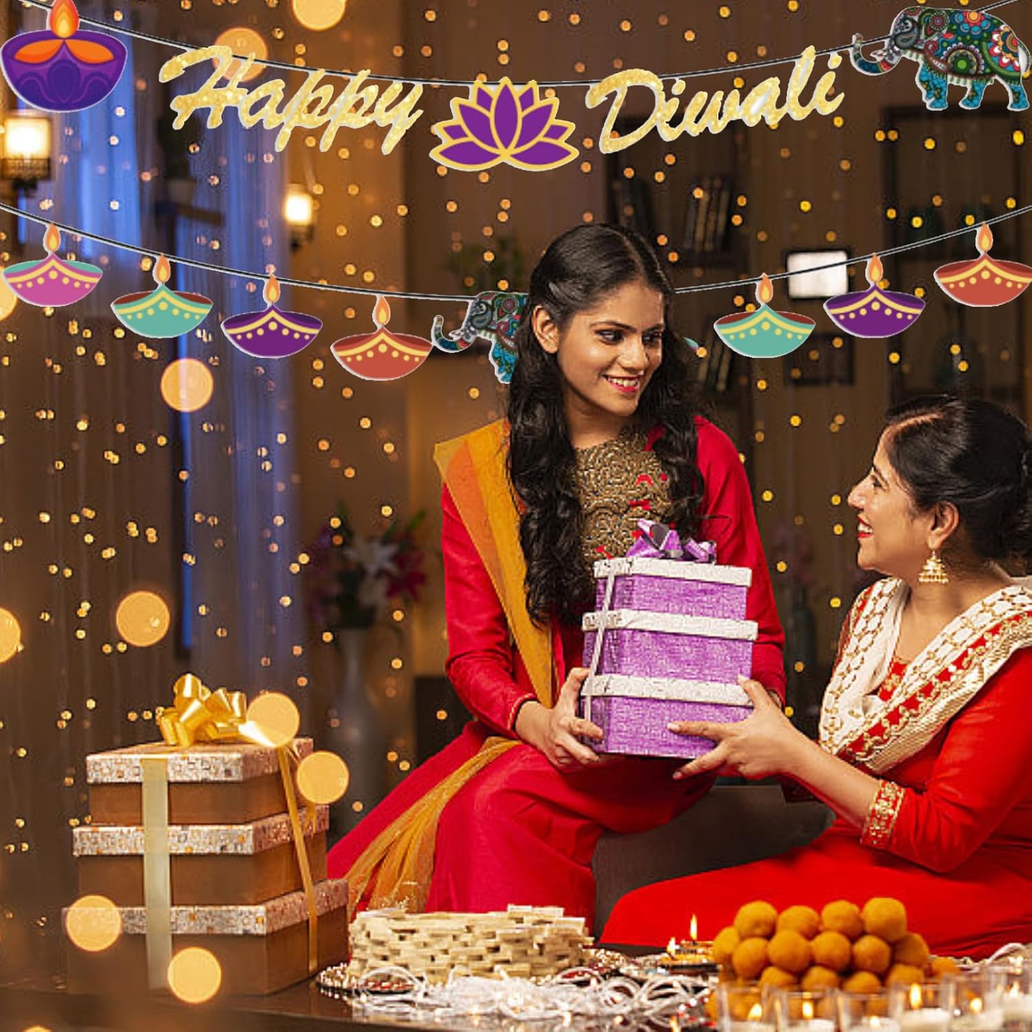 Decorazioni Diwali per la casa Pacchetto - Include 1 striscione felice diwali, decorazioni diwali, che sono adatte per l'uso sulle feste di decorazioni Diwail, creando istantaneamente un'atmosfera calda e piacevole. Happy Diwali Banner - Festeggia il Festival delle Luci con il nostro Happy Diwali Banner, caratterizzato da uno splendido design dorato completato da un motivo colorato di candela elefante per le tue decorazioni Diwali per la casa. Materiale banner Diwali: gli striscioni da appendere per Festival of Diwali Lights sono realizzati in carta di cartone, realizzati in cartoncino di alta qualità con stampa fronte/retro ad alta definizione, robusti e durevoli e non facili da rompere. Ghirlanda di bandierine Diwali: goditi una facile decorazione con il nostro striscione Happy Diwali senza assemblaggio, che ti consente di migliorare facilmente la tua celebrazione senza problemi. Ampiamente usato: perfetto per qualsiasi incontro Diwali, questa bandierina aggiunge un tocco di eleganza e gioia. Che tu stia decorando una casa, un ufficio o uno spazio comunitario, questo set può essere appeso senza sforzo a pareti, soffitti, porte o finestre, trasformando qualsiasi ambiente in una festa festiva del Diwali.