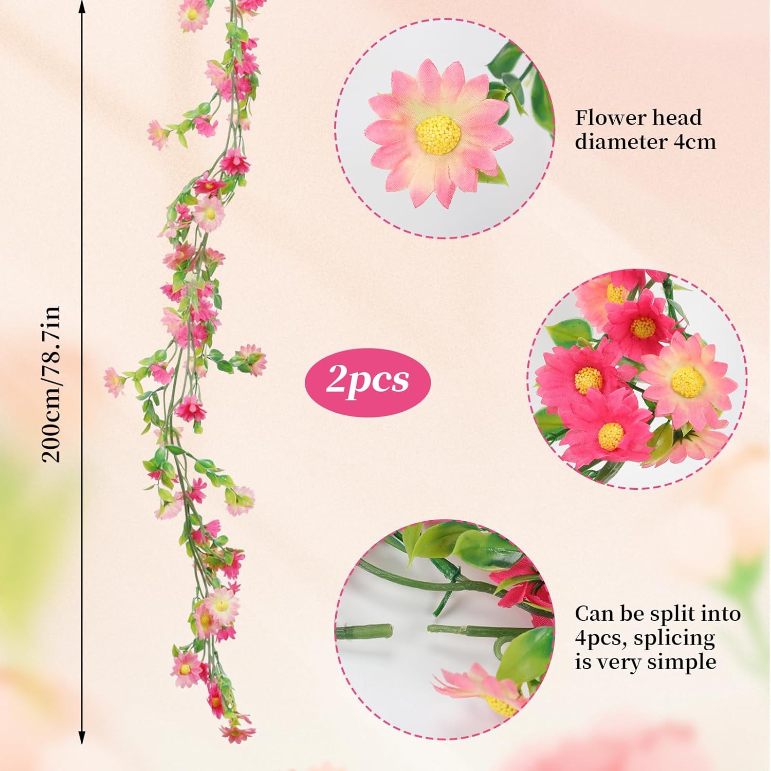 【Imballaggio e dimensioni】: il set di margherite decorative contiene 2 pezzi, ogni ramo è lungo 2,1 metri, il diametro del fiore è di circa 4 cm, ogni ramo contiene 88 margherite e alcune foglie verdi, l'aspetto è molto realistico e adatto per la decorazione Materiale sicuro: i fiori artificiali realizzati con foglie di seta morbide e steli di plastica flessibili sembrano naturali, belli e attraenti. Gli steli sono facili da piegare e accorciare alla lunghezza desiderata per una facile installazione. 【Facile da installare】: i fiori artificiali sono facili da installare, rimuovere, piegare e appendere. Queste ghirlande possono essere avvolte intorno a pareti, recinzioni, altalene, scale, ringhiere, porte e ovunque tu voglia appenderle. 【Margherita artificiale】: i fiori artificiali sono come quelli veri, con colori brillanti e vivaci e pregevole fattura, molto belli, eleganti e variegati, molto adatti per decorazioni festive, decorazioni per la casa, decorazioni da tavolo, decorazioni per feste o decorazioni esterne. 【Scene multiple】: i fiori decorativi artificiali possono essere utilizzati per avvolgere colonne, porte, espositori, finestre, ringhiere, ecc. Per ricordare alle persone l'arrivo della primavera. Adatto per interni, esterni, giardino, festival, compleanni, hotel, feste, ristoranti, uffici e molte altre occasioni.