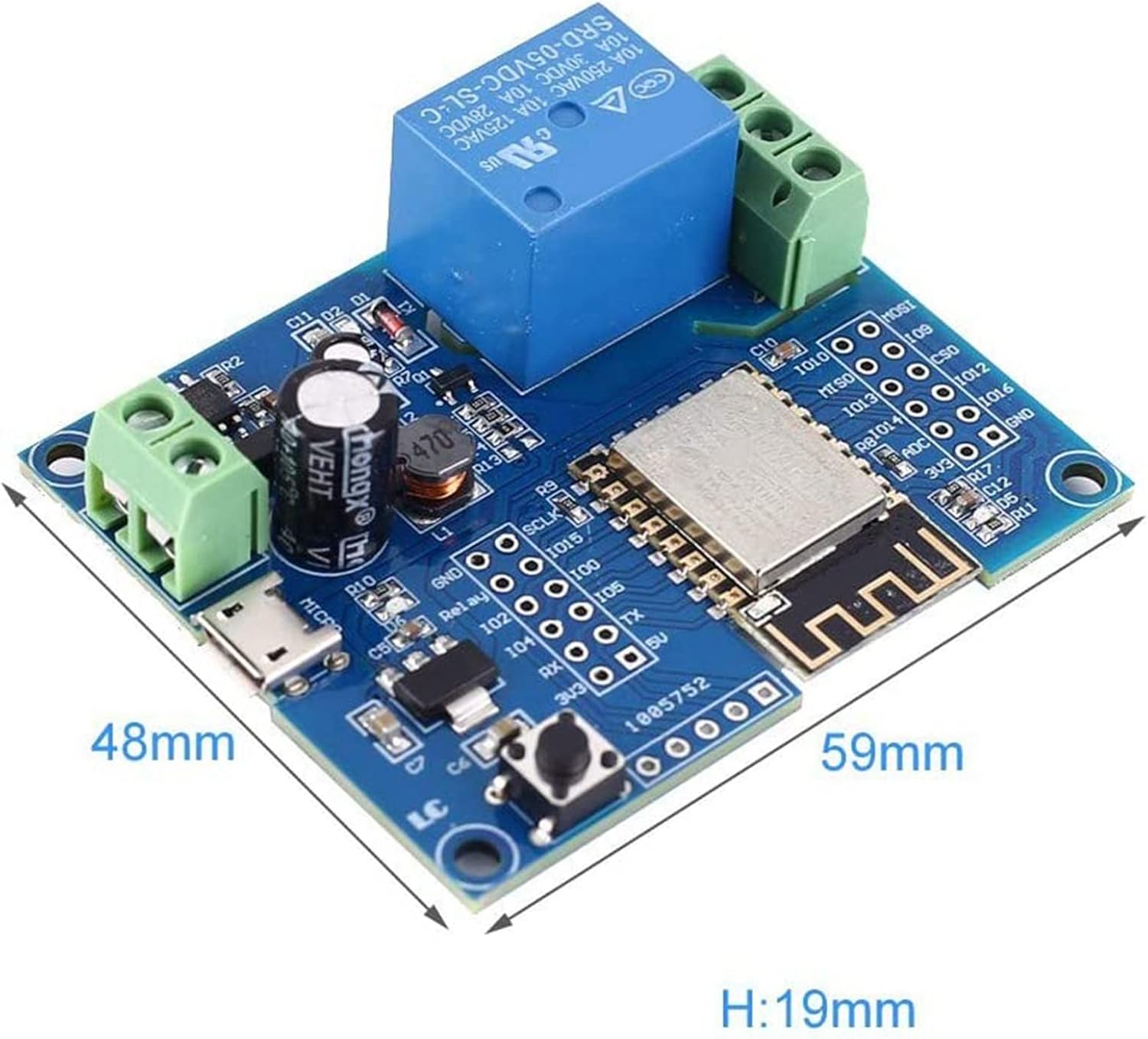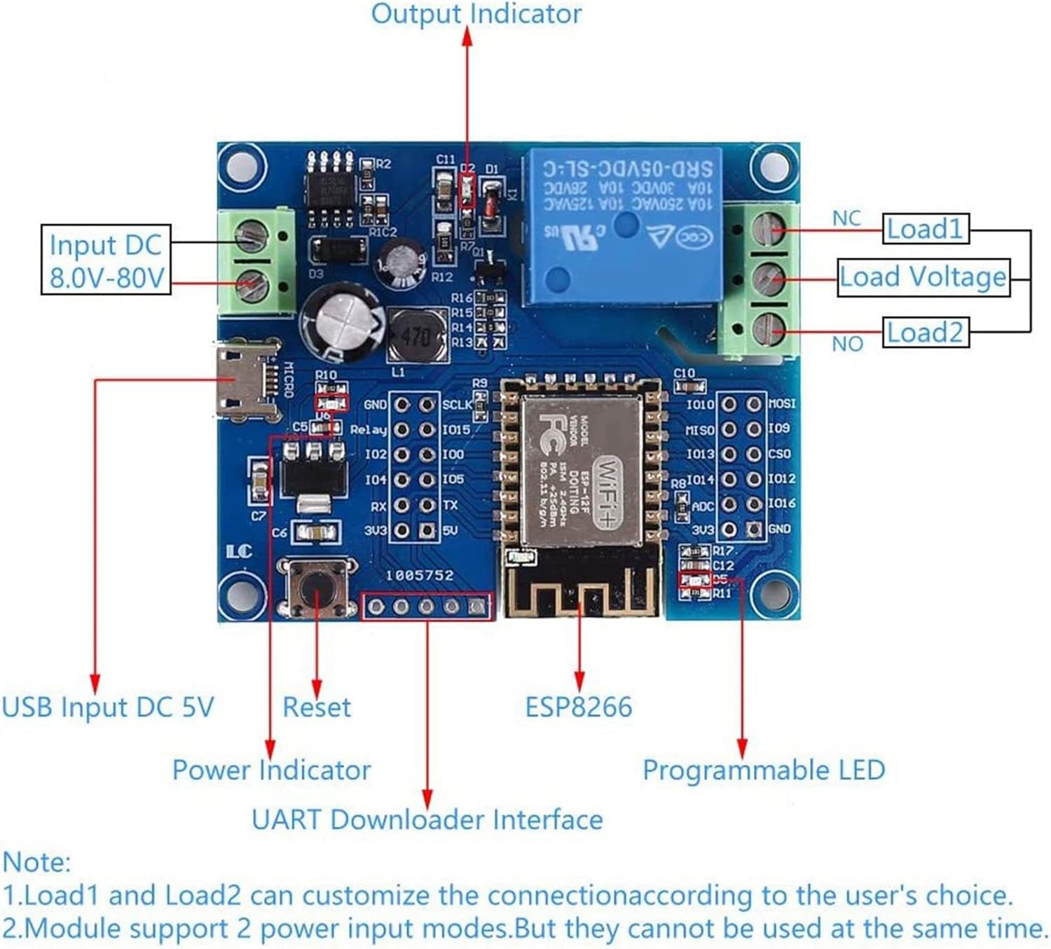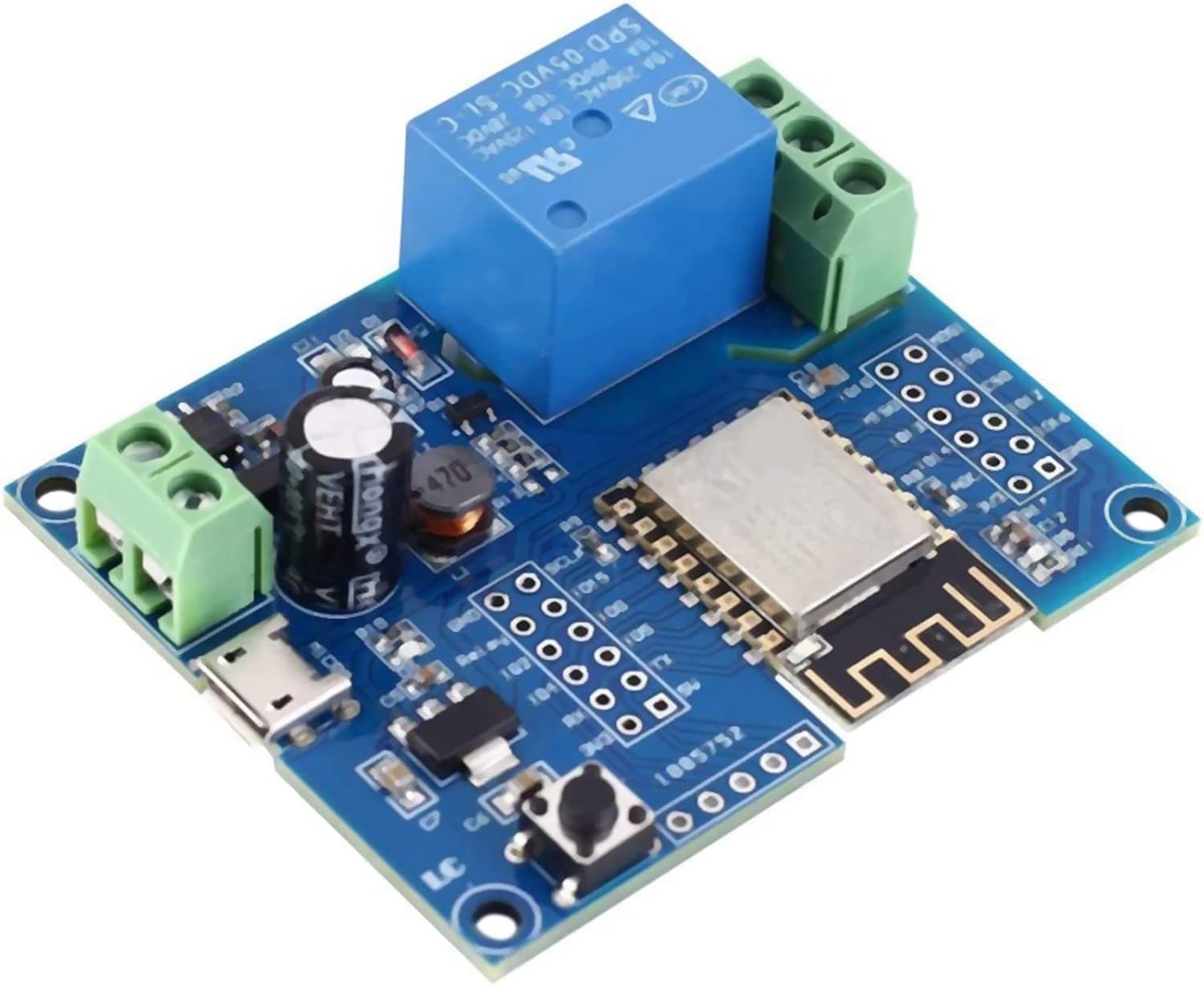 LC-Relay-ESP12-1R-D8 Scheda di sviluppo relè usa e getta con modulo WLAN ESP-12F connettore E/A completamente estratto, supporta DC8-80V / USB 5V e altri metodi di alimentazione. Specificare il codice di riferimento per l' di sviluppo appropriato per l'apprendimento dello sviluppo ESP8266 secondario, il controllo wireless delle case intelligenti e altre occasioni. Modulo WiFi ESP-12F avanzato e , 4M Byte Flash ad alta capacità. Prenota GPIO per ESP-12F. Riservare l'interfaccia di aggiornamento del firmware UART. - Pulsante di ripristino del modulo WiFi integrato. Onboard 1 canale 5 V relè.