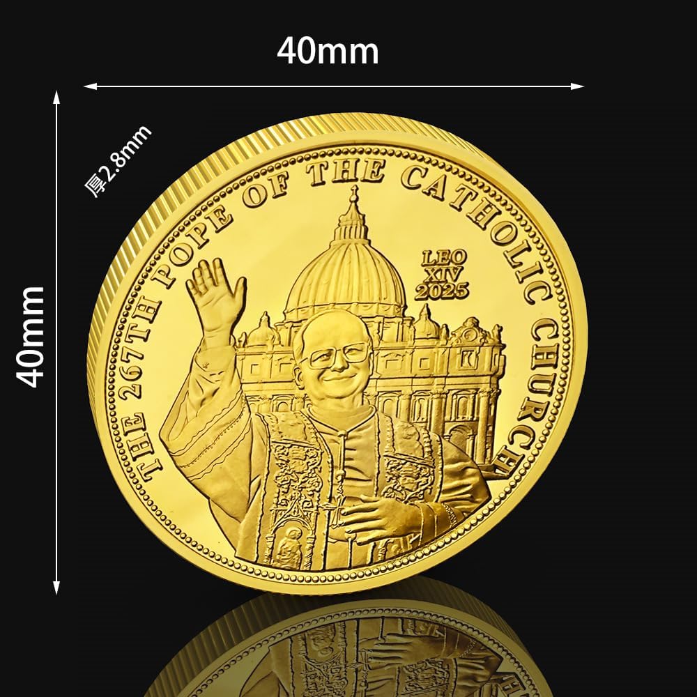 Altezza circa: 40 x 3 mm Materiale: metallo placcato oro Peso: circa 30 g ciascuno Regalo per i cattolici Confezione: 2 monete imballate con capsula premium e sacchetto del opp