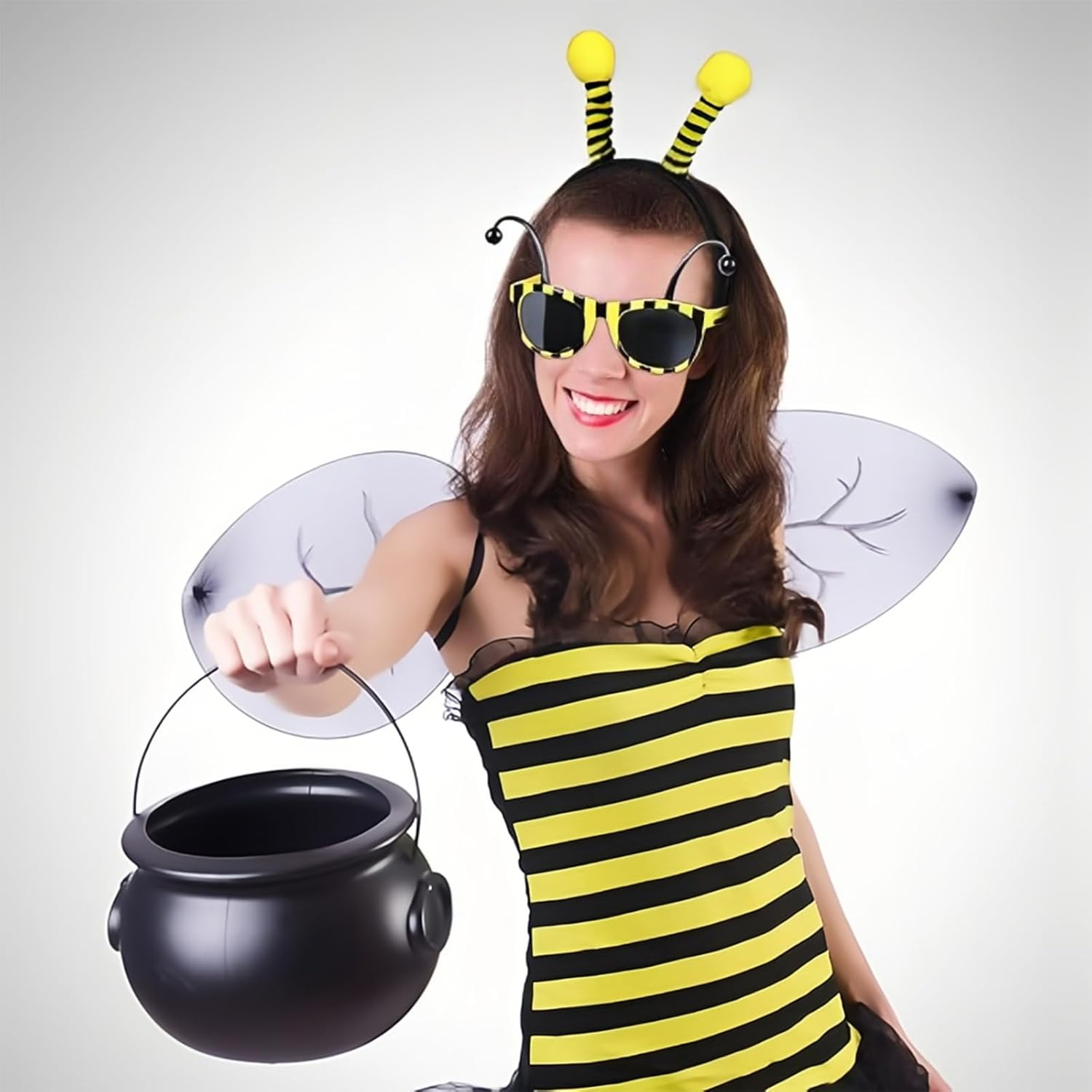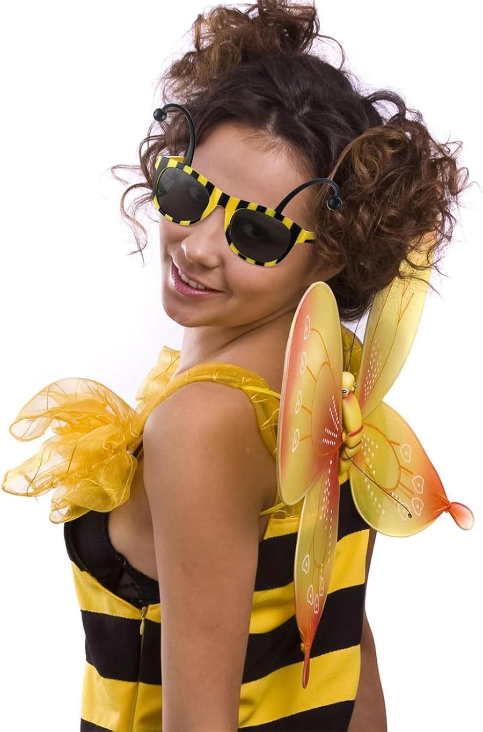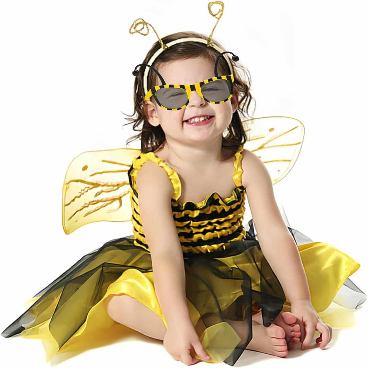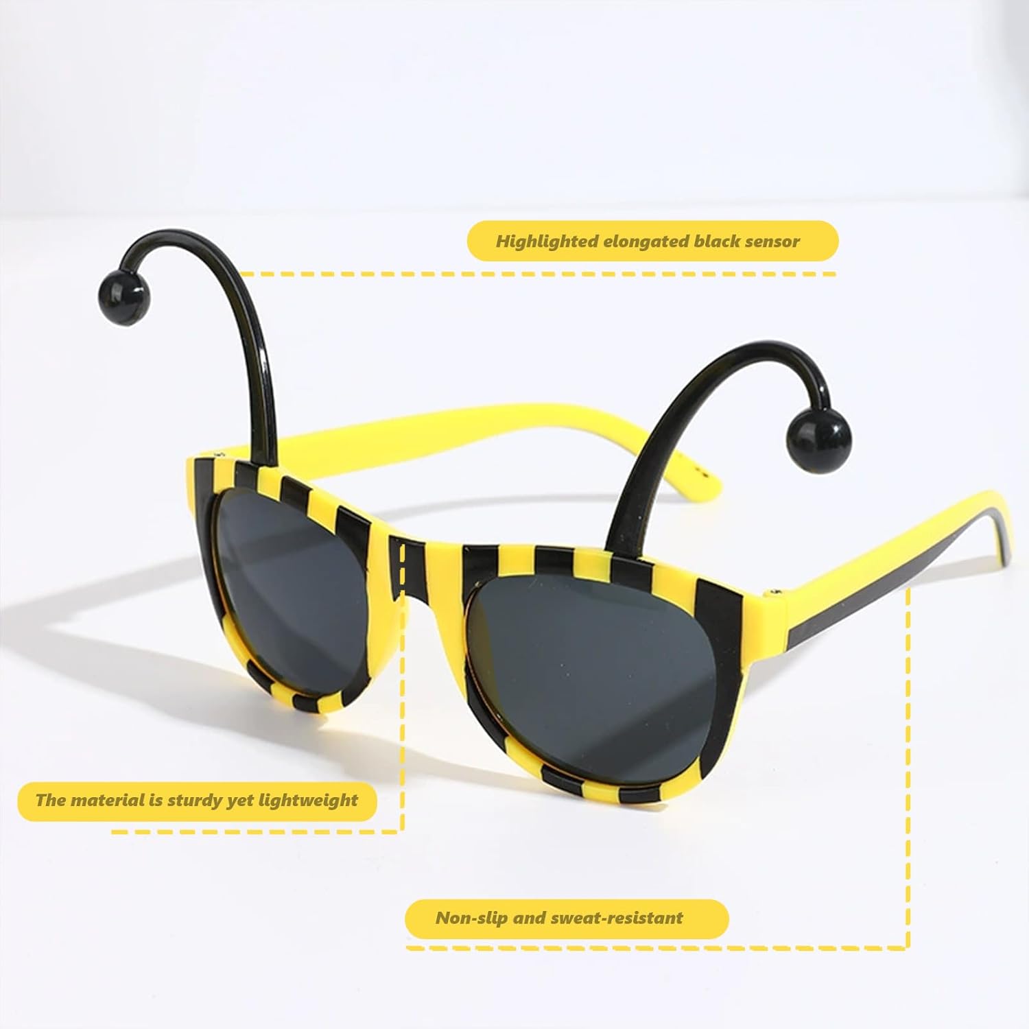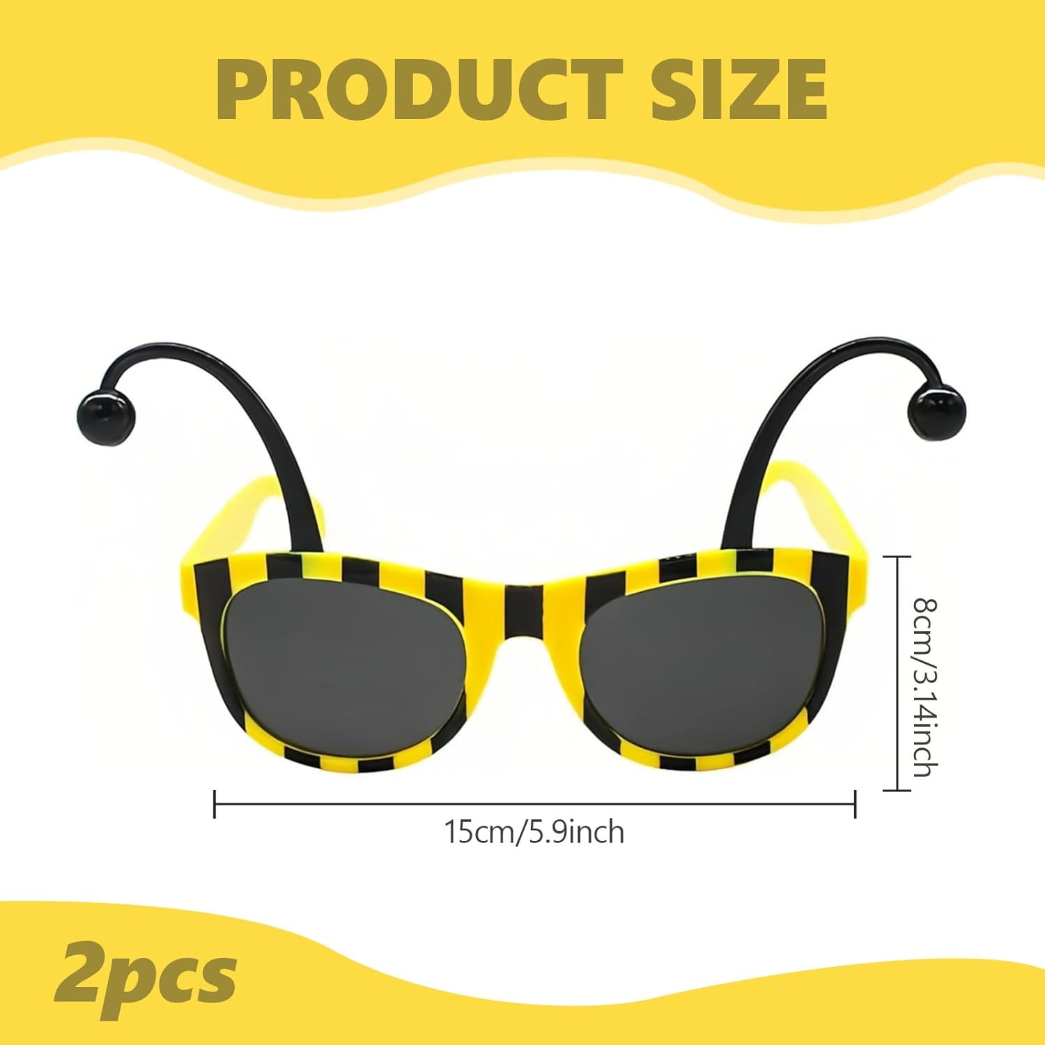 Descrizione prodotto 【Specifica】 Materiale: Plastica Colore: Nero Giallo La confezione include: 2 × occhiali da sole a forma di calabrone Avviso di sicurezza No