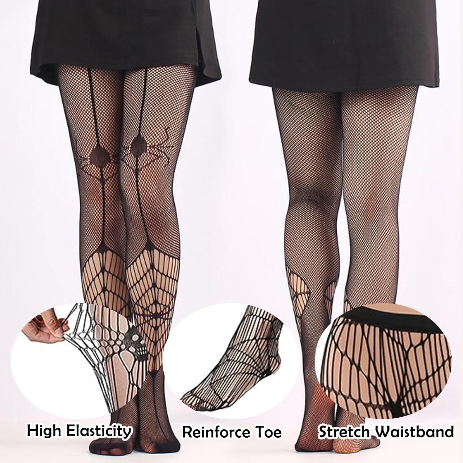 Accessori per indossare eleganti costumi di Halloween: questo set contiene un totale di 2 paia di collant per Halloween (testa morta, ragno). Una quantità sufficiente e stili diversi possono soddisfare le tue esigenze di abbigliamento e personalizzazione ed esprimere il tuo gusto in modo creativo. Materiale di alta qualità: questi collant a rete da pesca sono realizzati in nylon di alta qualità ed elastan con buona elasticità. Sono comodi da indossare, durevoli e resistenti agli strappi. Sono facili da lavare e si asciugano rapidamente. Il comodo design con elementi di Halloween è adatto per abbigliamento da donna, cosplay da donna e abiti da festa. Massimo comfort: questi collant tattoo sono morbidi e comodi da indossare. Grazie alla vestibilità elasticizzata, si adattano perfettamente e offrono una sensazione più confortevole rispetto a prima. Il materiale elastico si adatta alla maggior parte delle persone. Nota: si consiglia di lavare a mano e asciugare all'aria per evitare graffi. collant a rete neri non candeggiare o stirare. Facile da indossare in ogni occasione: abbinate questi collant a rete per dare un bel stile al vostro outfit. Da indossare con jeans per un look casual da giorno o con un abito da sera per un look da sera elegante. Questi collant a ragnatela sono un'ottima scelta per mettere in risalto il tuo fascino e creare un look dolce. Regalo pratico: questi collant spider possono essere regalati a tua madre, sorella, moglie, fidanzata o altri amici per Halloween, compleanni, anniversari o altre occasioni importanti. Sarai sorpreso e soddisfatto. Puoi anche indossare i collant per Halloween singolarmente per mostrare più intimità.