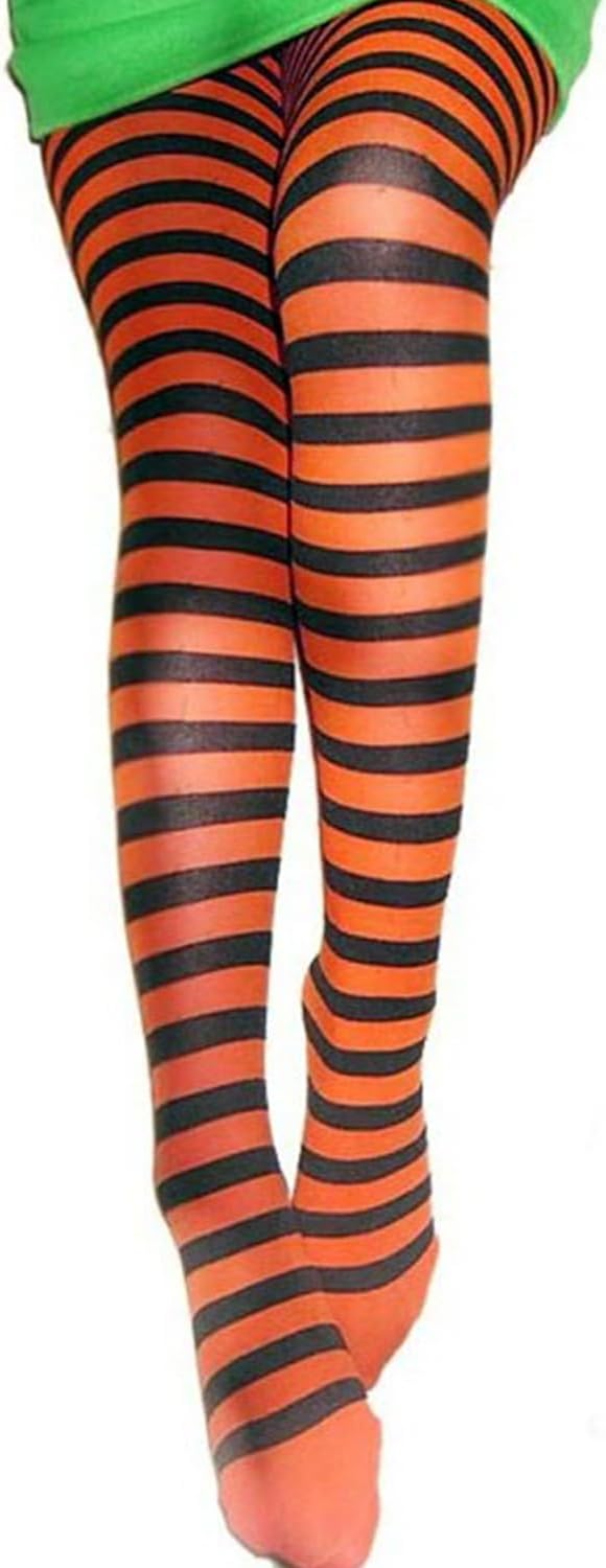 Caratteristiche: - Ha un'eccellente elasticità, che può adattarsi a una varietà di figure, ed è senza stress da indossare, che non causerà un senso di moderazione e ti farà camminare più liberamente. - Ha un'elevata resistenza e consistenza leggera, non si danneggia facilmente quando viene tirata, si adatta meglio alla pelle. - Le strisce sulla superficie di questo collant si estendono fino ai piedi, in modo che possa adattarsi meglio a tutti i tipi di scarpe. La distribuzione della trama sulla superficie è uniforme e simmetrica, che ha un migliore effetto decorativo. Specifiche: Materiale: filato di poliestere Dimensioni: taglia unica Colore: arancione e nero Confezione: 2 collant a strisce per Halloween