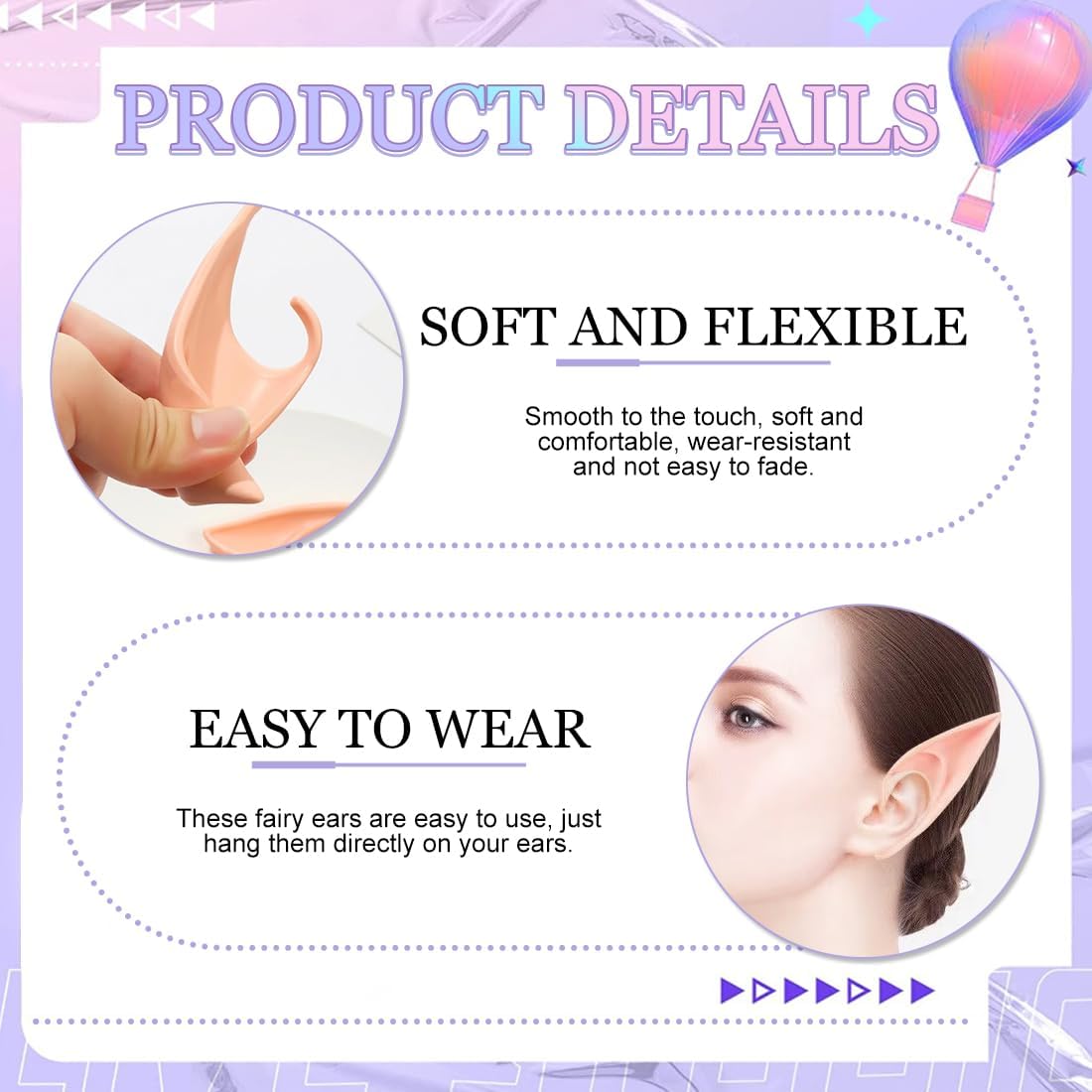 La confezione include: 2 paia Elfo Orecchie, 12 cm Materiale: Queste orecchie da elfo sono realizzate in lattice di alta qualità, resistenti e riutilizzabili, possono essere piegate, impastate, lavate Facile da indossare: queste orecchie da fata facili da usare, basta appenderle direttamente all'orecchio, che si adatta bene alla maggior parte delle orecchie; Se ritieni che siano un po' allentati, applica semplicemente del nastro biadesivo o del nastro adesivo per ciglia dietro l'orecchio per renderlo più solido Misura universale per tutti: le nostre orecchie da elfo si adattano alla maggior parte delle orecchie e sono perfette per cosplay, feste di Halloween, feste in costume, rave, giri video e altro ancora Servizio di qualità: se hai domande, non esitare a contattarci, risolveremo il problema per te entro 24 ore