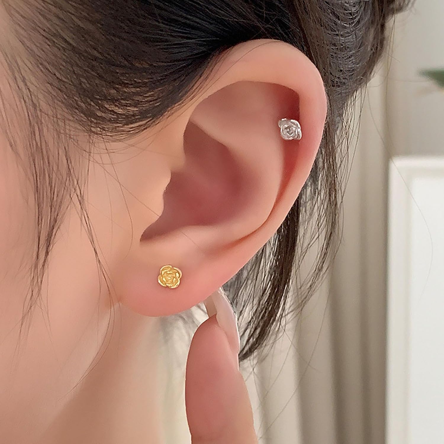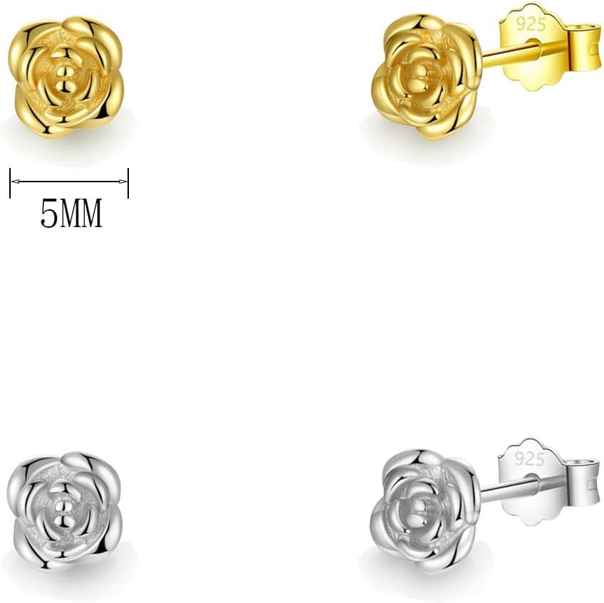 2 Paia Orecchini Fiore Argento 925 per Donna Bambina Ragazza Orecchino a Bottone Argento Orecchino a Fiore Oro Orecchini da Donna Lobo Piccoli Cartilagine Anallergici