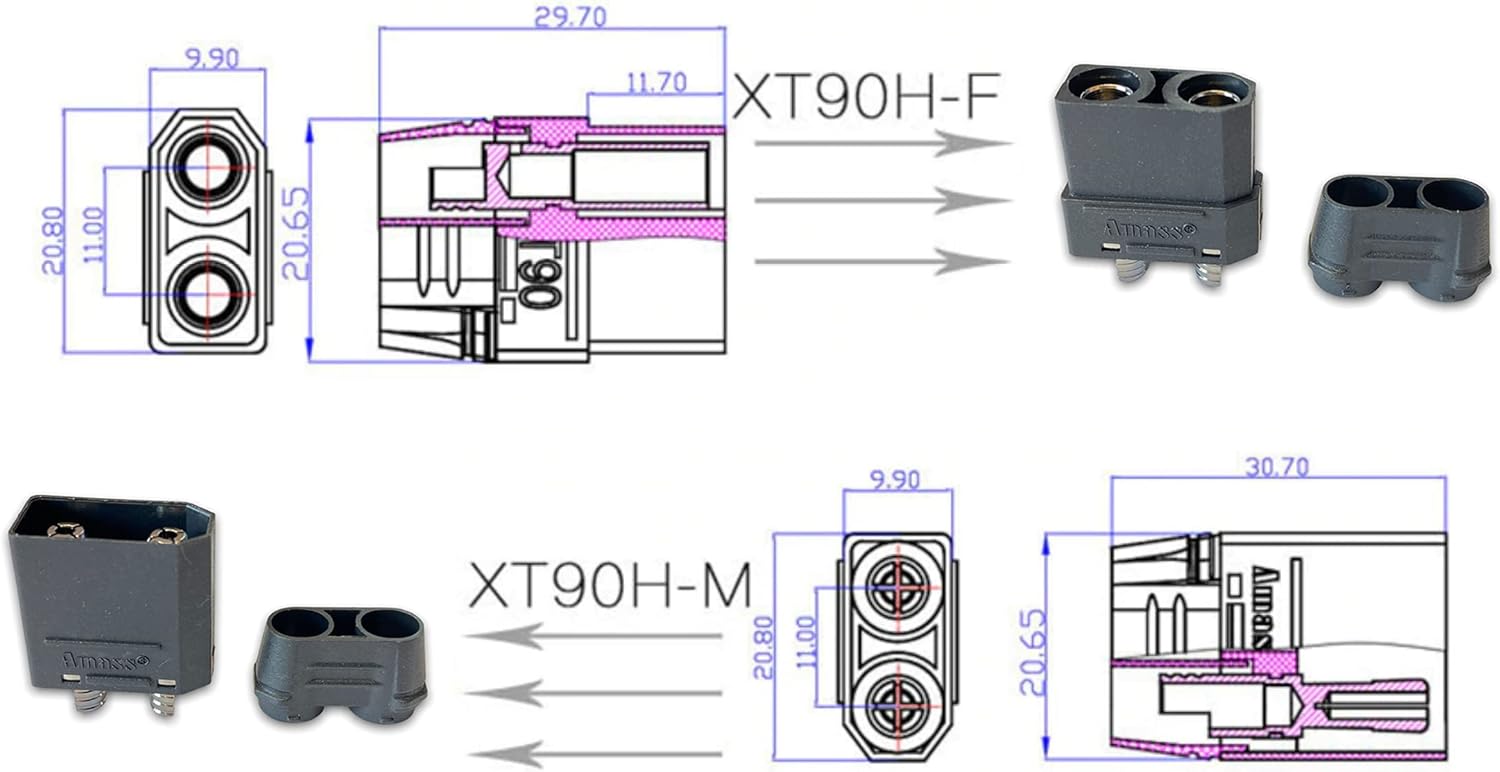 XT90H - Coppia di connettori dorati e femmine, con tappi di protezione Amass XT90H - Connettore dorato ad alta corrente originale, colore: nero, fisso, per una connessione sicura e superficie di contatto Spedizione rapida in tutta Europa – Fattura IVA inclusa. Qualità premium: i nostri articoli sono realizzati appositamente per noi e soddisfano i più alti standard di qualità GARANZIA COMPLETA - Siamo completamente dietro i nostri prodotti!