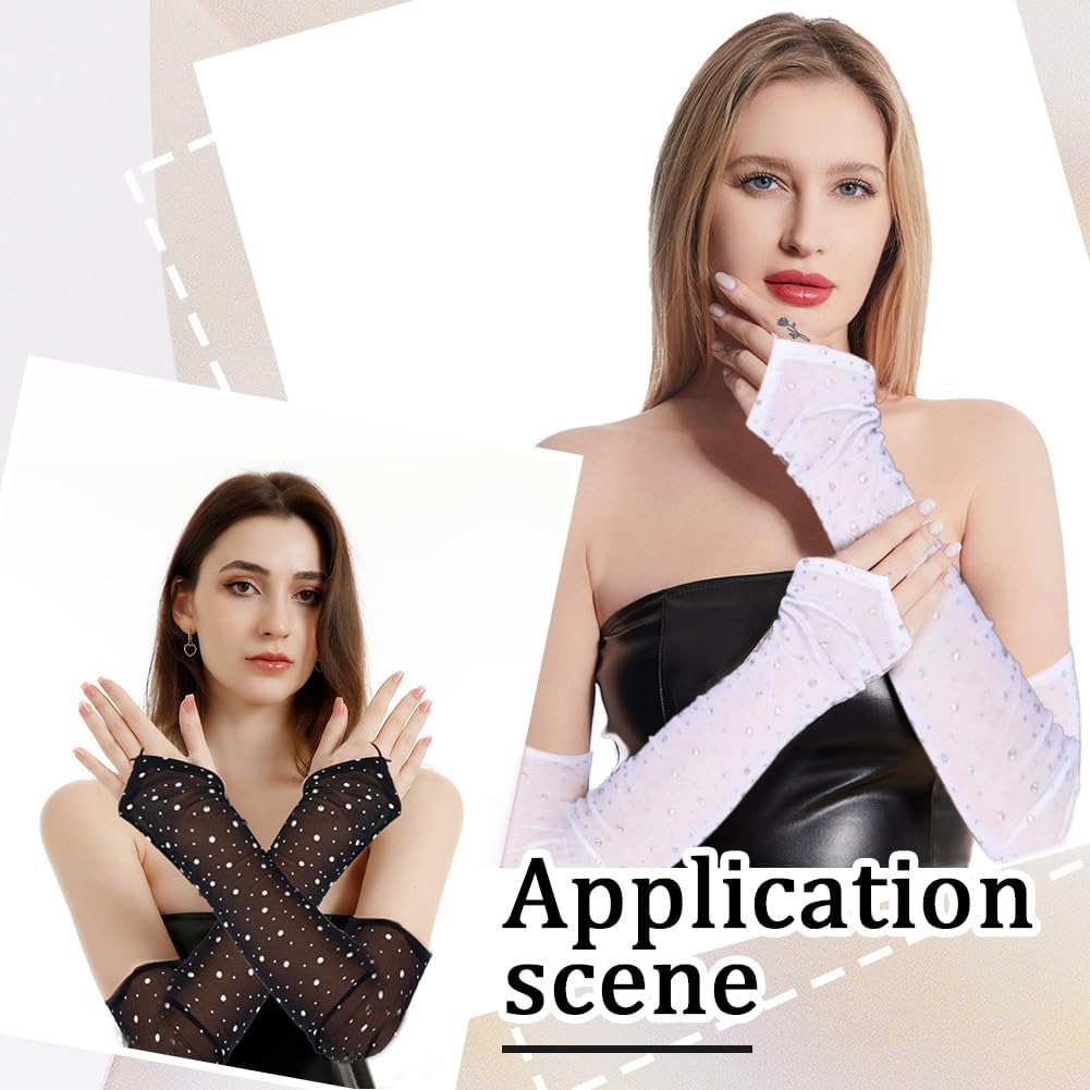 Guanti bianchi lunghi fino al gomito senza dita:copertura a manica lunga senza dita con strass sulla parte superiore, l'abbinamento semplice dei colori e il design scintillante ti renderanno molto attraente Guanti elastici senza dita:i guanti lunghi senza dita sono disponibili in due colori classici, in bianco e nero. Puoi scegliere il colore appropriato in base al tono del tuo abbigliamento Taglia:Ci sono 2 paio di guanti senza dita a maniche lunghe in 2 colori in totale. Guanti senza dita a manica lunga:lunghi circa 520mm (20.47 pollici), 111mm (4.37 pollici) di larghezza, 2.5mm (0.1 pollici) di spessore Alta qualità:i guanti senza dita neri e bianchi sono realizzati in fibra di poliestere, di alta qualità, traspirante, morbido, ed elastico Ampia applicazione:i guanti senza dita possono essere utilizzati per i matrimoni, parti, e tea party, musica lirica, spettacolo e altre occasioni. I guanti senza dita possono essere utilizzati anche come accessorio quotidiano e regalati alla famiglia, amici o colleghi