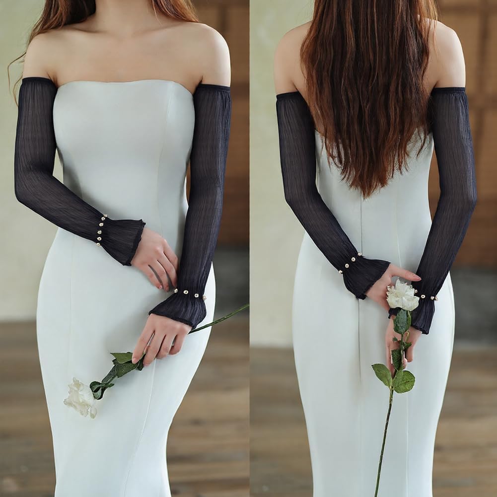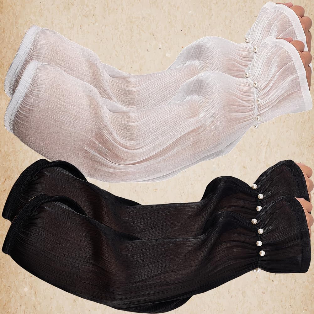 Maniche da sposa trasparenti:queste maniche in pizzo bianco trasparente sono caratterizzate da una delicata rete di pizzo, dettagli arricciati, e un orlo arricciato per un look elegante ma funzionale. Le perle di plastica aggiungono un tocco di eleganza, rendendoli perfetti sia per la protezione solare che per la moda 2 paio di maniche in pizzo bianco trasparente:ci sono 2 paia di maniche da sposa trasparenti in diversi colori, offrendo opzioni di stile versatili per abbinarsi a diversi outfit, garantendo al contempo protezione solare e traspirabilità Dimensioni:Guanti da sposa trasparenti senza dita:ogni manica da sposa è trasparente, larga circa 145mm (5.71 pollici), 475mm (18.7 pollici) di lunghezza, 9mm (0.35 pollici) di spessore, 2 colori, 1 paio/colore, 2 paio Materiale di alta qualità:realizzato in materiale leggero, garza di poliestere traspirante e rete trasparente, questi guanti da sposa trasparenti senza dita assicurano comfort, flusso d'aria, e protezione solare, ideale per un uso prolungato all'aperto Ampio utilizzo:perfetto per gli sport all'aria aperta, gite estive, costumi fairycore, o usura quotidiana, queste maniche in pizzo trasparente sono anche ottimi accessori per i festival, halloween, e feste a tema