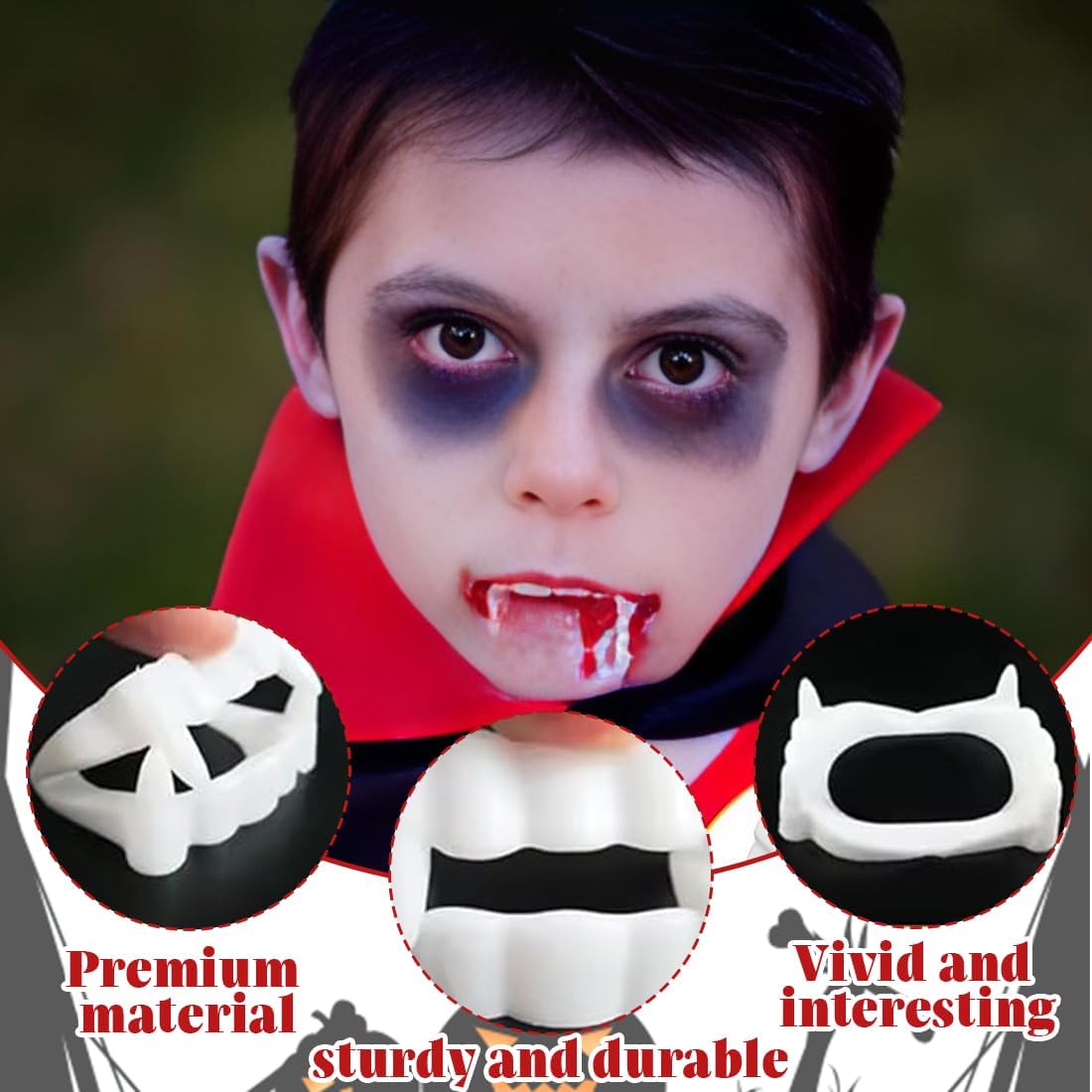 Stabile e durevole: bambini dentiere vampiro fatto in materiali di alta qualità, non tossico, durevole, robusto, non facile da rompere e può essere utilizzato con fiducia, la dentiera può essere facilmente rimosso su o fuori dentiere del vostro bambino, in modo da sentirsi liberi di usarli in qualsiasi celebrazione. Riutilizzabile: la dentatura può essere pulita e conservata in modo sicuro per essere utilizzata in diversi eventi o per diversi anni. Design Modernizzato: abbiamo adattato la struttura dei denti da vampiro per bambini della parte storta della punta per formare una grande forma a U, in modo che la forza sia uniforme e la punta storta non sia facile da danneggiare. così niente ostacola il prossimo dracula. Facile da utilizzare: facile da applicare sui propri denti senza l'uso di colla o altri dispositivi di fissaggio. Bomboniere: i denti da vampiro al neon di Halloween sono perfetti per tutti i regali di Halloween, soprattutto per Halloween. perfetti per i premi delle feste di Halloween e per i regali delle vacanze, i denti di Halloween possono essere travestiti da dracula e usati per spaventare i vostri amici.