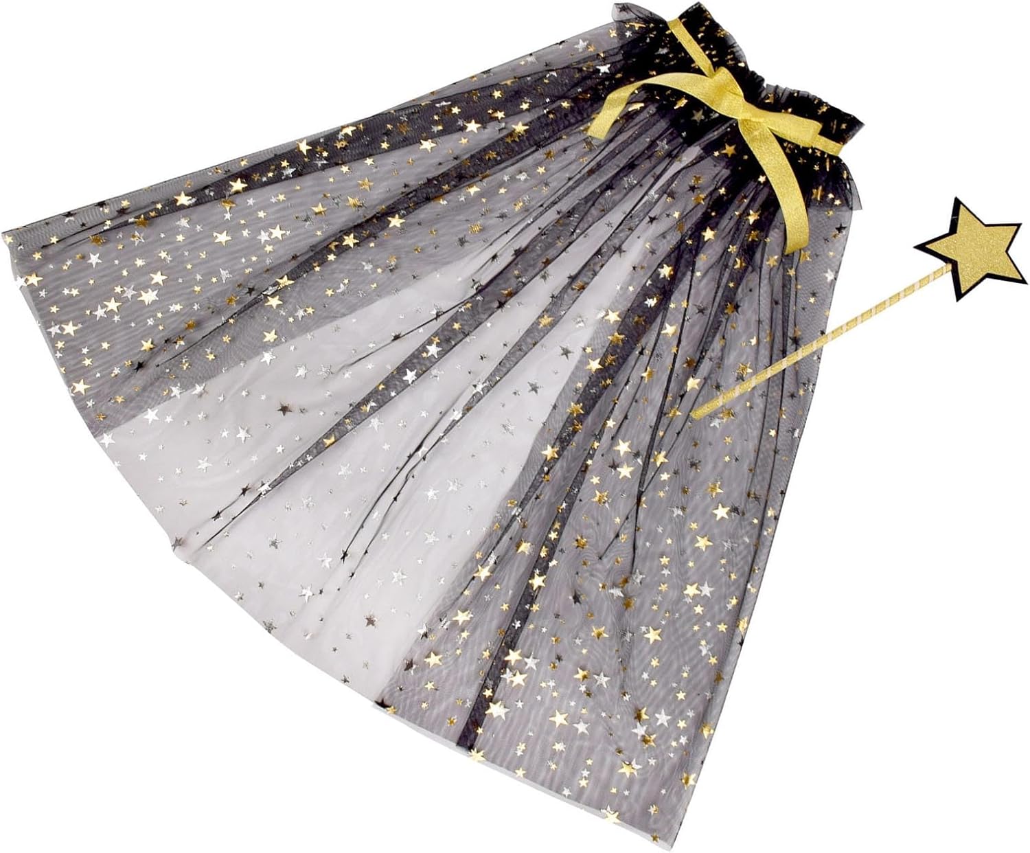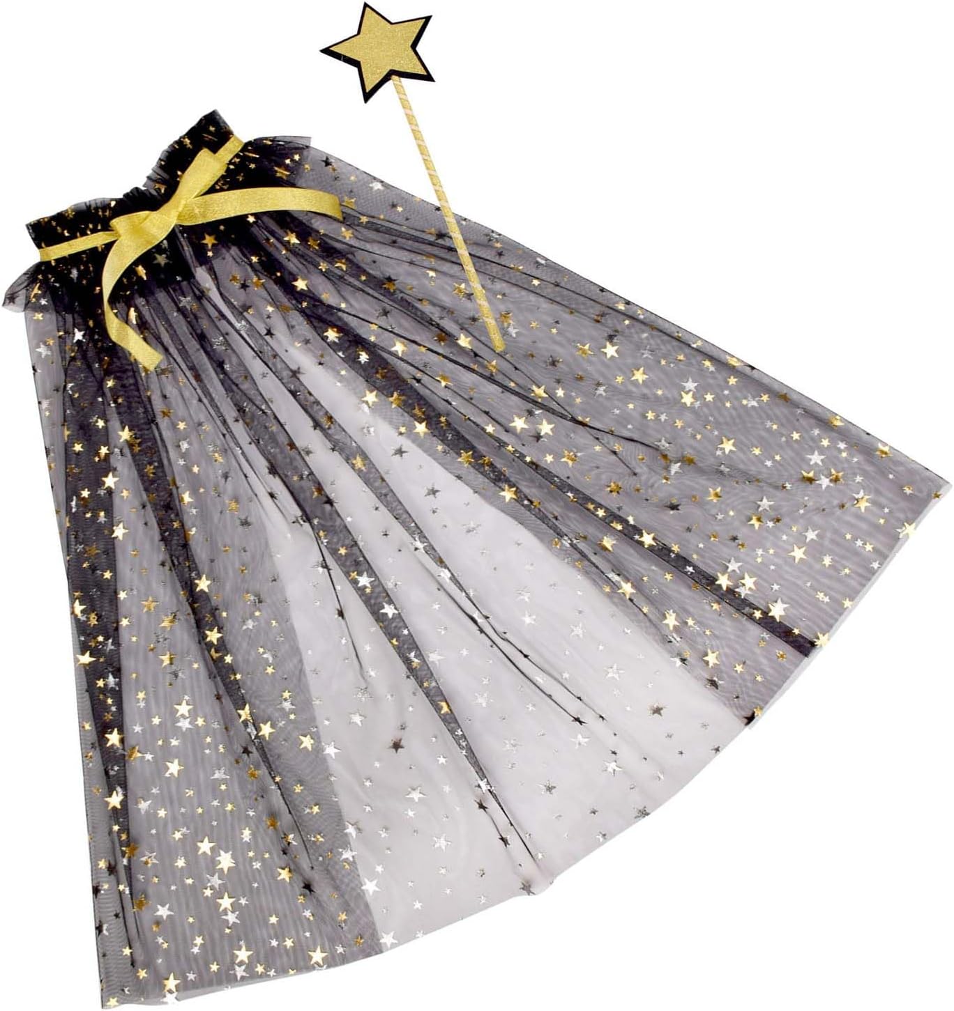 Progettato per i bambini, rendendo ottimo per le sognanti e aspiranti Ottimo per feste compleanno, cosplay, spettacoli teatrali o servizi fotografici, questo set costumi promette creare ricordi indimenticabili e momento affascinante Dai dono magico con questo set bacchette e mantello, un accessorio must per la collezione fantasy qualsiasi bambino, assicurando che distinguano in folla in qualsiasi occasione del festival Craft dal tulle leggero e morbido, mantello è adornato con stella, mentre la scollatura regolabile garantisce vestibilità comoda 2 Set Girls Magical Star Wand e un Cape Tulle, perfetto per accendere l'immaginazione