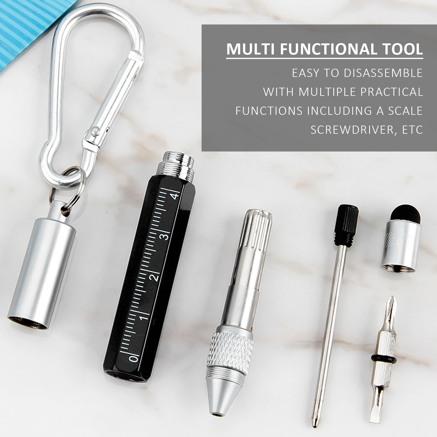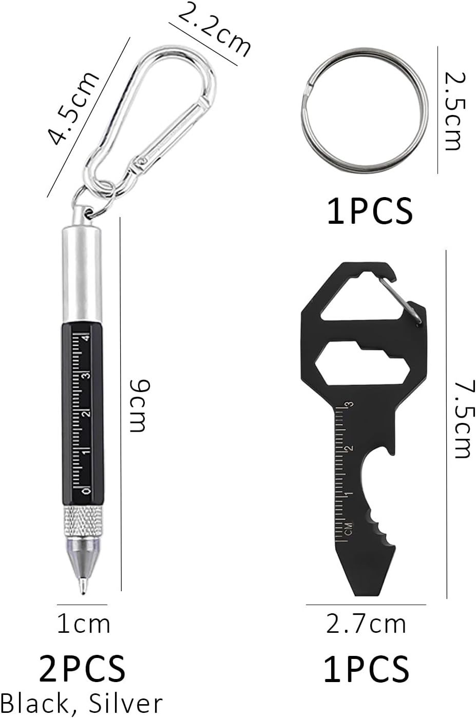 【Contenuto del prodotto】 Riceverai 2 penne per utensili nei colori nero e argento con una dimensione di 10 * 148 mm e 1 pezzo di portachiavi mini chiave nera con una dimensione di 27 * 74 mm. 【Materiale del prodotto】 La penna portautensili e il portachiavi con chiave inglese sono realizzati in metallo, resistente e durevole e in grado di resistere a un uso frequente, garantendone l'uso a lungo termine in vari ambienti. 【Design Multifunzionale】La penna degli strumenti è dotata di molteplici funzioni pratiche, tra cui scala, cacciavite, ecc., offrendoti maggiore comodità. Il portachiavi con mini chiave inglese è progettato in modo intelligente e integra molteplici funzioni, rendendolo un potente assistente nella tua vita quotidiana. 【Portatile e facile da usare】 Leggero e portatile, sia la penna portautensili che il portachiavi mini chiave inglese sono dotati di anelli per appenderli, che ti consentono di appenderli al portachiavi, allo zaino o ad altri luoghi per utilizzarli sempre e ovunque senza occupare spazio aggiuntivo. 【Ampia applicazione】 Adatto a varie occasioni come attività all'aperto, viaggi, casa, ecc. Che tu sia in un'avventura all'aria aperta o effettui riparazioni quotidiane, è un gadget che soddisfa le tue esigenze e diventa un gadget indispensabile.