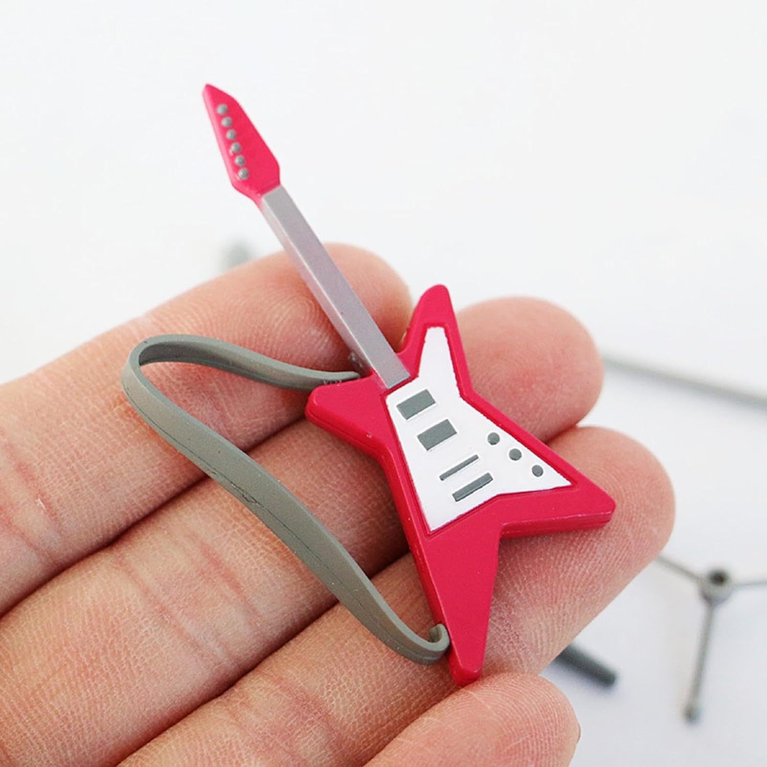 Regali: mobili per bambole, bel regalo di compleanno per bambini e ragazzi che amano giocare in casa delle bambole. 1:12 accessorio per casa delle bambole: mobili in miniatura per casa delle bambole in miniatura in scala 1:12 e decorazioni per negozi, paesaggio, accessori per casa delle bambole, mini decorazione desktop scena. Giocattoli prentend: modello di microfono per chitarra per casa delle bambole, puoi fingere di decorare la scena delle bambole. Decorazione per casa delle bambole: ottimo accessorio decorativo per la casa delle bambole, creando una scena di vita per la tua casa delle bambole. Materiale: microfono per chitarra della casa delle bambole realizzato in materiale PP, durevole.