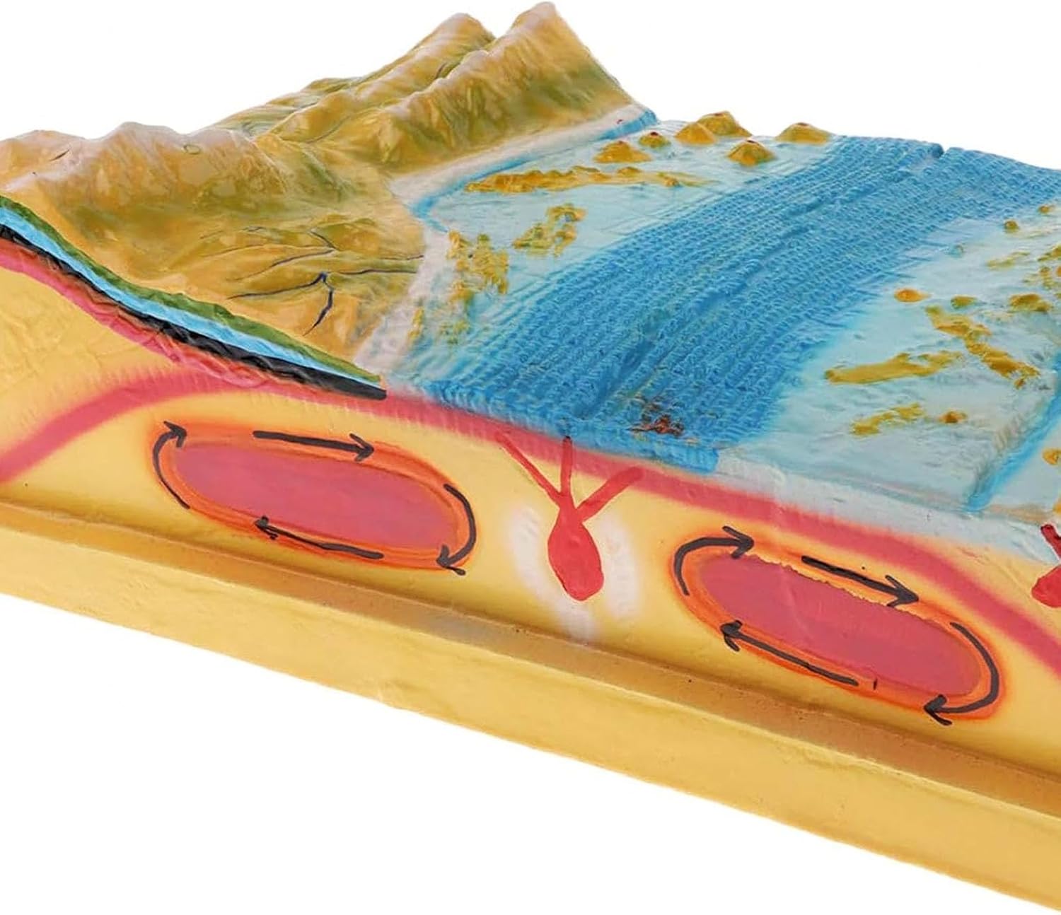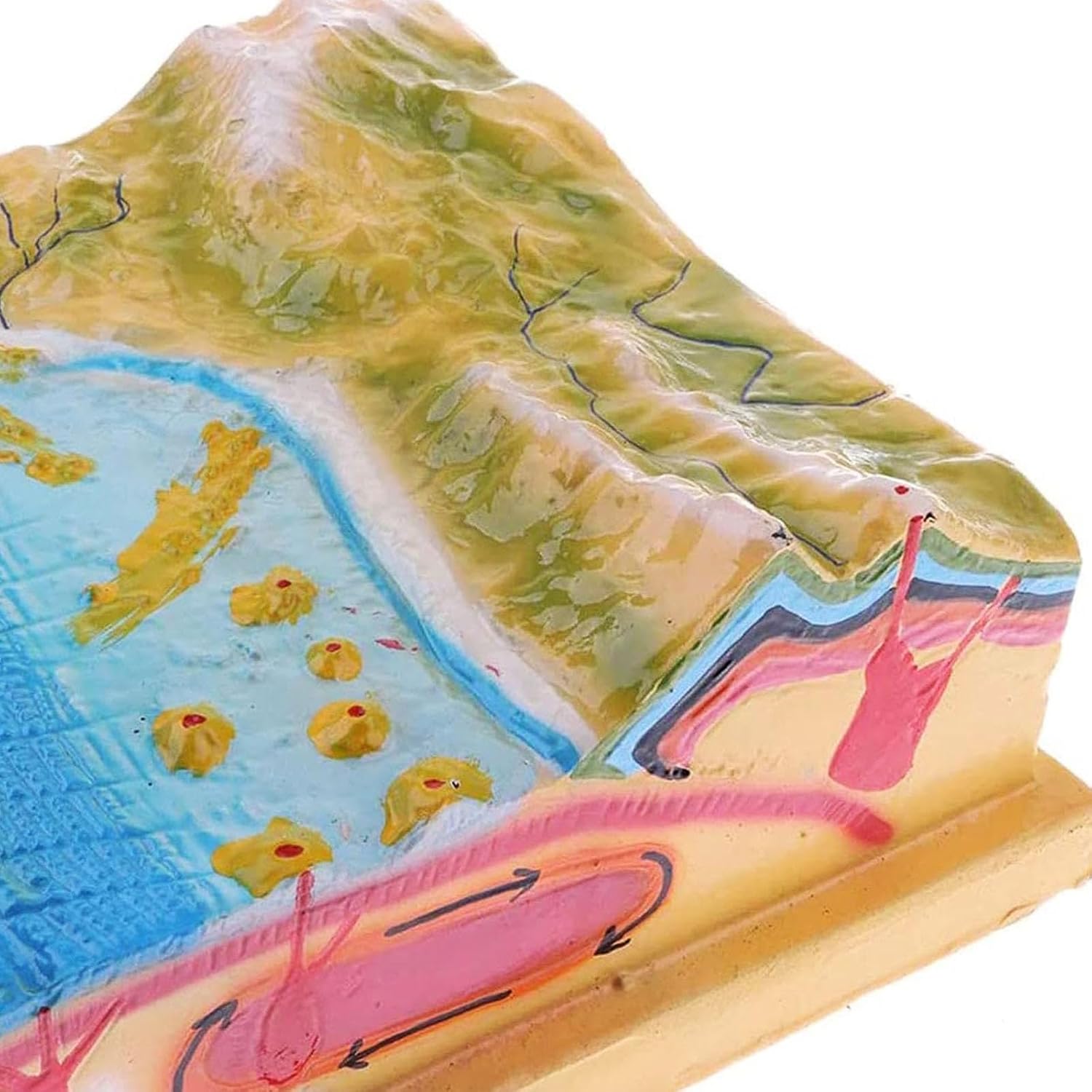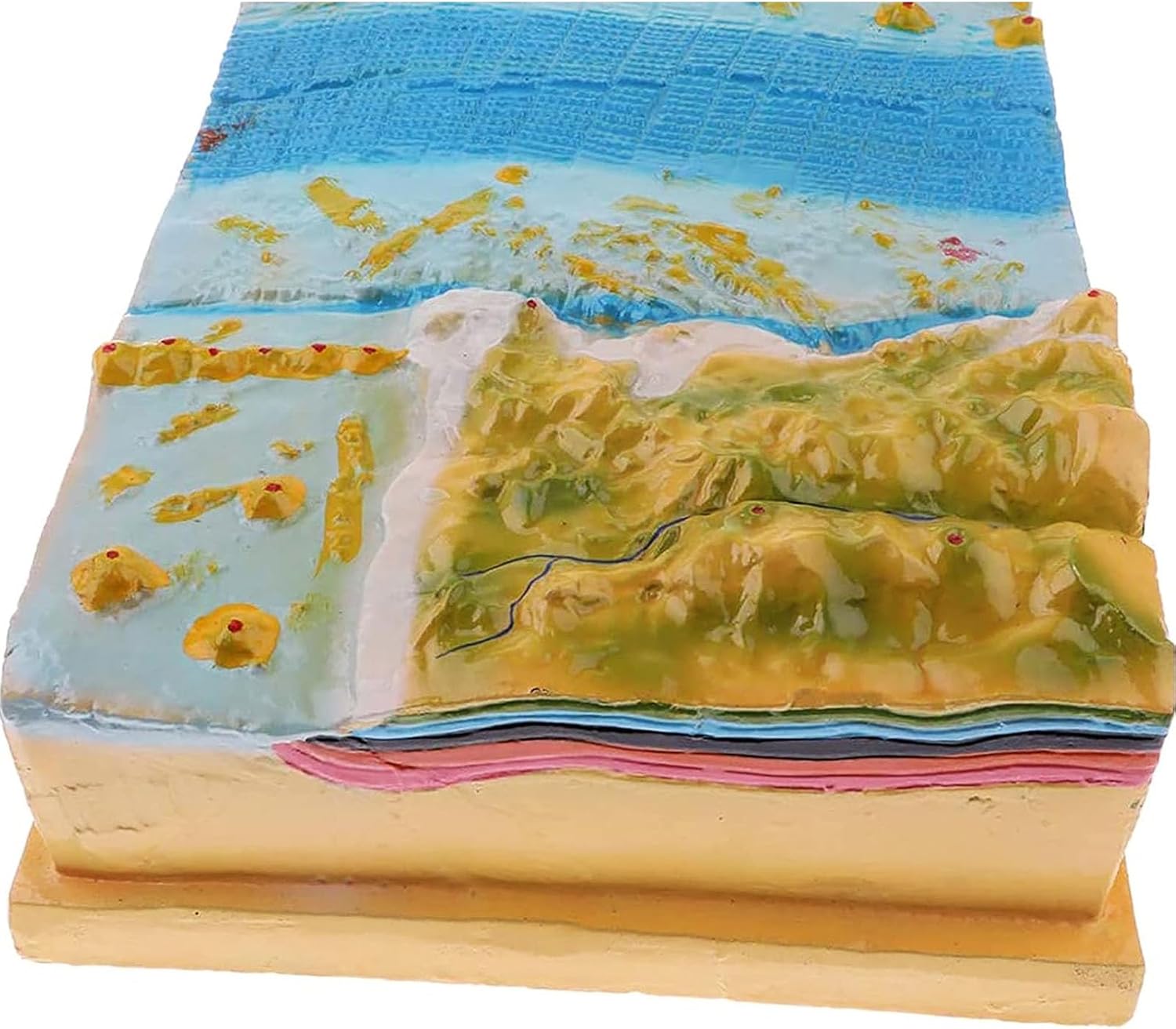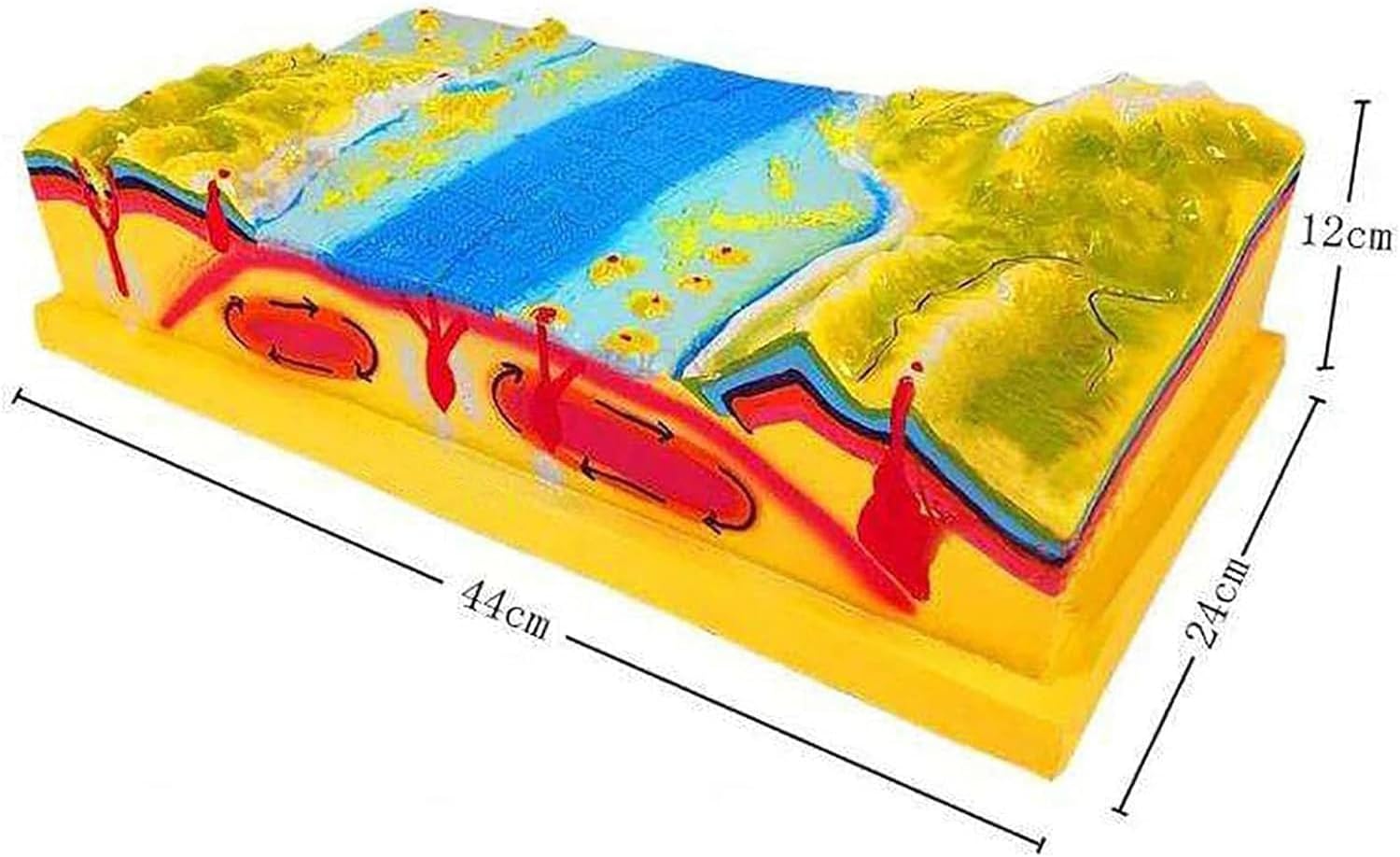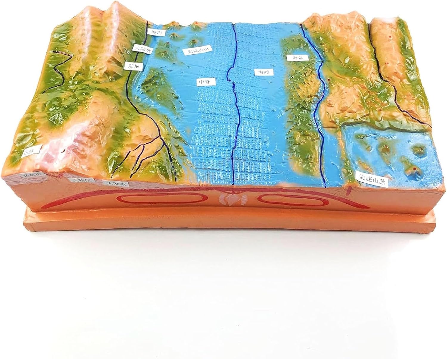 MODALITÀ DIMOSTRAZIONE GEOLOGICA: questo prodotto viene utilizzato per dimostrare e insegnare la formazione e la distribuzione della topografia del fondale marino, il cerchio interno della Terra, la struttura della crosta terrestre, i cambiamenti topografici, la tettonica a placche e i terremoti vulcanici. STRUTTURA: 45 cm di lunghezza, 22 cm di larghezza, 12 cm di altezza. MATERIALE: Il modello è realizzato in resina sintetica, che è leggera, resistente e indeformabile. Inclusi fondali marini, montagne e terra. MATERIALI DA LABORATORIO: sono strumenti rari per gli studenti per svolgere una formazione pratica pertinente. Il materiale rigido non preoccuperà gli studenti di romperlo, quindi sarà un'ottima aggiunta ai tuoi materiali da laboratorio. AMBITO DI APPLICAZIONE: Mostra le funzioni e gli elementi delle strutture ed è adatto per insegnare i cambiamenti del territorio, l'evoluzione della struttura geologica e altri supporti didattici visivi nell'insegnamento della geografia nelle scuole medie.