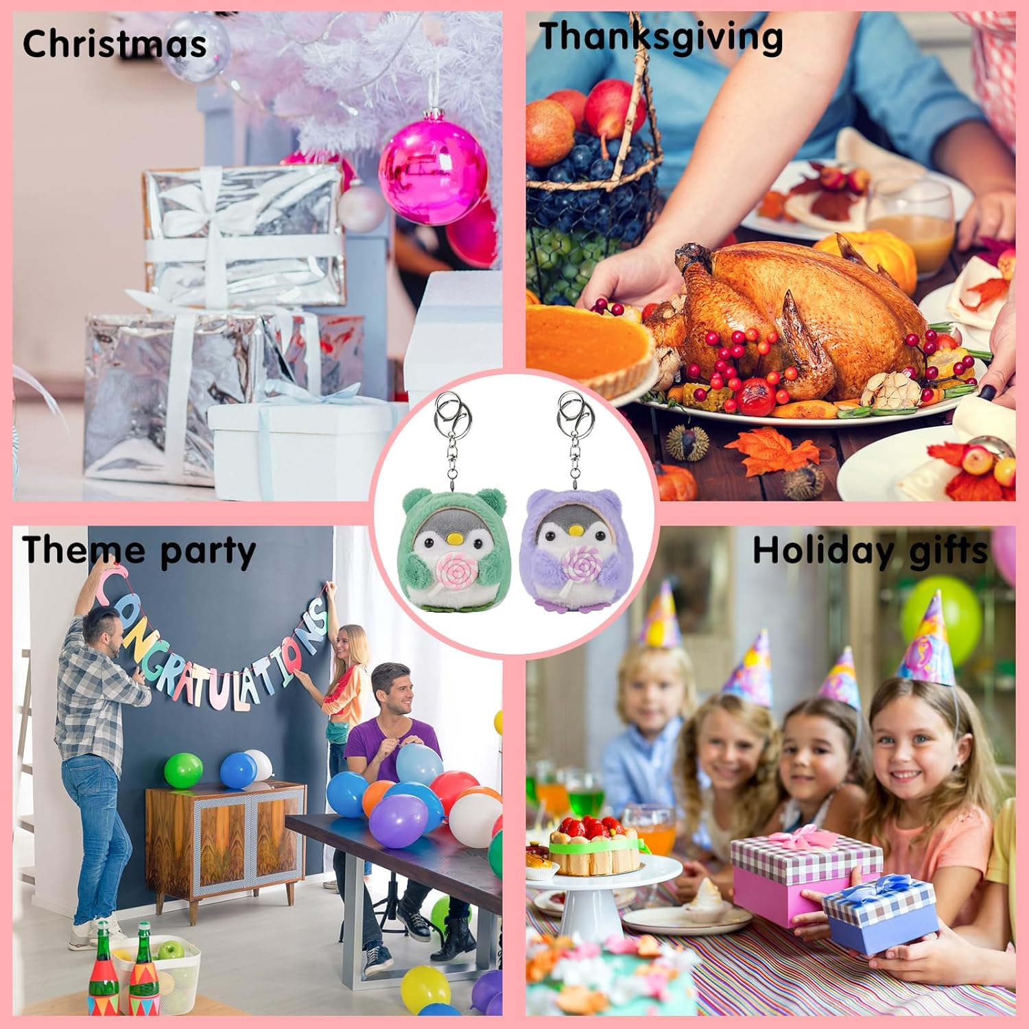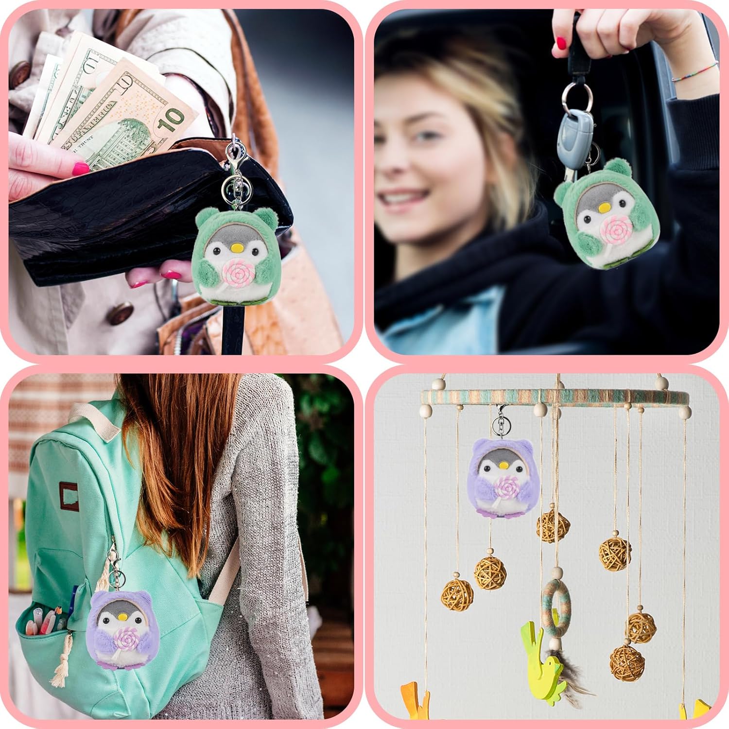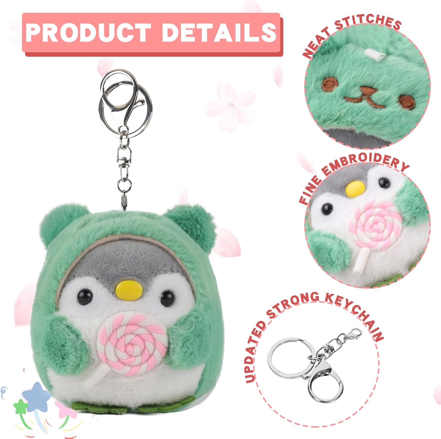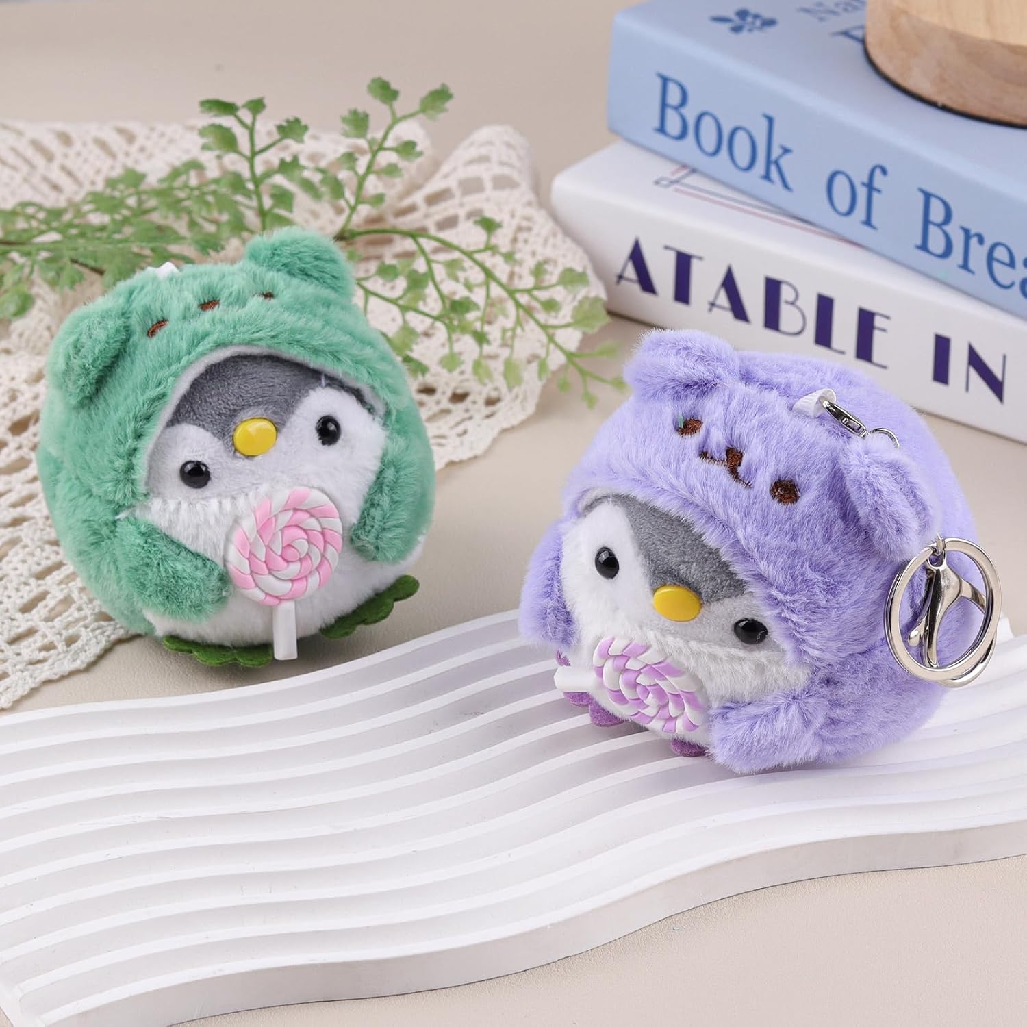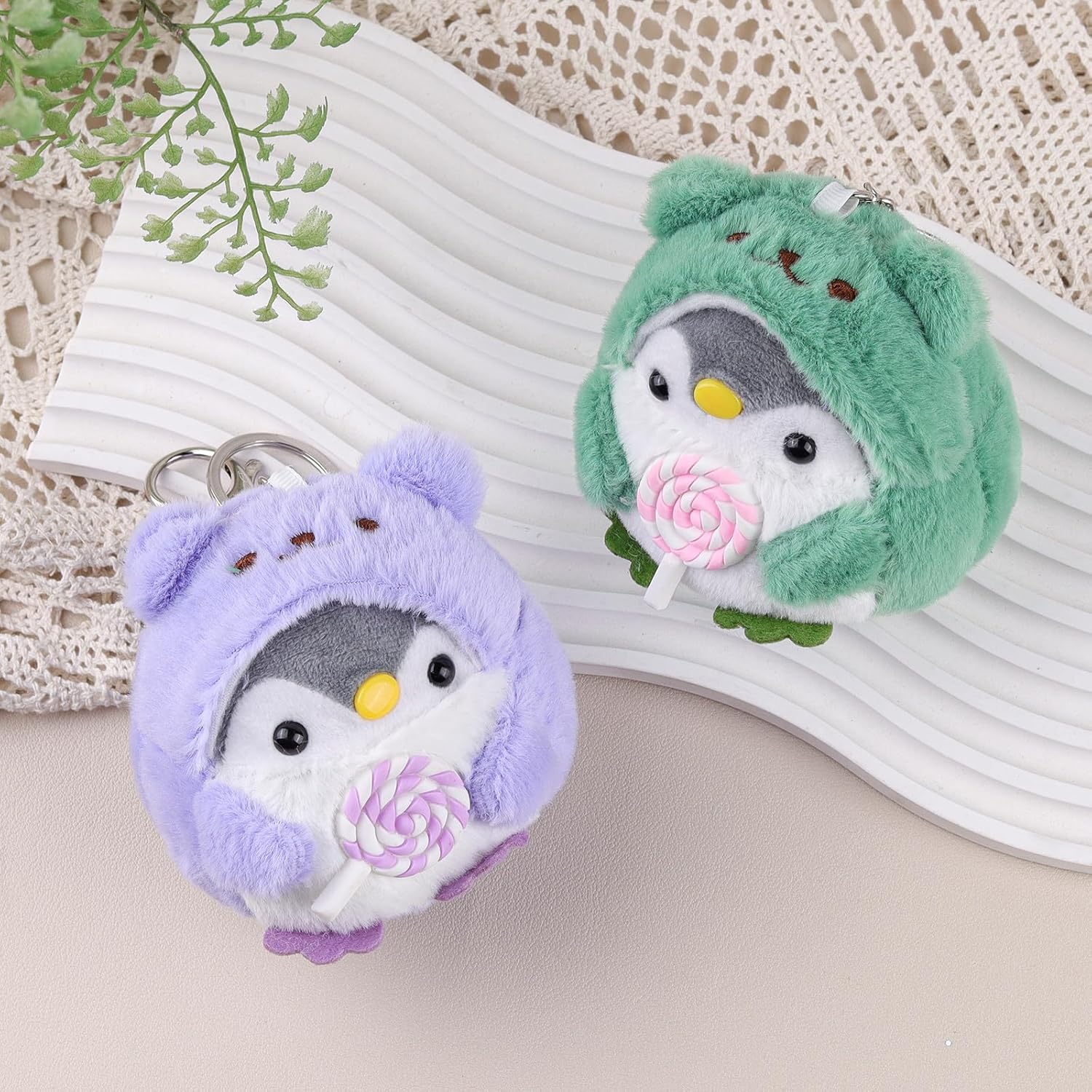 Pinguini in Peluche Progettati Adorabilmente - Creati come compagni gemelli che tengono delle vivaci lecca-lecca, questi animali di peluche da 4 pollici aggiungono un tocco di fantasia a chiavi o borse. Regali a doppia funzione per compleanni / Natale, con pelliccia morbida che garantisce coccole sicure per i bambini (disponibili in viola e lime). Sicurezza Premium & Artigianato - Fatto a mano con amore, secondo rigorosi standard di sicurezza dell'UE. Caratterizzato da una durata del giocattolo di peluche e trame morbide, con cuciture rinforzate. Gli occhi scintillanti aggiungono un realismo vivace. Compagni di Peluche Pronti per Viaggiare - Portachiavi di peluche pinguino compatti da 4 pollici (con ganci in metallo rinforzati) che si attaccano facilmente a borse scolastiche, etichette per valigie o decorazioni per la cameretta. Ogni animale di peluche arriva in un packaging riutilizzabile pronto per essere regalato. Set Multi-Regalo di Peluche Versatile - Questo set da 2 animali di peluche è ideale come premi per la classe, riempitivi per sacchetti regalo o piccoli regali. Include portachiavi rimovibili per uso adulto e giocattoli di peluche sicuri per i bambini quando i ganci vengono rimossi. Assicurazione di Sicurezza e Cura - Le superfici degli animali di peluche resistono alla formazione di pallini dopo numerosi lavaggi. I componenti del portachiavi di peluche rispettano gli standard di sicurezza EN71. Nota: rimuovere i ganci prima di regalarli ai bambini.
