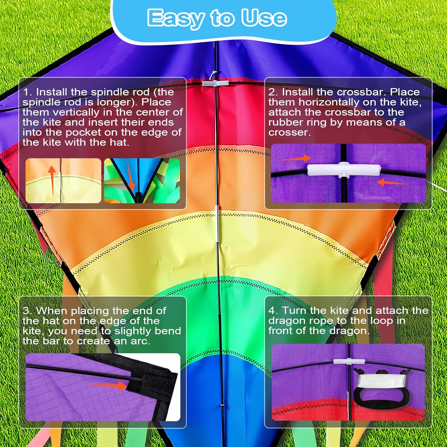 【Materiale resistente di alta qualità】Il corpo di questi aquiloni per bambini è cucito in tela di poliestere resistente agli strappi con un'asta in fibra di vetro ad alta resistenza per una struttura stabile e leggera. Può resistere a cadute e urti multipli, è facile da asciugare dopo l'esposizione all'acqua e non si deforma o danneggia facilmente dopo un uso prolungato, inoltre ha eccellenti prestazioni di volo, garantendo divertimento e intrattenimento a lungo termine. 【Montaggio e controllo pratici】Questi aquiloni a forma di diamante arcobaleno sono particolarmente adatti ai principianti, con una classica struttura a forma di diamante, possono facilmente decollare con una leggera brezza e otto code a strisce colorate possono stabilizzare l'assetto di volo in caso di vento forte, riducendo la difficoltà di controllo. Facile da assemblare, i bambini possono montarlo facilmente, il suo design punta sulla semplicità e la bobina dell'aquilone con maniglia facile da impugnare assicura che i bambini possano controllarlo facilmente, rendendolo la scelta ideale sia per i bambini che per i principianti. 【Regalo speciale】Il set include due aquiloni arcobaleno prismatici, due maniglie e borse per riporli con corde, e otto code colorate a strisce, dai colori vivaci e dalla forma unica, che hanno effetti visivi straordinari quando volano ad alta quota. Incluso in una borsa di stoffa riutilizzabile per riporli e trasportarli facilmente, perfetto come regalo di compleanno o sorpresa per le feste per bambini e bambine, il design colorato entusiasmerà i bambini e aumenterà il loro interesse e la loro esperienza di volo. 【Adatto a molteplici scenari】 Che sia al parco, in spiaggia o in giardino, questi aquiloni possono regalare gioia infinita ai bambini. I colori vivaci e la forma accattivante lo rendono una scelta eccellente per le attività all'aperto, per far volare gli aquiloni con la famiglia, godersi il sole e l'aria fresca e creare momenti meravigliosi pieni di gioia e risate. 【La scelta ideale per l'interazione genitore-figlio】Imparare a controllare e far volare un aquilone, oltre ad aiutare i bambini a sviluppare la coordinazione e il pensiero critico, migliora sottilmente la coordinazione e la pazienza e fa provare la gioia del successo. Volare all'aperto con la famiglia non solo permette di godere della bellezza della natura, ma rafforza anche il rapporto genitore-figlio, rendendola un'attività divertente ed educativa.