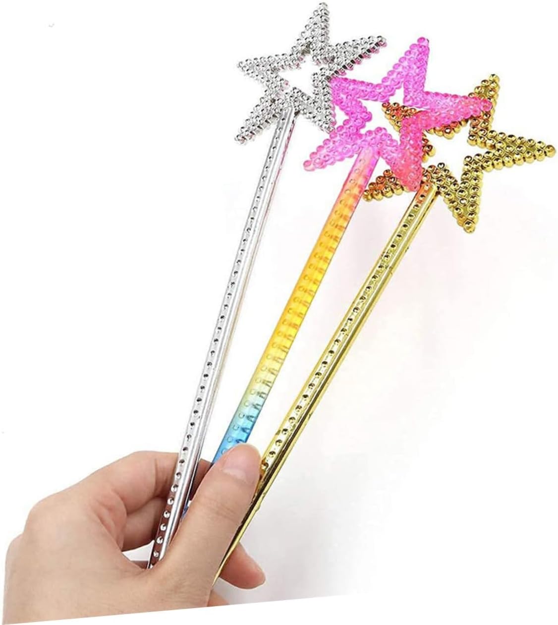 Bacchetta magica per feste: ampiamente usata per feste in costume, compleanni, spettacoli teatrali, cosplay, matrimoni e altro, bacchette magiche per ragazze bacchette magiche: realizzate con materiali affidabili, senza sbavature, sicure per le mani, possono durare molto più a lungo, bacchette magiche per ragazze: può essere meravigliosa per le tue bambine nel giorno del loro compleanno, attività in classe o altri scopi, ti piacerà sicuramente, bacchette magiche per bambini Bacchetta magica per feste: a forma di stella, molto bella e creativa, ti rende facilmente al centro dell'attenzione festa, bacchetta magica con stella glitterata Bacchetta magica da principessa: una meravigliosa scelta regalo per la tua famiglia, i tuoi amici, parenti, in occasione di festival, per impressionarli moltissimo, bacchetta magica