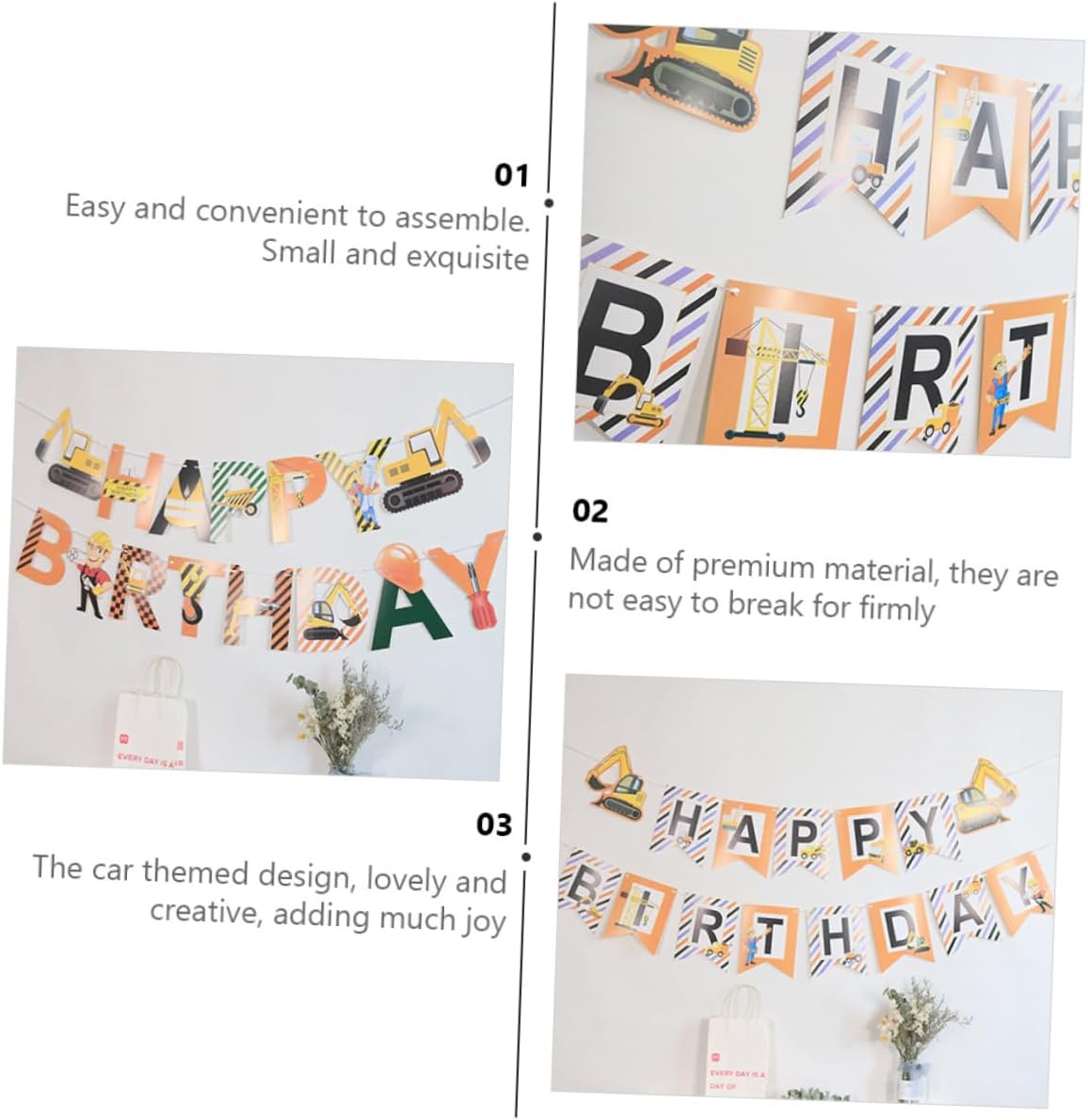 Ghirlanda appesa per festa di compleanno: tuo figlio sarà piacevolmente sorpreso da questo striscione. soprattutto per celebrare la festa di compleanno dei tuoi bambini come decorazione per la festa di compleanno. Bandiere da appendere per compleanno: colori brillanti e vivaci abbinati a veicoli da costruzione trasformeranno qualsiasi luogo in una festa a tema edilizio. Decorazioni per feste in camion: adatte a tutte le occasioni: feste di compleanno, docce, ringraziamento, festival, riunioni di famiglia, catering, eventi chiuso o all'aperto. Striscione di buon compleanno: realizzato in cartone , duro e resistente. consistenza, confortevole tatto Bandierine sospese: collabora con altri materiali decorativi per feste in modo più efficace.