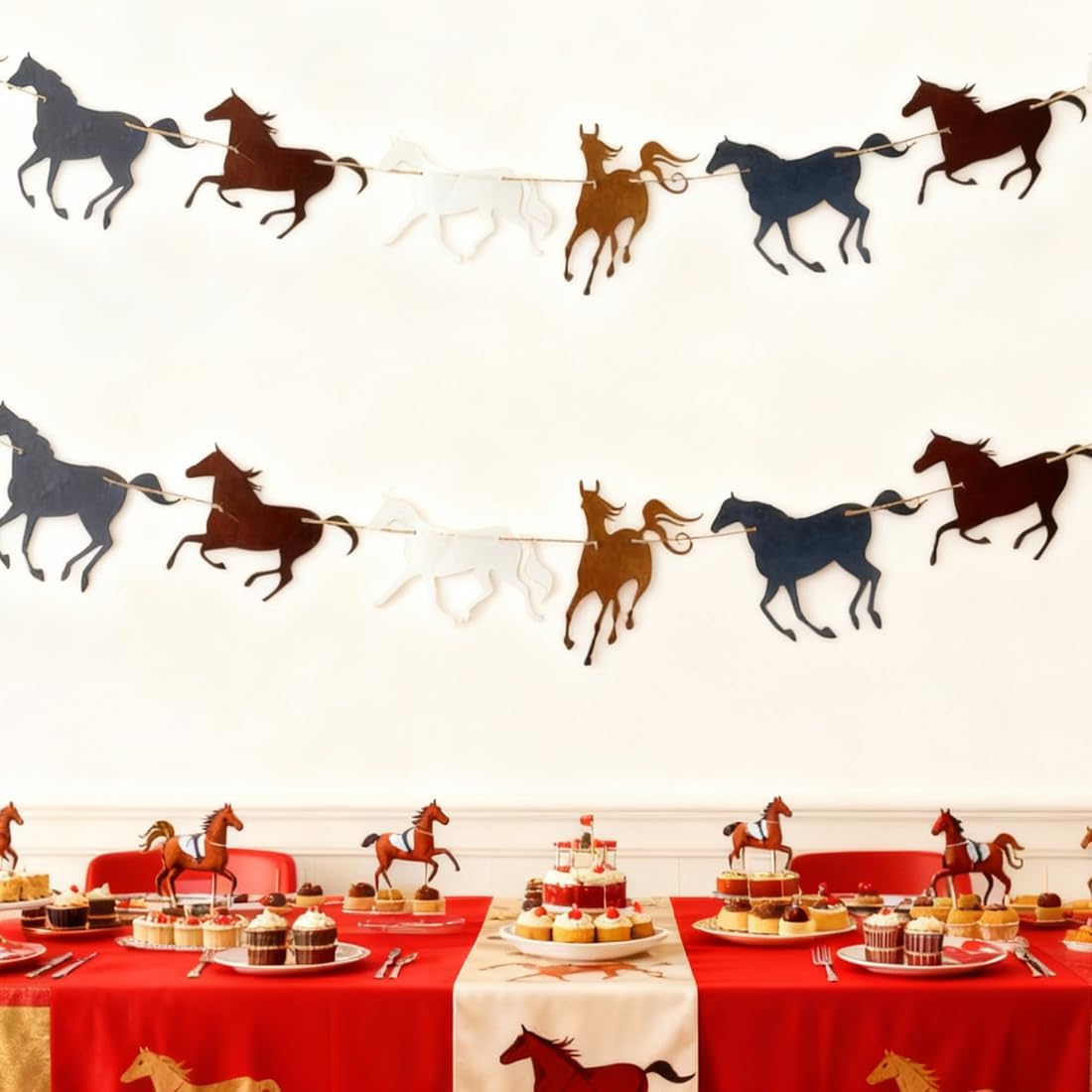 Materiale di alta qualità: Questo decorazione per feste a tema cavalli è realizzato in robusto feltro con corda marrone. Offre una qualità durevole, colori vivaci e una forma stabile. Il materiale non sbiadisce e mantiene un aspetto curato nel tempo, ideale per un utilizzo ripetuto Dimensioni perfette: Ogni cavallo misura 18 x 14 cm, mentre la lunghezza totale del banner assemblato è di circa 2,5 metri. Le bandierine a forma di cavallo sono leggere, colorate e facili da gestire, rendendole ideali per decorazioni interne Montaggio semplice: Il banner a forma di ghirlanda di cavalli è dotato di due fori predefiniti che facilitano un montaggio rapido e flessibile. È possibile personalizzare l'ordine dei cavalli, rendendo l'installazione intuitiva e facile da smontare Uso versatile: Questo banner per feste a tema cavalli è perfetto per compleanni, feste a tema equestri, corse di cavalli, baby shower e riunioni di famiglia. Aggiunge un'atmosfera vivace a qualsiasi evento ed è un elemento decorativo che cattura l'attenzione Set completo: Il set include 16 ponies e una bobina di corda, permettendo di adattare il numero di cavalli in base al luogo dell'evento. La qualità elevata e la quantità sufficiente lo rendono ideale per un utilizzo prolungato e ripetuto